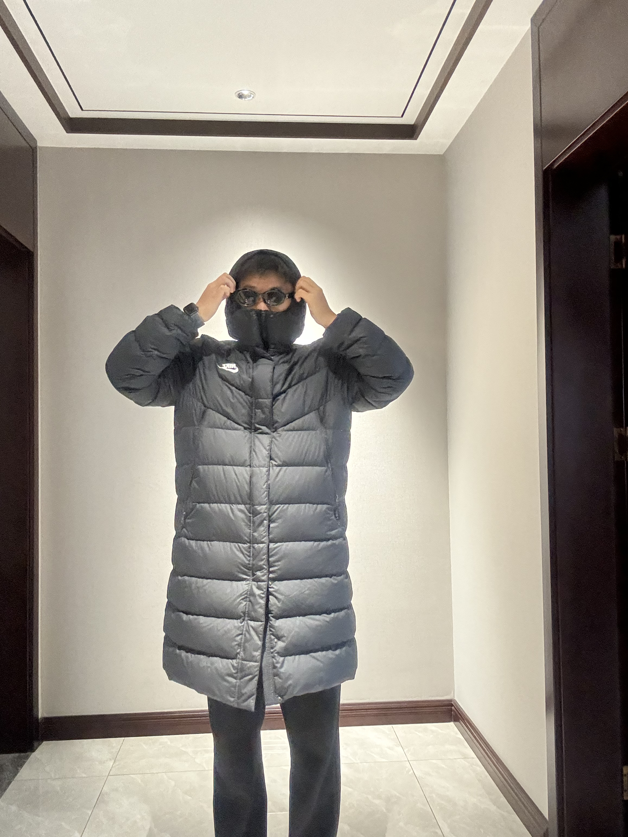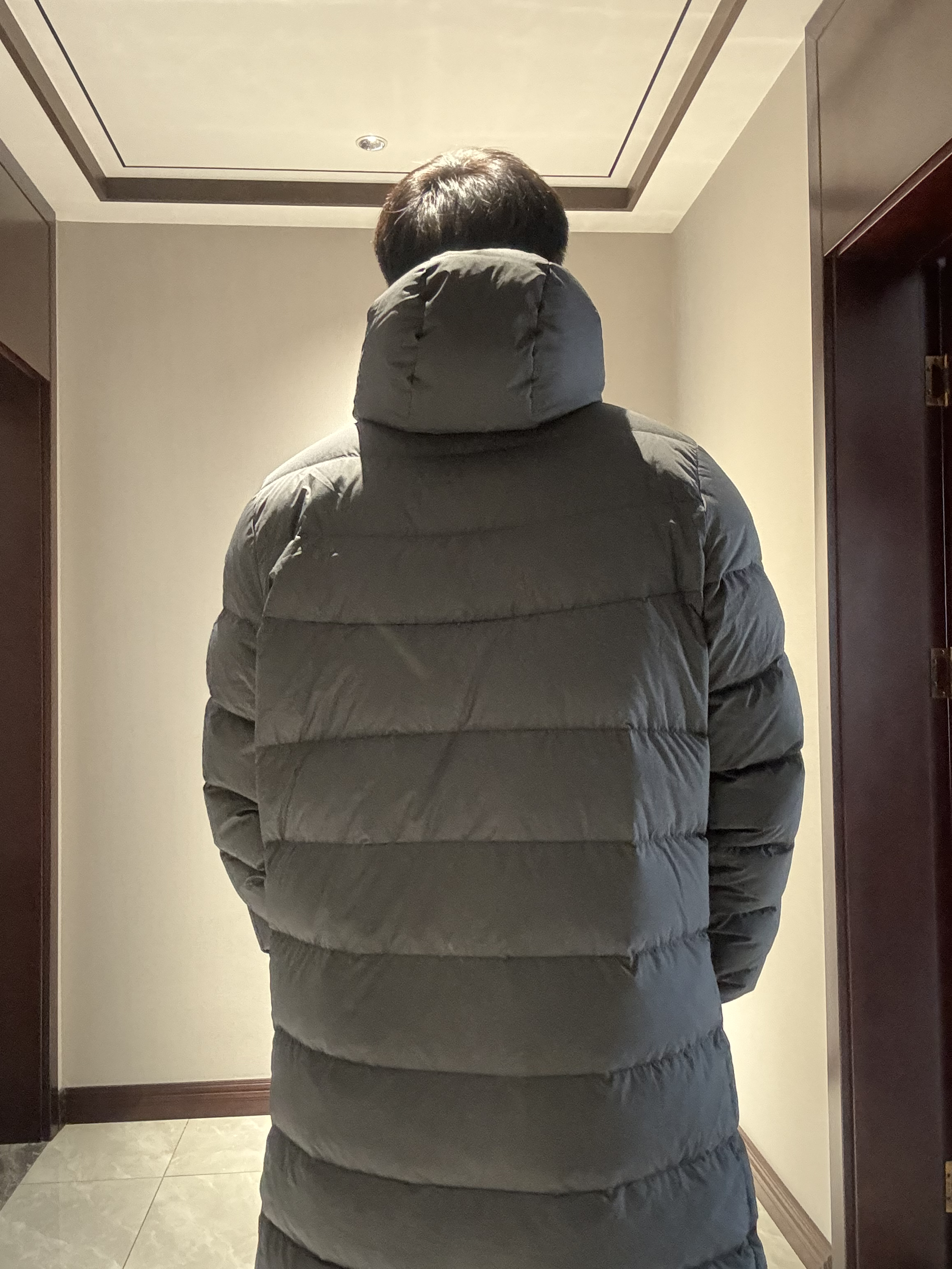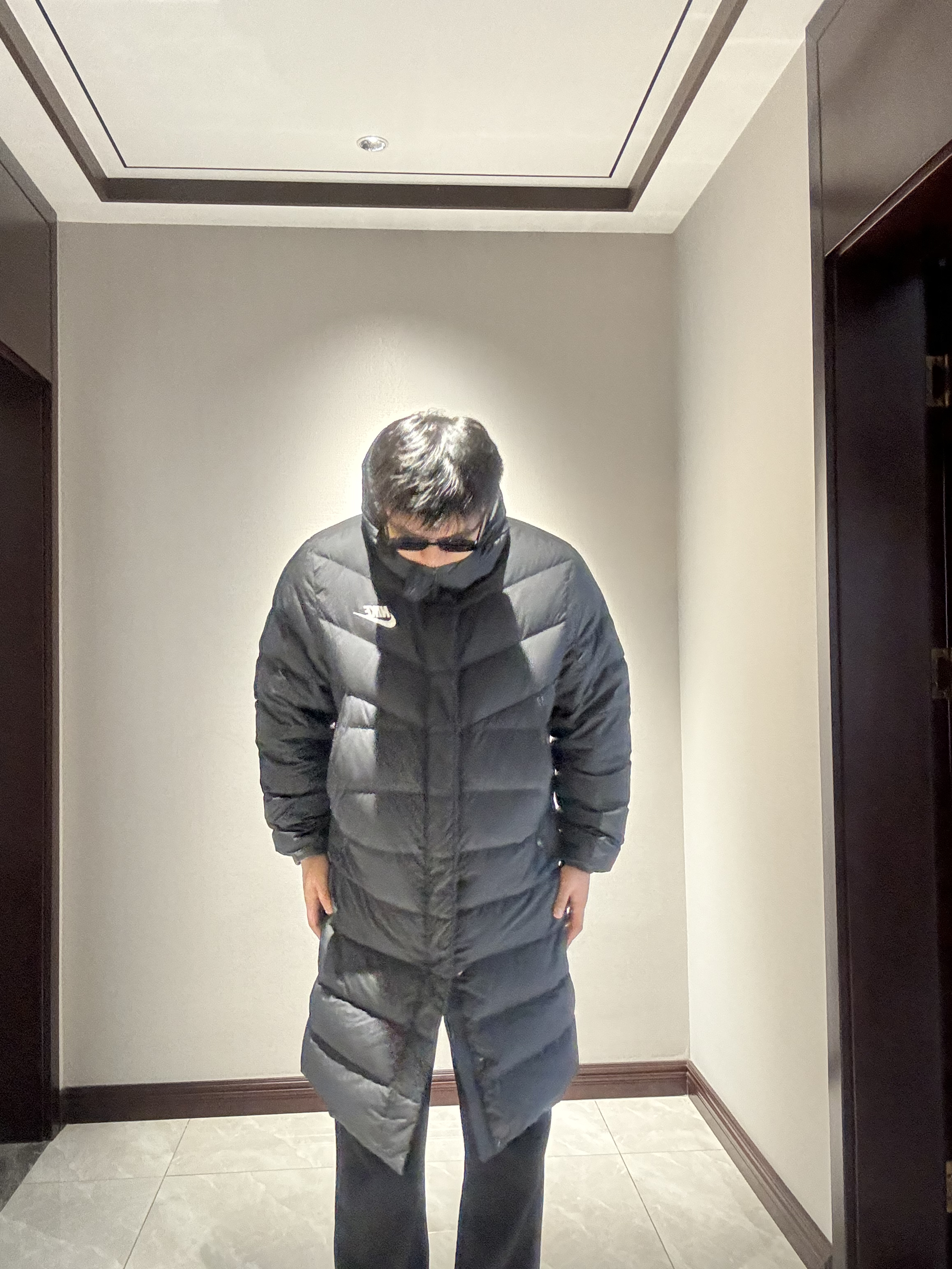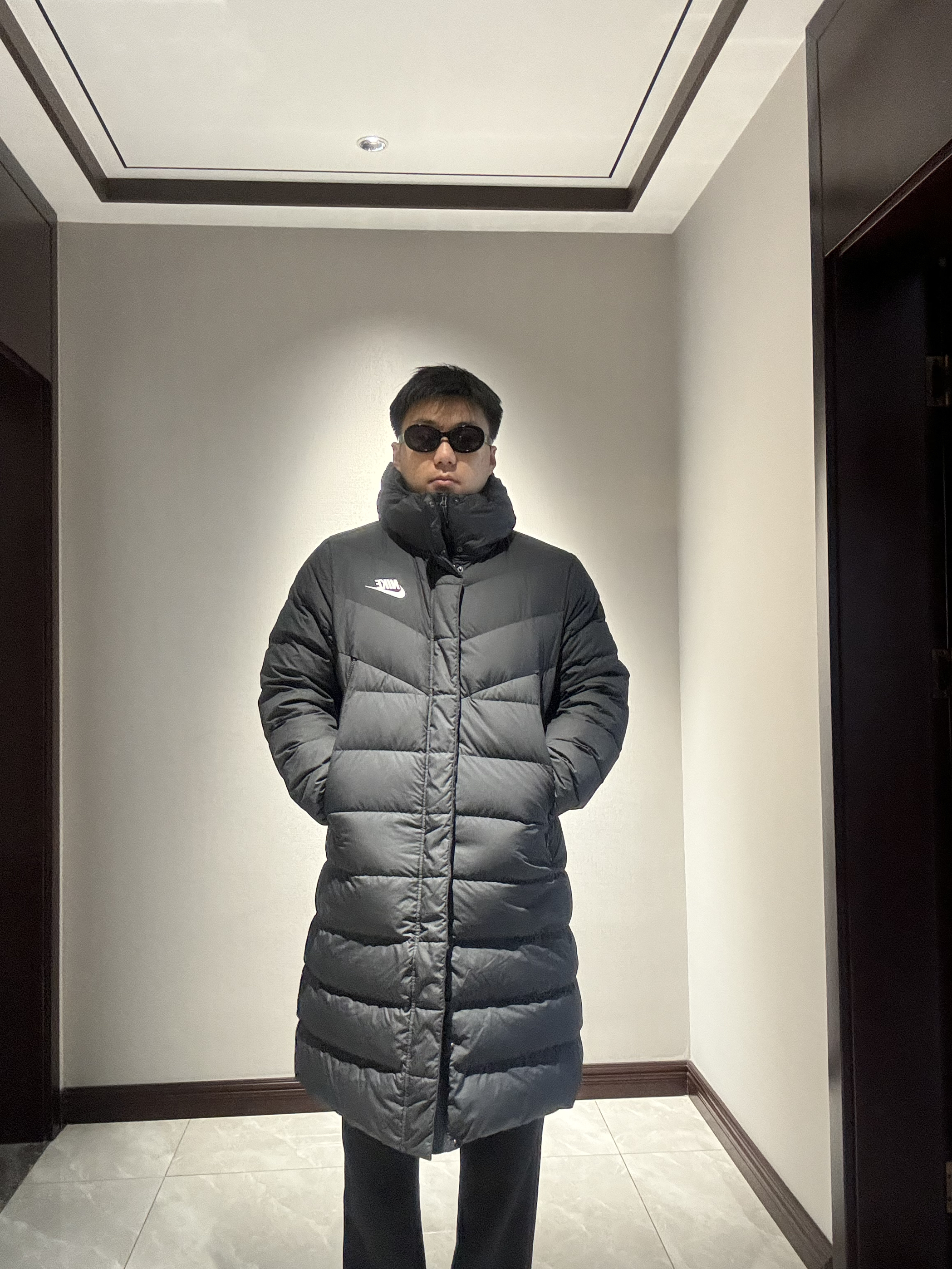 👪家人们这件长款羽绒服真的👍 🌟怎么说呢简直就是无可挑剔 🌟之前穿的长袄行动都会有点不方便 🌟但是这款真的又帅 而且还方便 下面的拉链可以拉运动时 微微拉起就可以了😌而且超级保暖🔥 190/200 👔:nike 👖:基本单元 👟:adidas