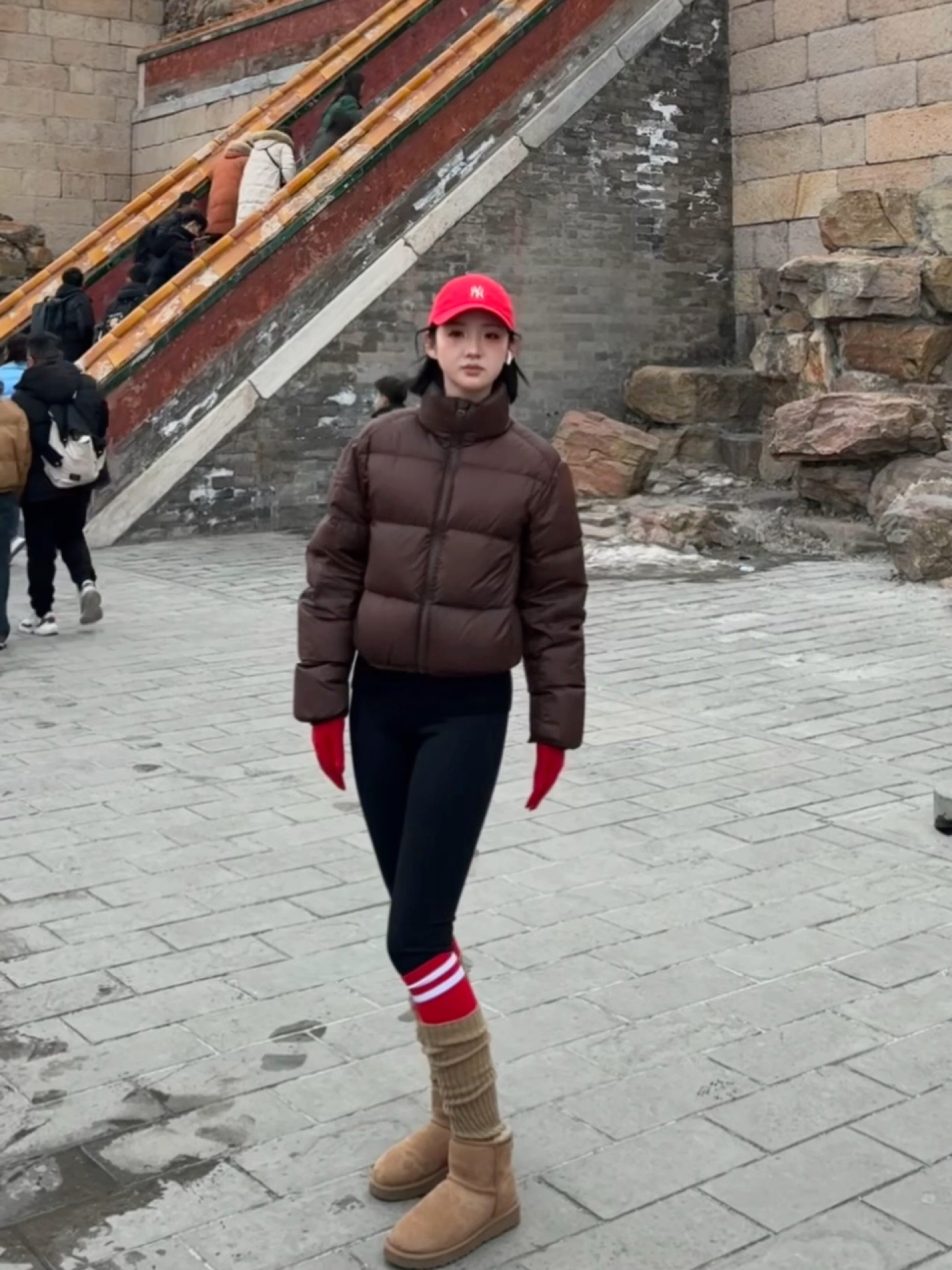 身高|体重:165 49 👔 上衣:短款羽绒服 👖 下装:瑜伽裤 👟 鞋子:Ugg 🎒配饰:mlb