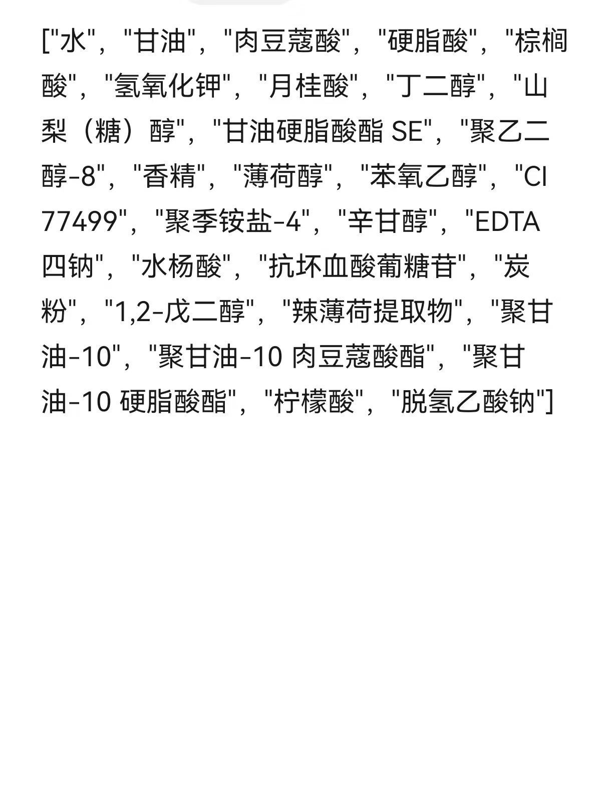 💫成分方面:清洁主体是肉豆蔻酸、硬脂酸、棕榈酸、月桂酸搭配氢氧化钾为主的皂基,清洁力方面是一点都不弱。甘油、丁二醇、山梨(糖)醇等保湿成分添加可以稍微缓解一下过强的清洁力造成的紧绷感。薄荷醇和辣薄荷提取物让在清洗的时候会很清凉。防腐剂是苯氧乙醇和脱氧乙酸钠,安全性较好。比较突出的是森林橡木炭粉的添加,主打的是粉末溶油。