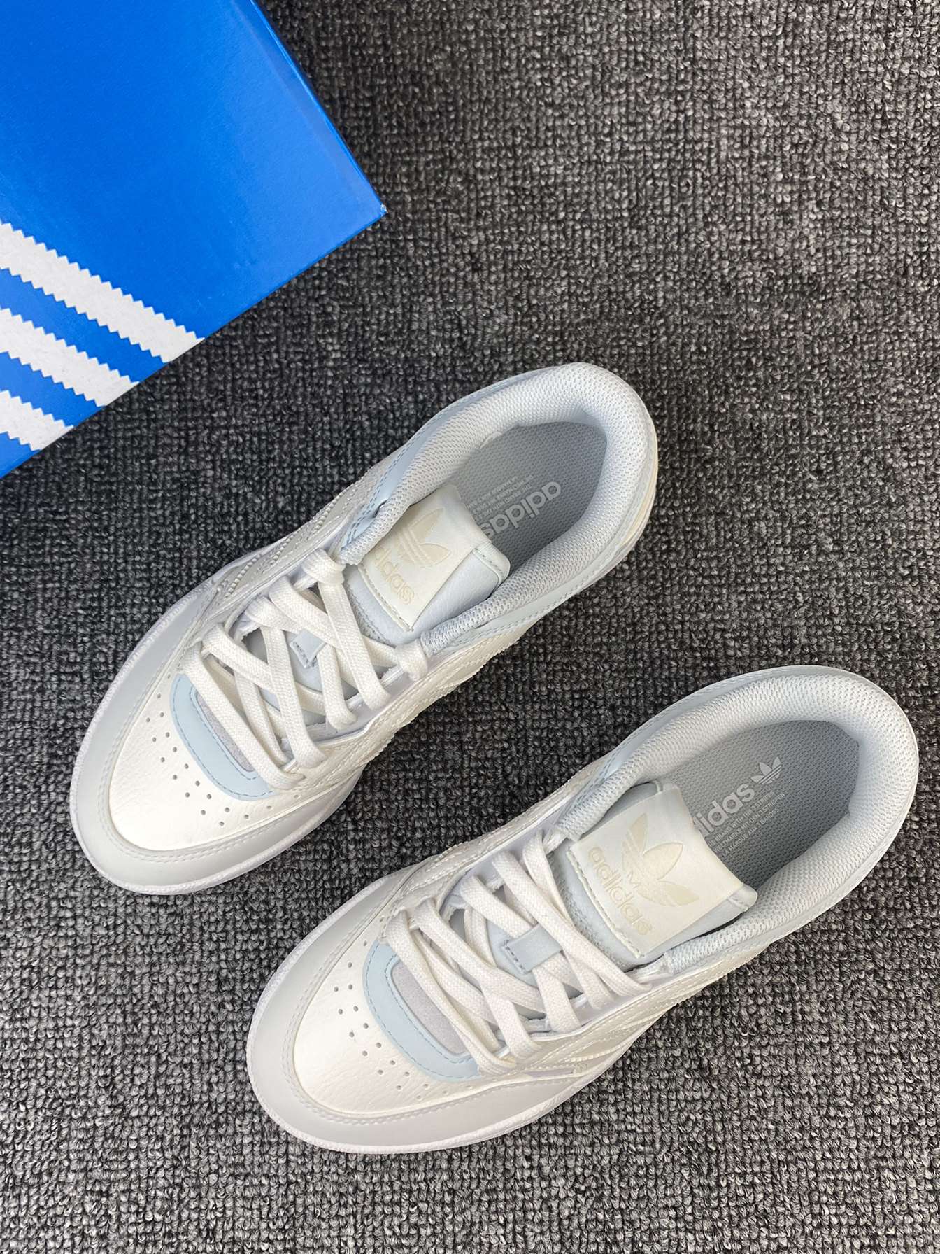 很难不爱的阿迪小板鞋 浅色系的搭配,白蓝为主 上脚很好看,整体的配色是小清新又百搭 皮革材质质感很好也很好打理👍 平常搭配休闲裤、牛仔裤或者小裙子都很好看 尺码方面按平常穿的选择就好啦 如果脚背高胖的还是建议选大半码到一码‼️