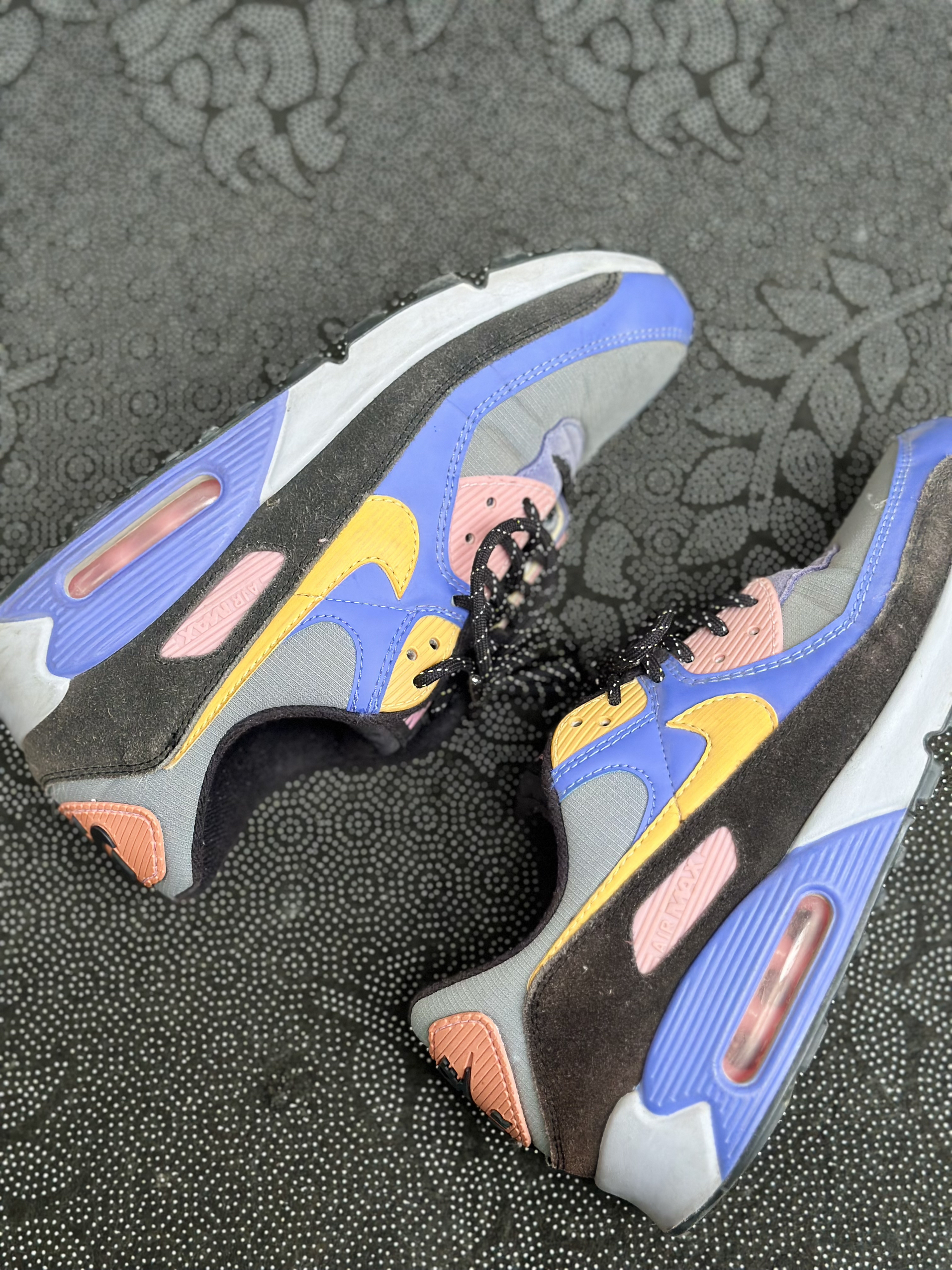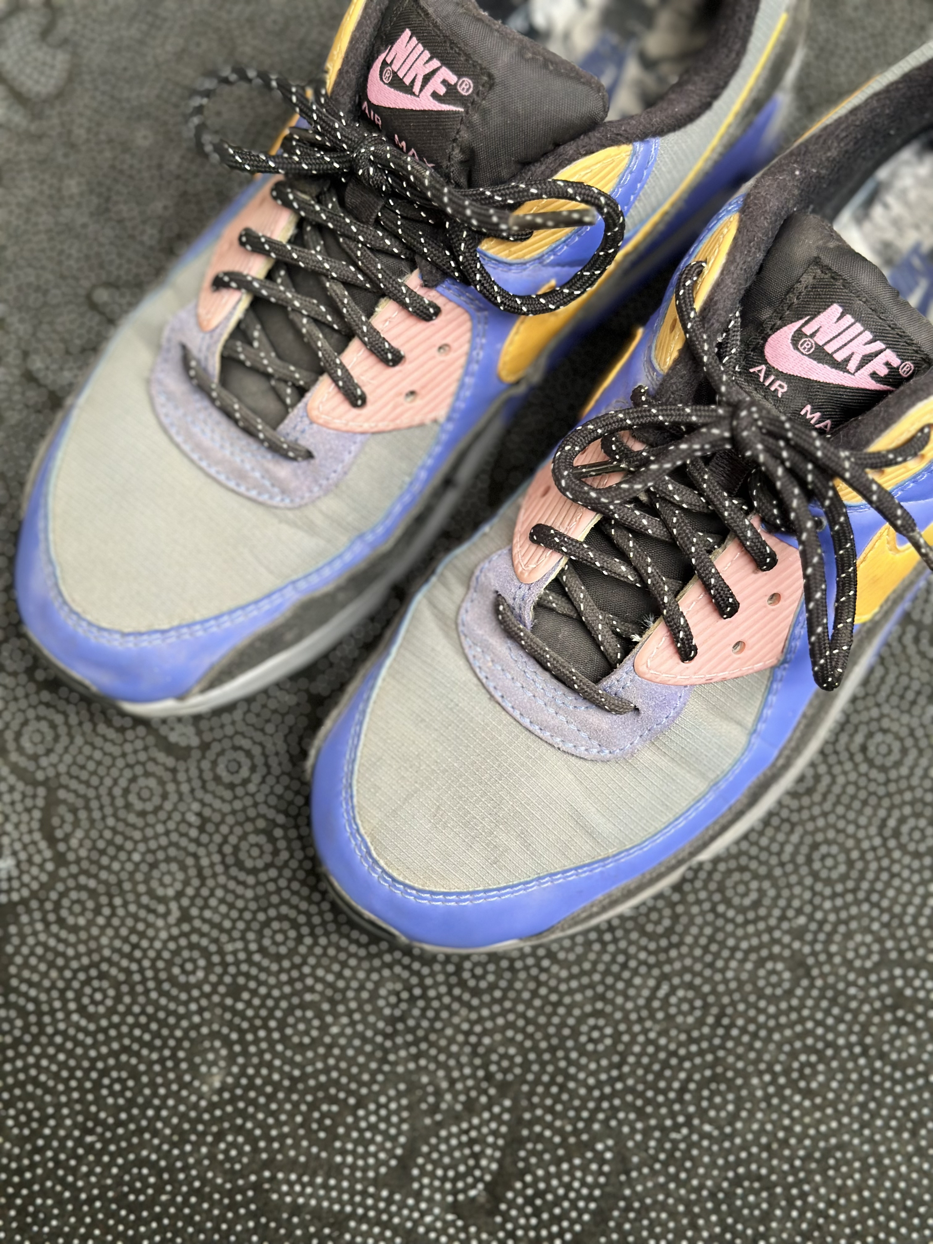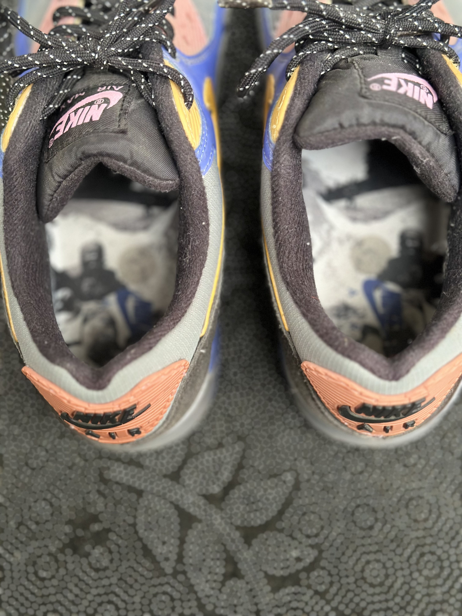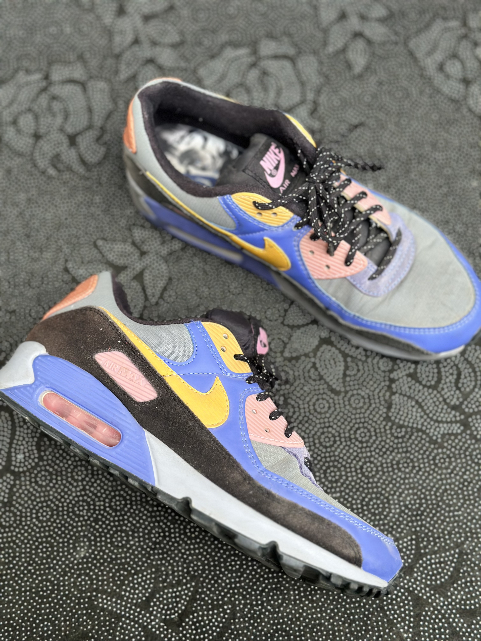 本篇笔记关联了Nike Air Max 90 跑鞋 气垫合成革缓震透气复古增高圆头贴合拼接 蓝灰/黑黄等商品,为用户提供真实的使用体验和购买参考。