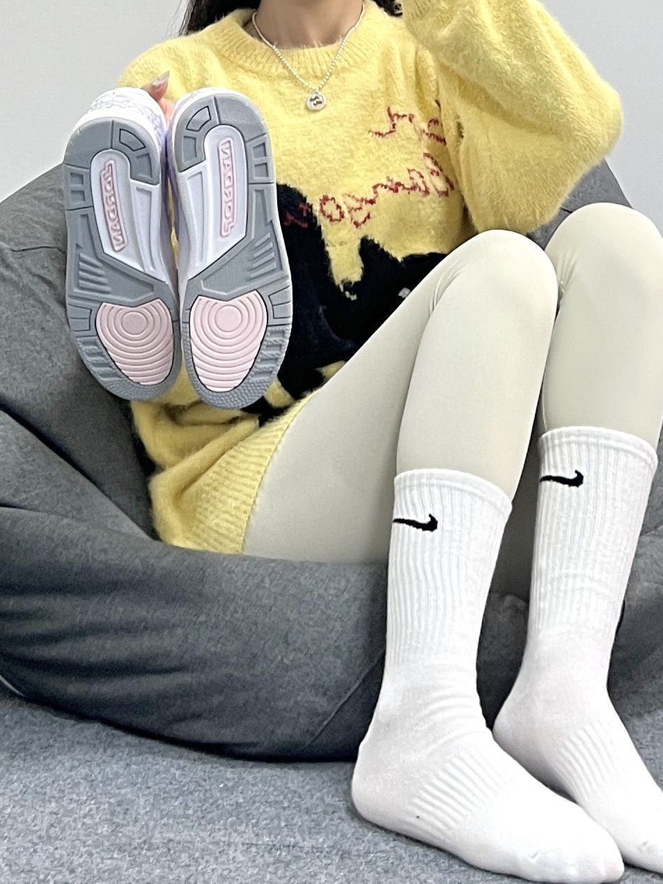 AJ312的设计师!!! 也太太太懂女孩子啦~ 白粉紫的配色尊嘟尊嘟尊嘟超级爱! 哪里有女孩子能够拒绝这样的小板鞋嘛 上脚搭配也是贼啦好看 长发➕黄➕白也太有校园活力感啦!