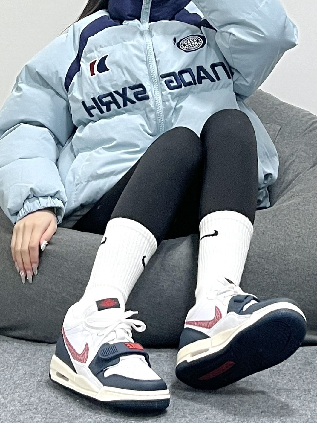 AJ312的搭配属性简直了! 午夜蓝配色尊嘟也太百搭了~ 而且打理很简单 女宝儿们也不用苦恼 上脚也是贼显腿长 这么穿当然回头率拉满