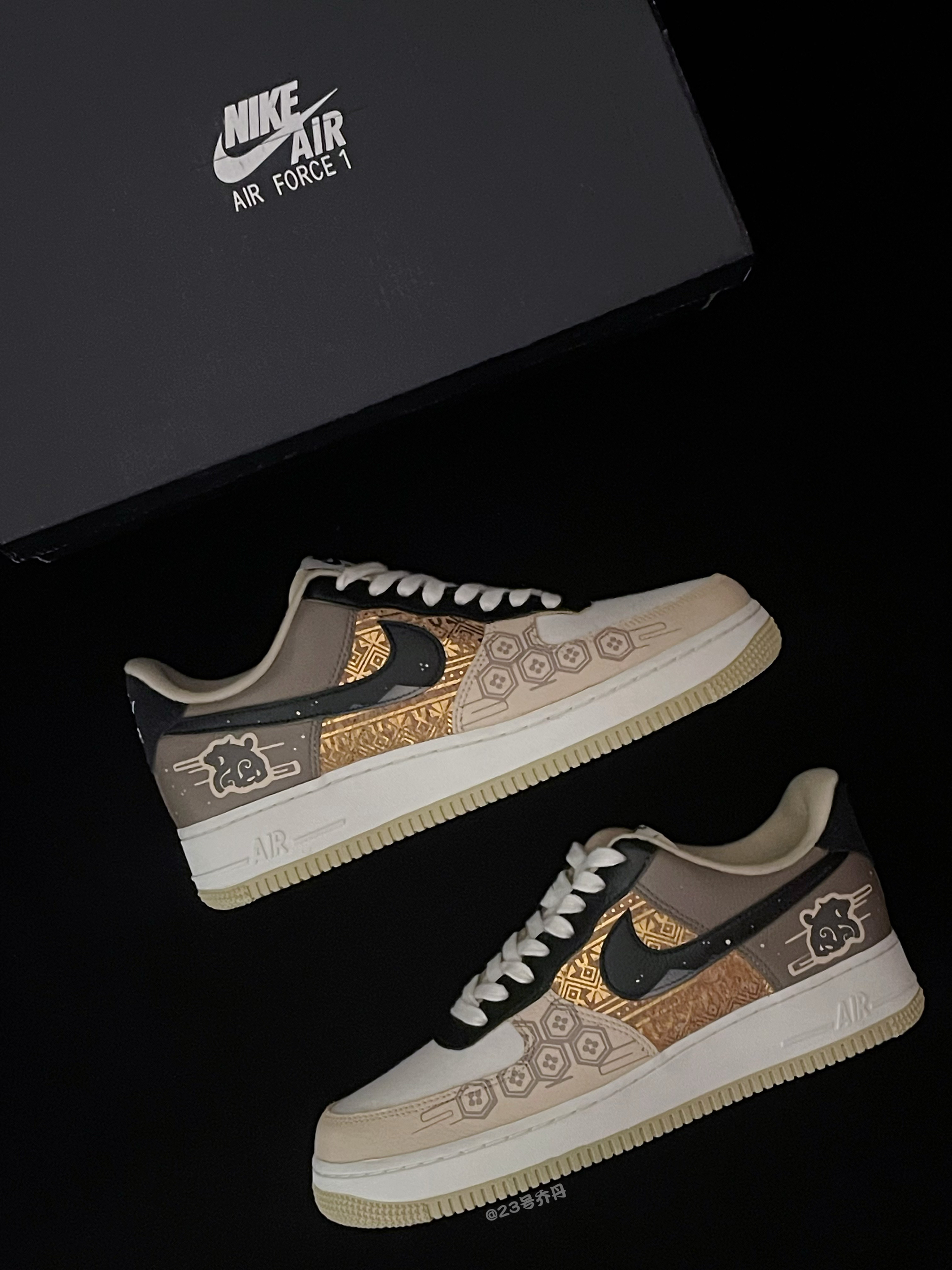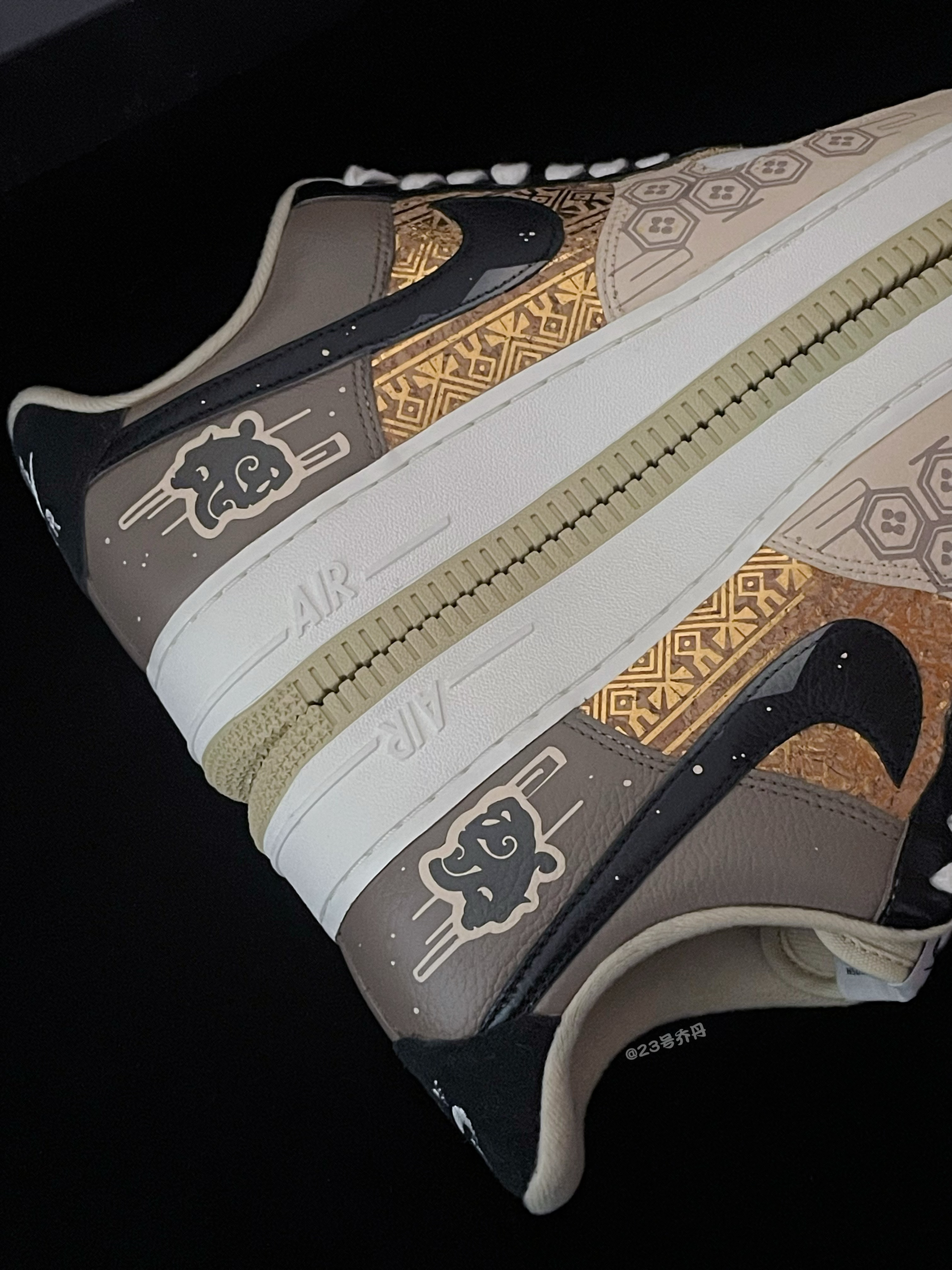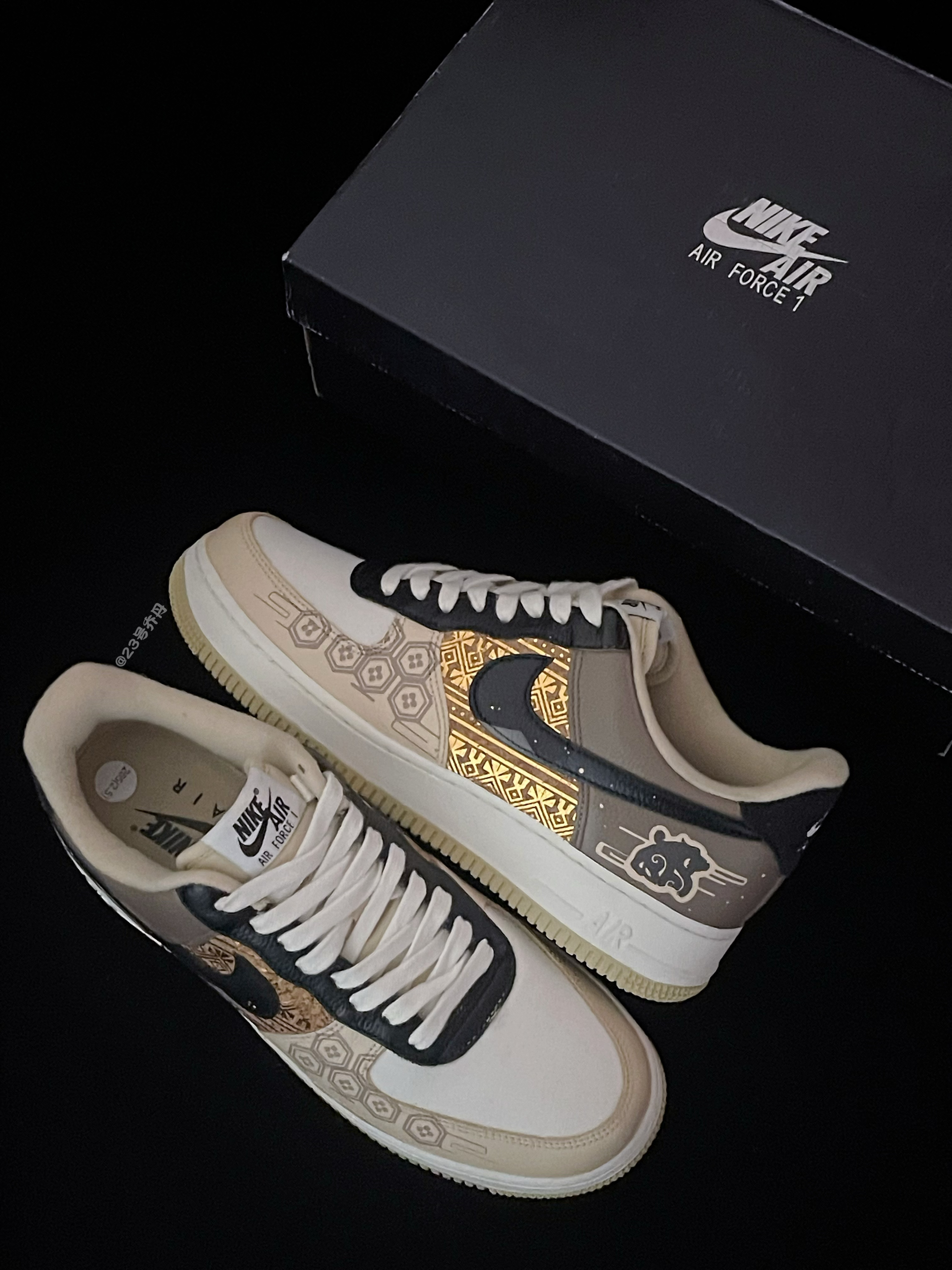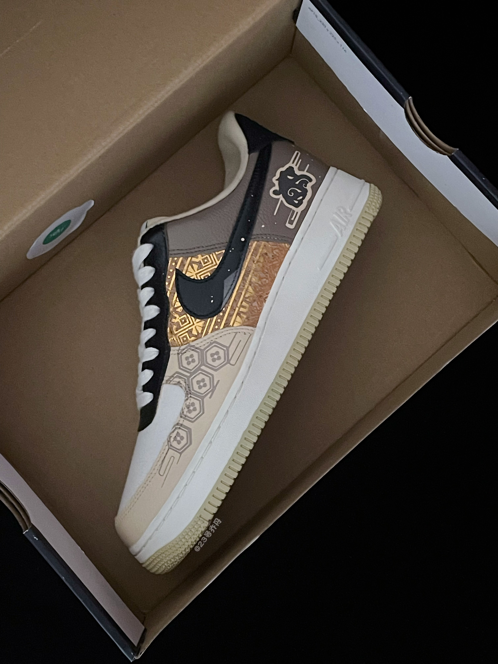 今天给大家分享一双非常适合新年的 Air Force 1 Low『龙年🐉限定』玄武献礼👟 鞋款由白色/棕色/黑色/金色等搭配 鞋面大面积选用了易于打理的光面皮革 鞋头的织物部分取消常规的透气孔设计 鞋身中部金色纹路图案颇为亮眼吸睛 鞋尾外侧绘有中国传统神兽『玄武』图案 白色中底3️⃣公分的增高效果可有效修饰腿型 最后由米色多纹路的耐磨防滑橡胶底收尾 整体来说这是一双兼具颜值/质感/设计的板鞋 高级...