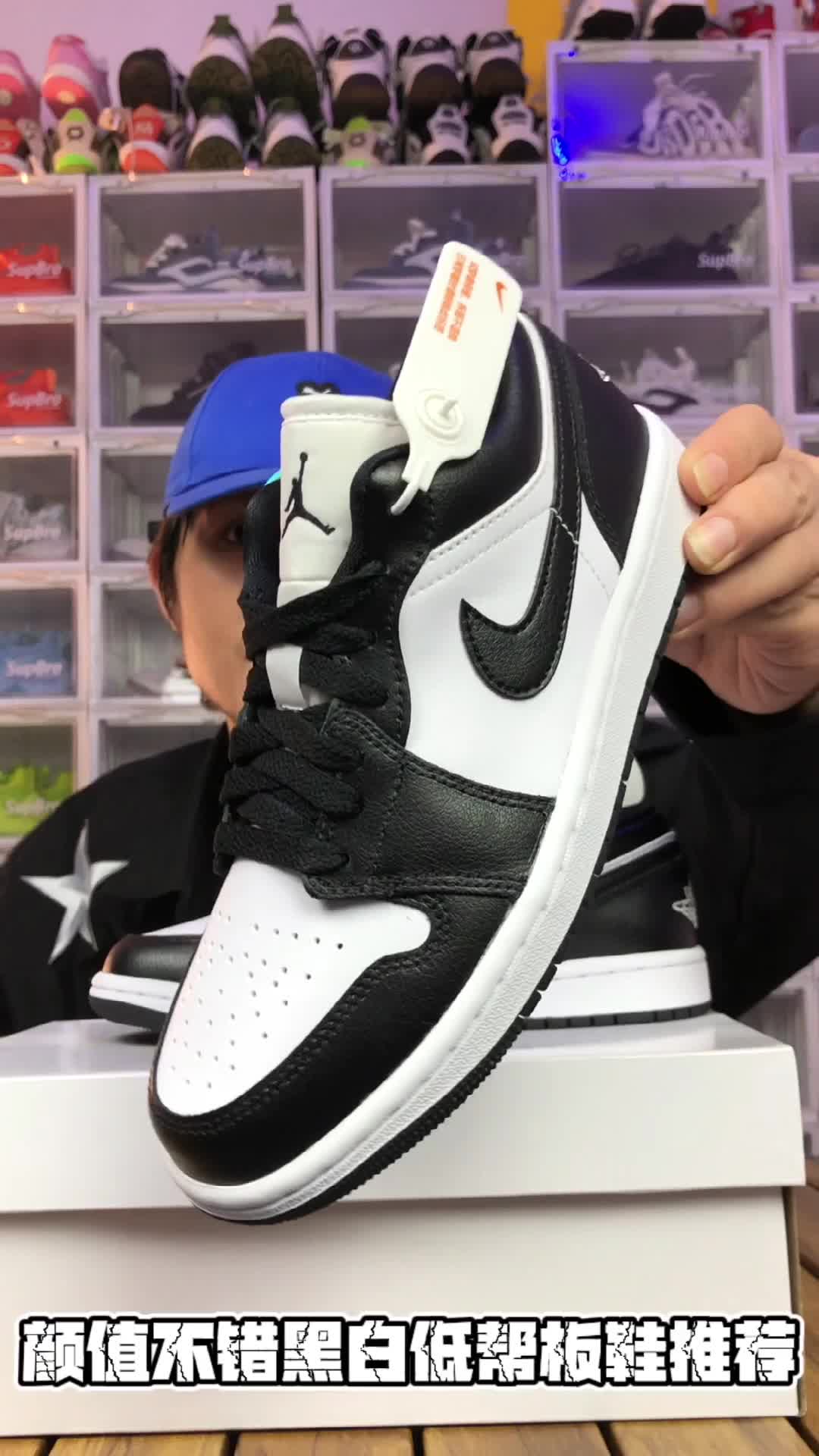 好看的鞋白看不厌,今天给大家分享的这双就是这款好鞋#aj1low熊猫🐼,希望大家能喜欢😍 首先鞋子整体颜值来说,👟采用了黑白作为主色系的搭配,上脚很百搭!可以搭配不同风格的服装,所以说哪怕是像我这样的穿搭小白,穿上这双鞋,也不用担心不好搭! ✨其次就是整双鞋是低帮设计,穿搭很方便,日常穿着很舒服!
