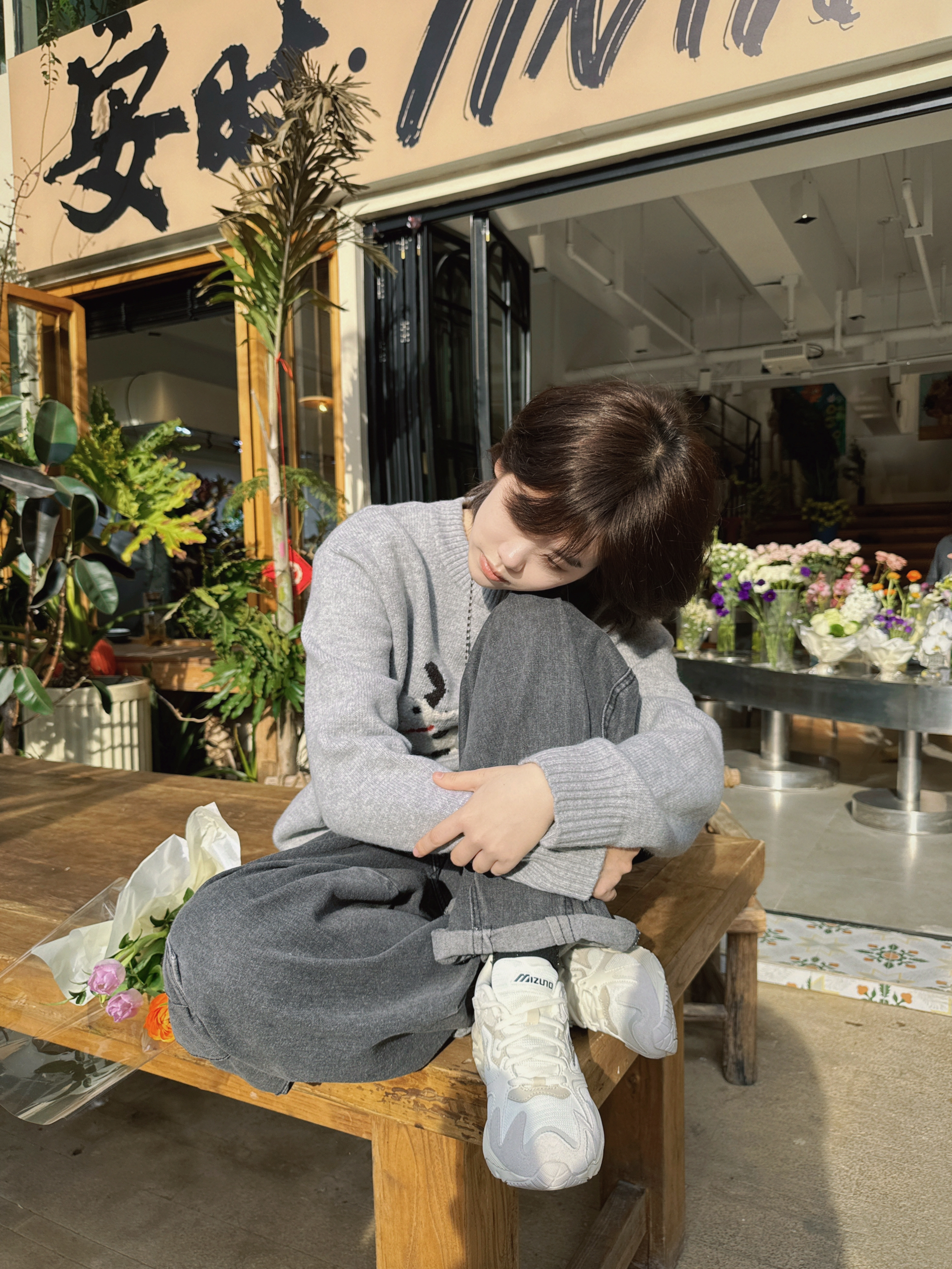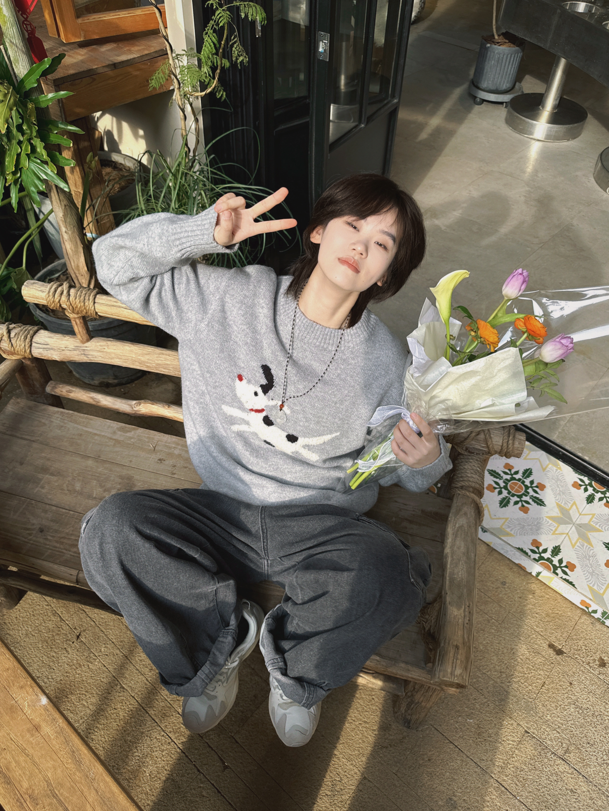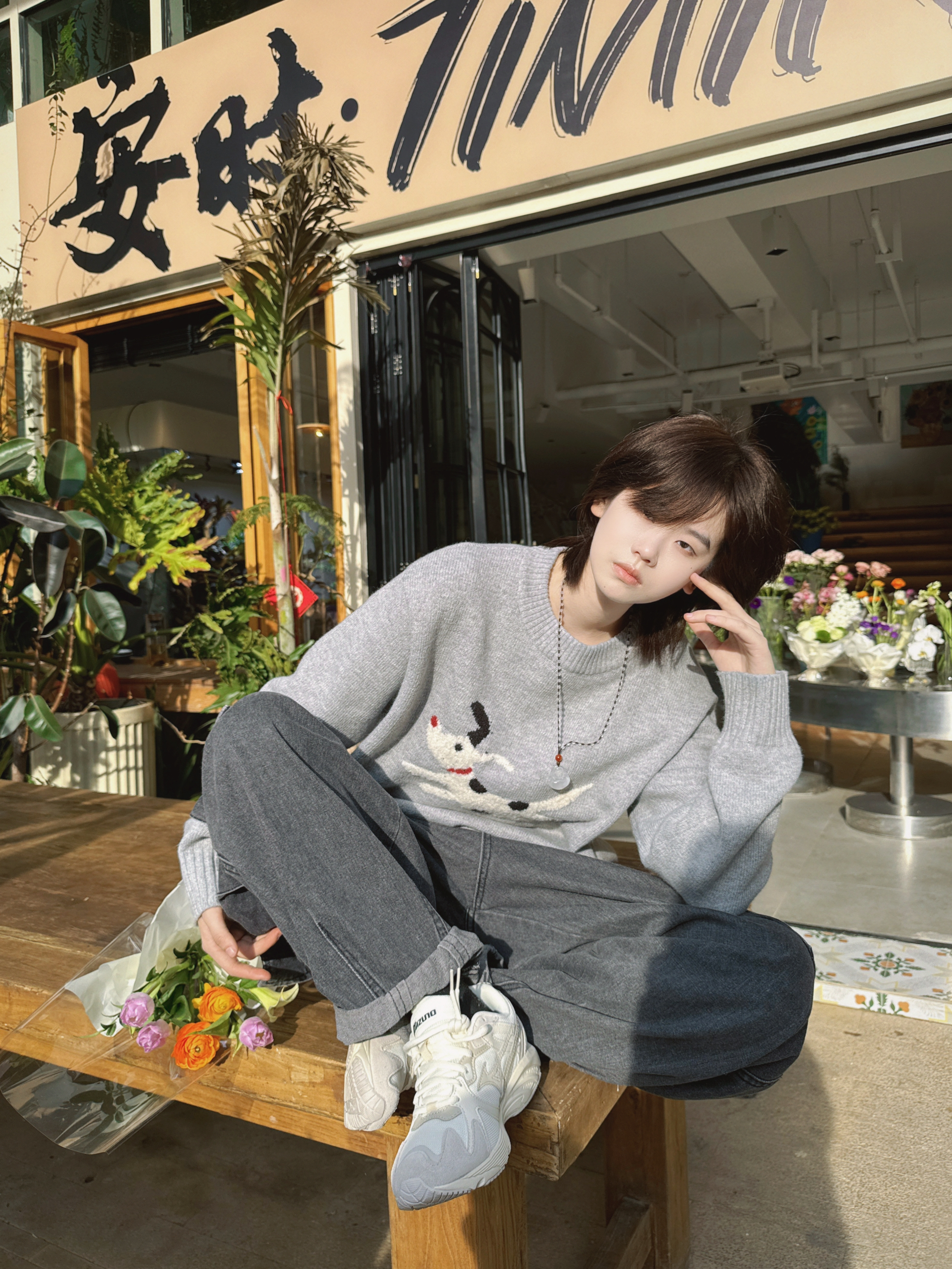 黑灰白一直都是百搭的经典色系,灰色毛衣软糯又好搭配,随便穿条牛仔裤,选一个大晴天,帅的嘞!