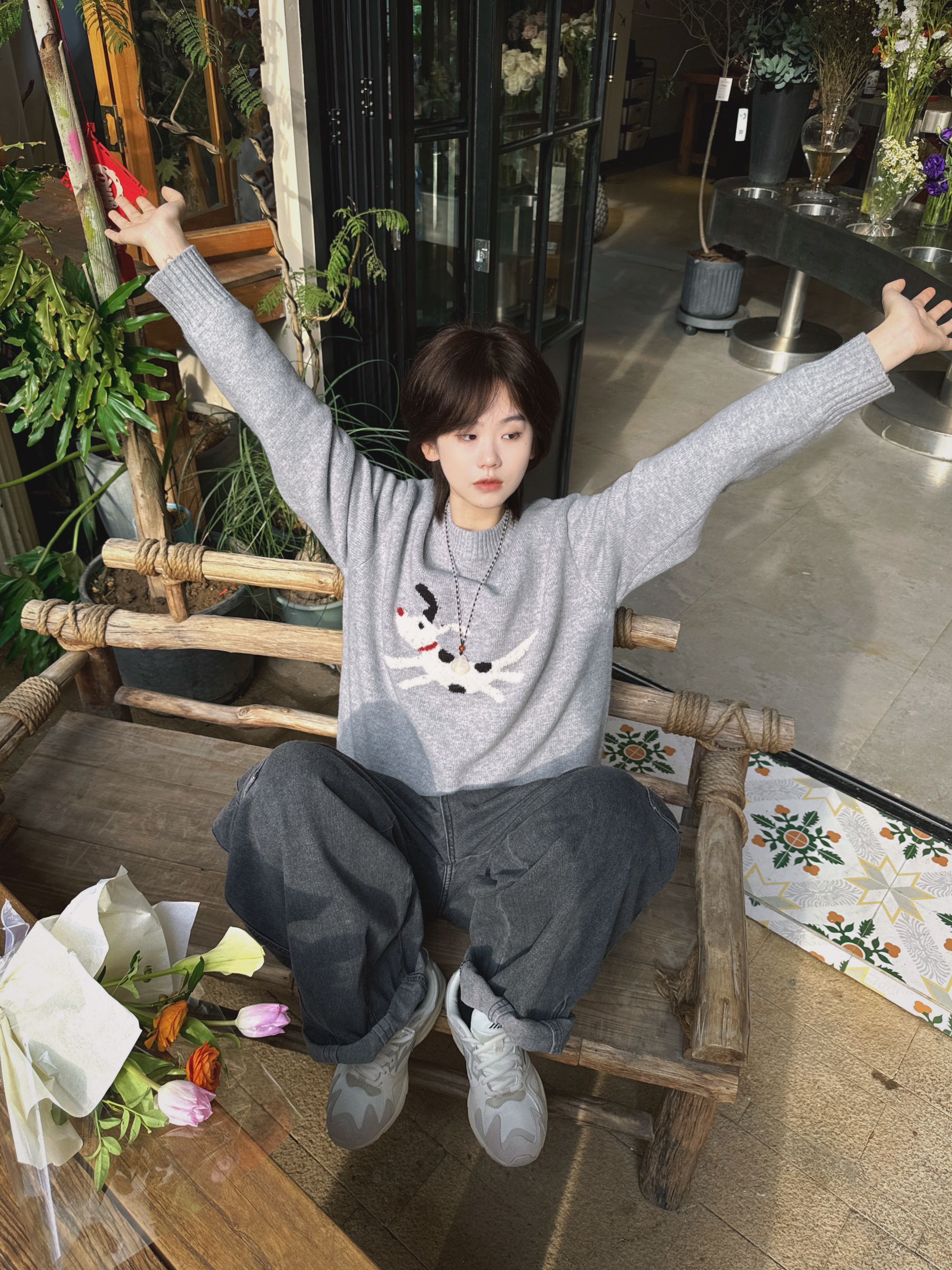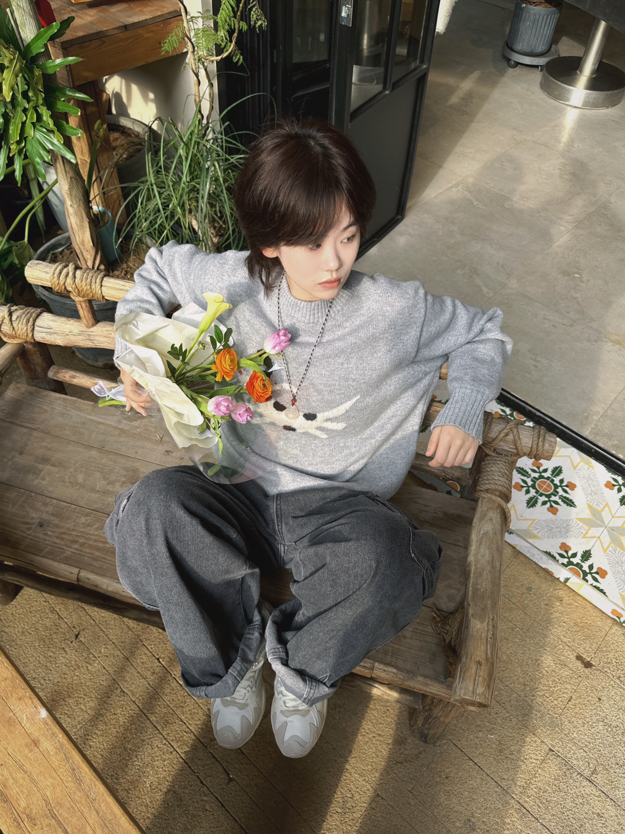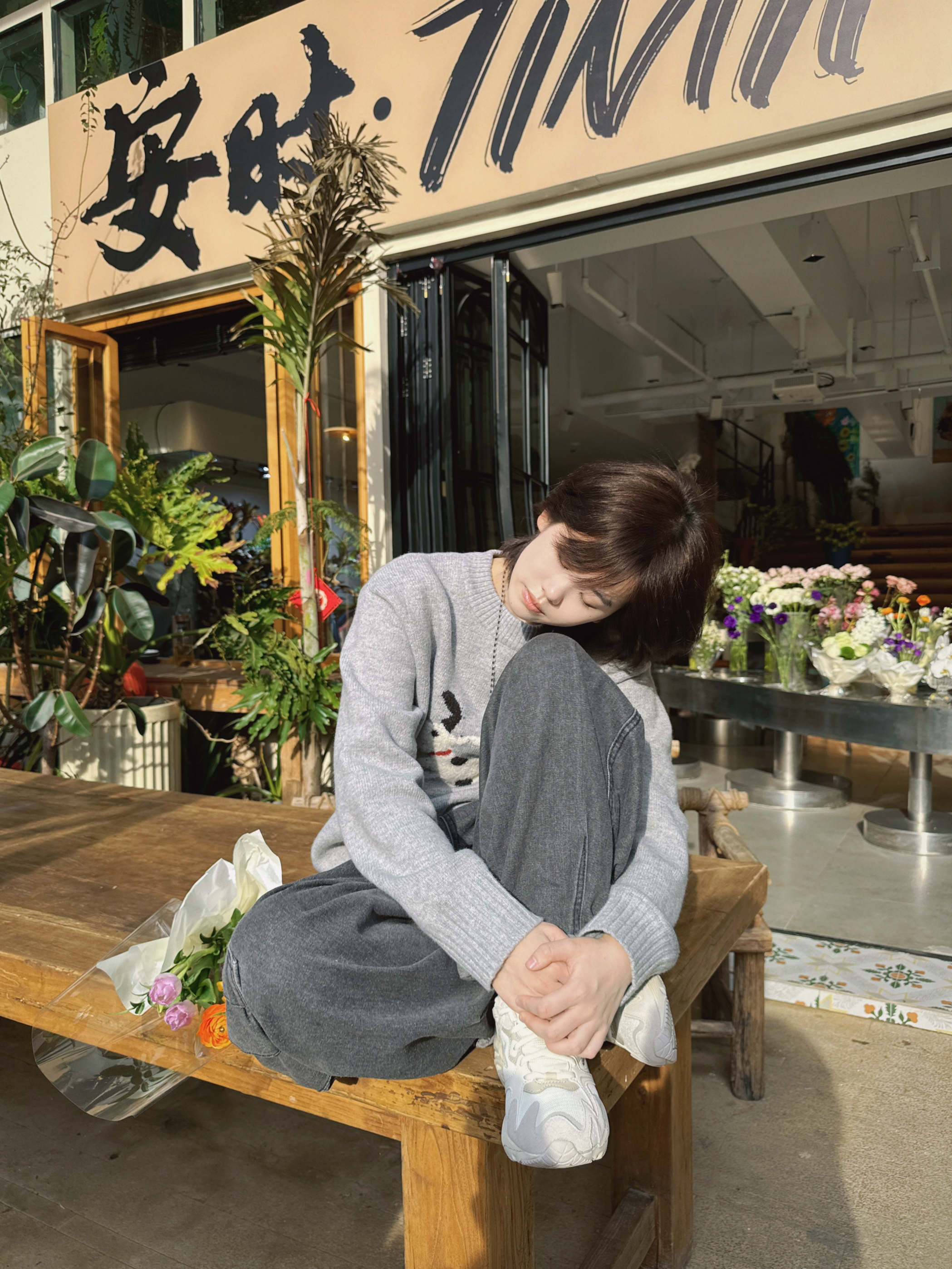 黑灰白一直都是百搭的经典色系,灰色毛衣软糯又好搭配,随便穿条牛仔裤,选一个大晴天,帅的嘞!