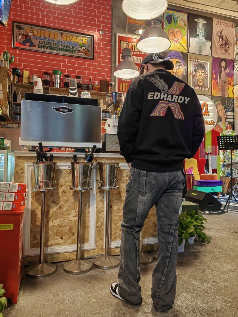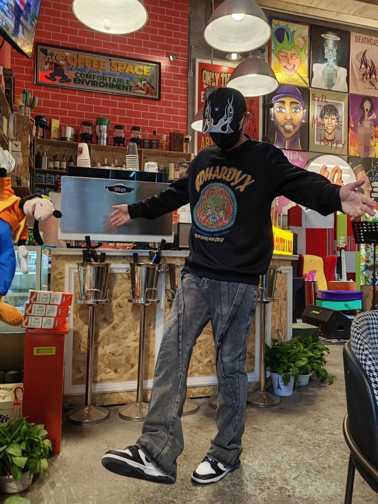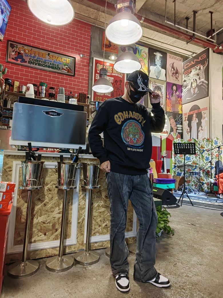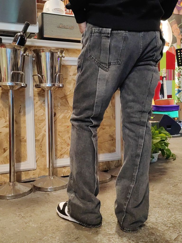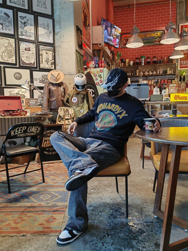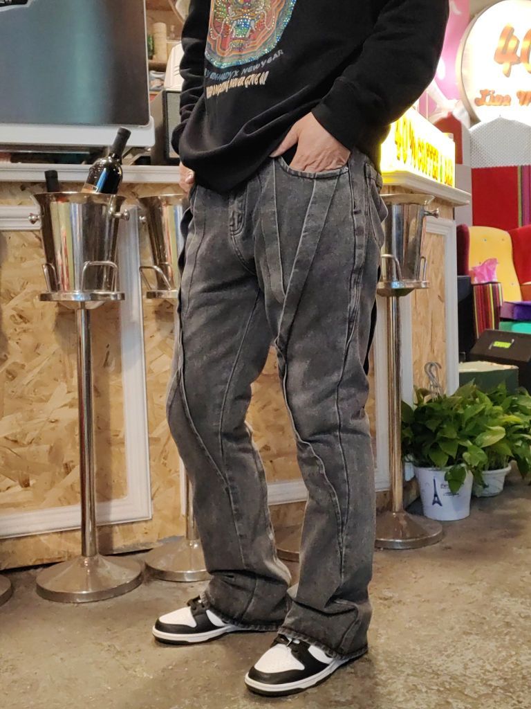 今日搭配灵感: 黑白火焰棒球帽配黑色圆领卫衣 再来一条新因素高街水洗做旧牛仔裤很有复古的感觉,微喇版型和裤腿压折设计真的很喜欢!特别是颜色!!深灰色与上身黑色形成黑白灰整体层次感。高街的风格潮流时尚,简直太酷啦! -------- 🉑参考: 🖤本人身高/体重:178cm/68kg 🩶尺码:XL