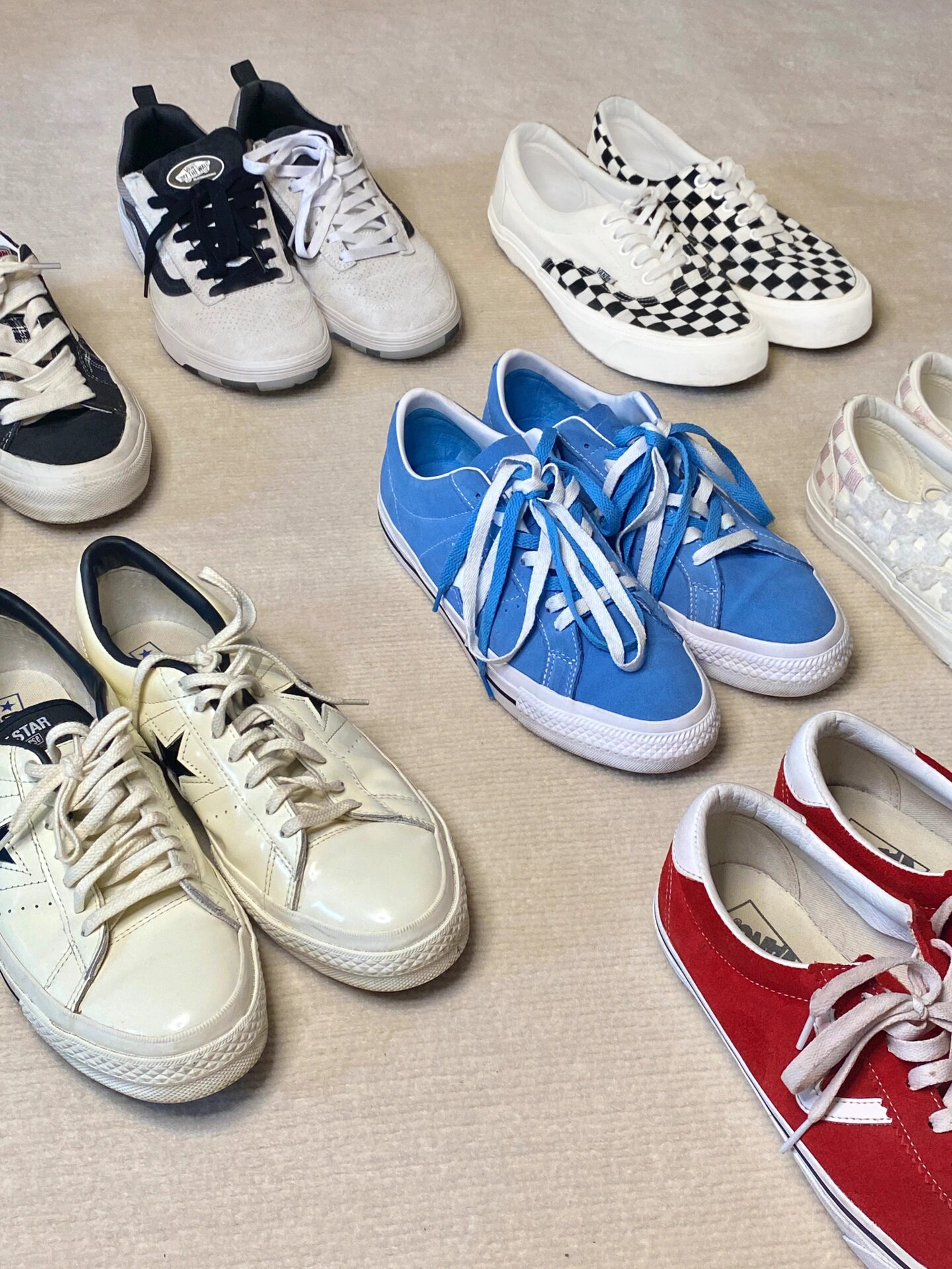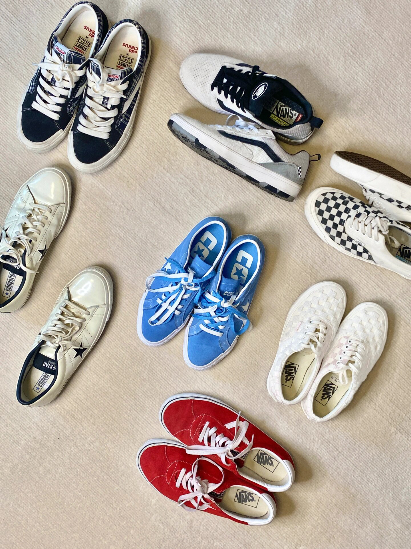 给宝子们整理分享-期小众板鞋合集,颜值都很宝藏,搭配起来也不费力气很百搭,配色方面很复古,一个五彩斑斓的夏天就要来了!! 🎀Vision Street Wear 脚底偏软,走路啥的很舒服,格子的拼接也很帅 🎀Converse 夏日必备,浅蓝色特别好看 白色亮皮,很简约百搭好清理,这两双的话脚感会偏硬 🎀Vans 黑白是鸳鸯的拼接,白粉是毛绒的棋盘格,好穿好搭 🎀Vans Sports...