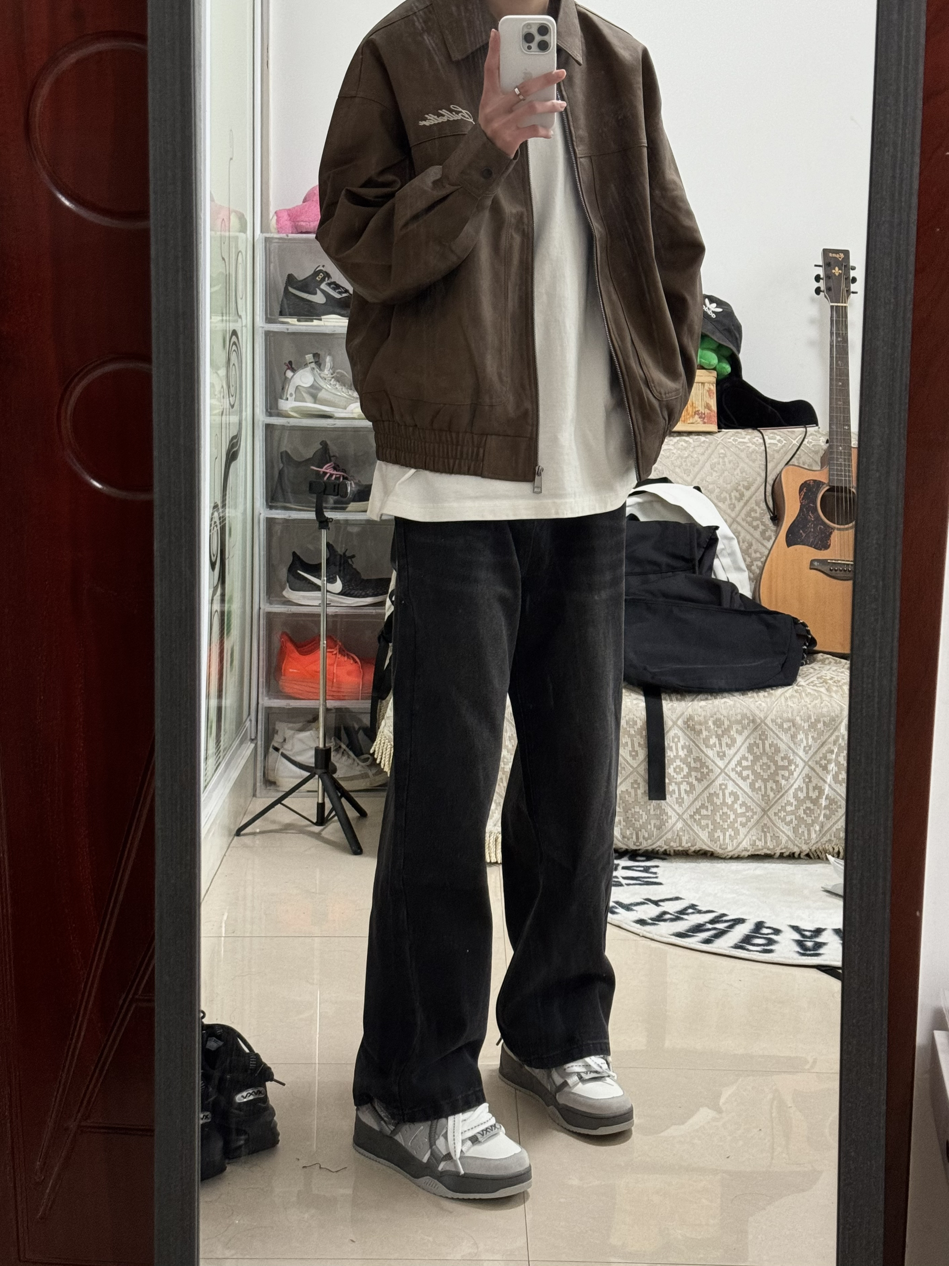 身高|体重:188 160 🧍♂️ 穿搭风格:街头 👔 上衣:棕色皮衣 👖 下装:直筒裤 👟 鞋子:板鞋 这一身泰酷辣兄弟们
