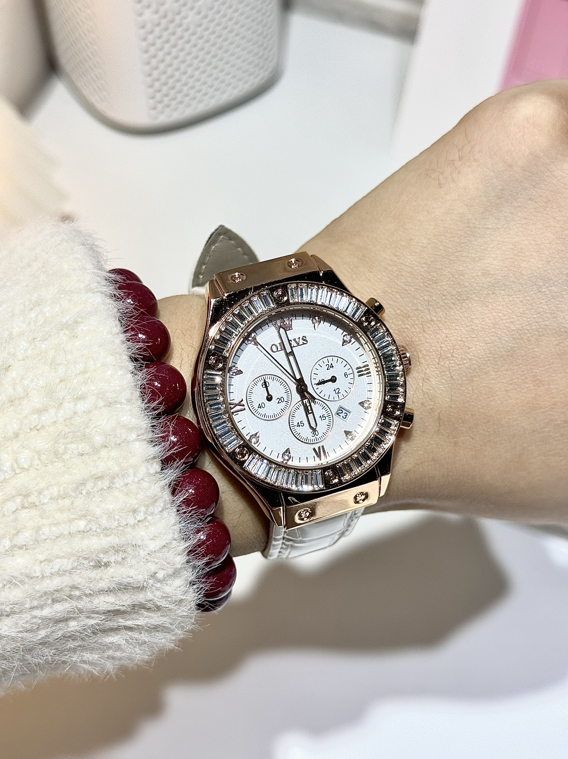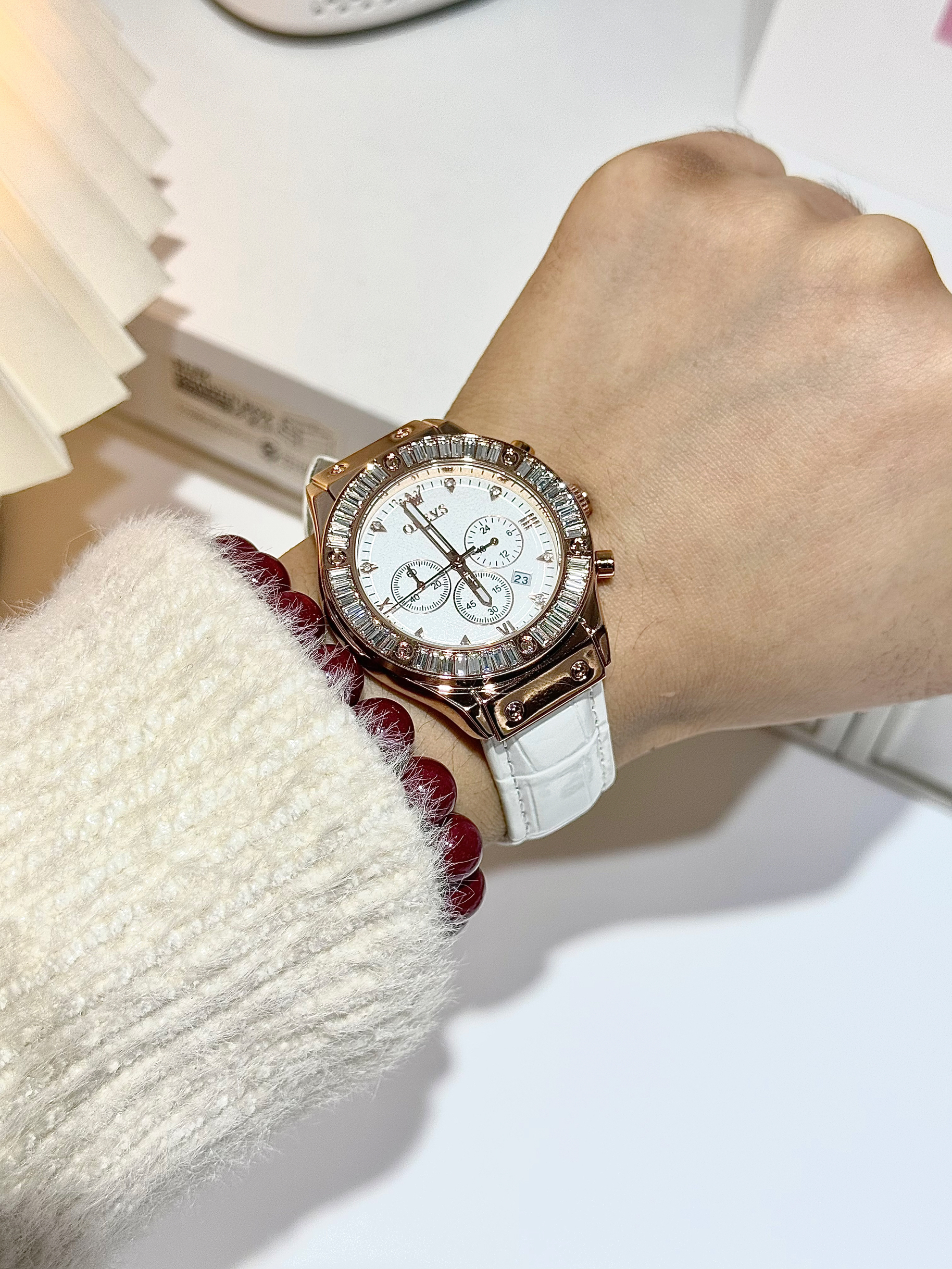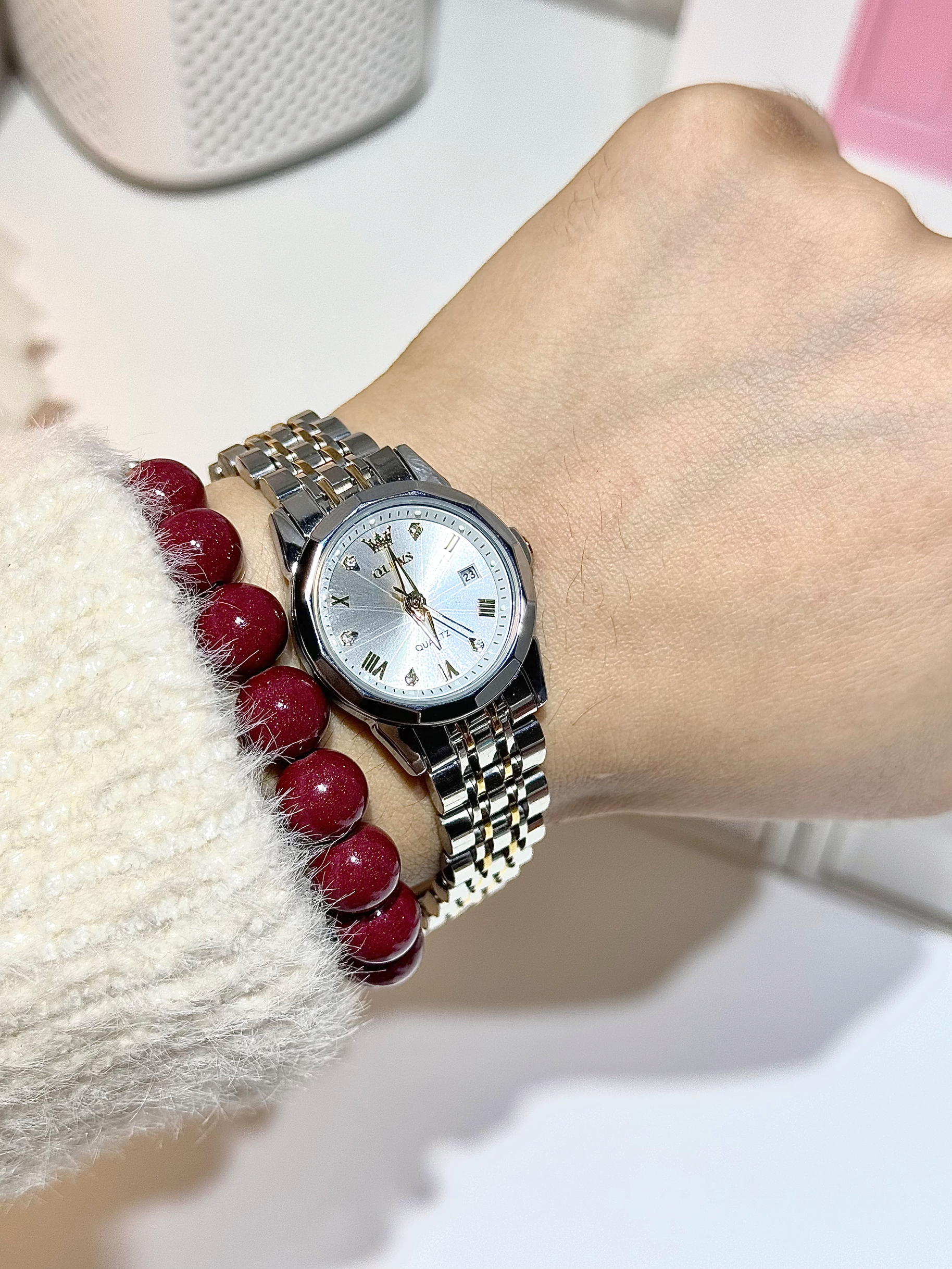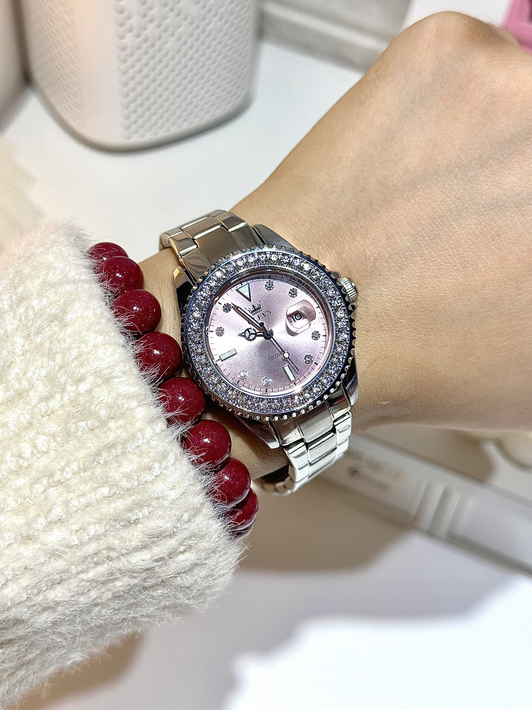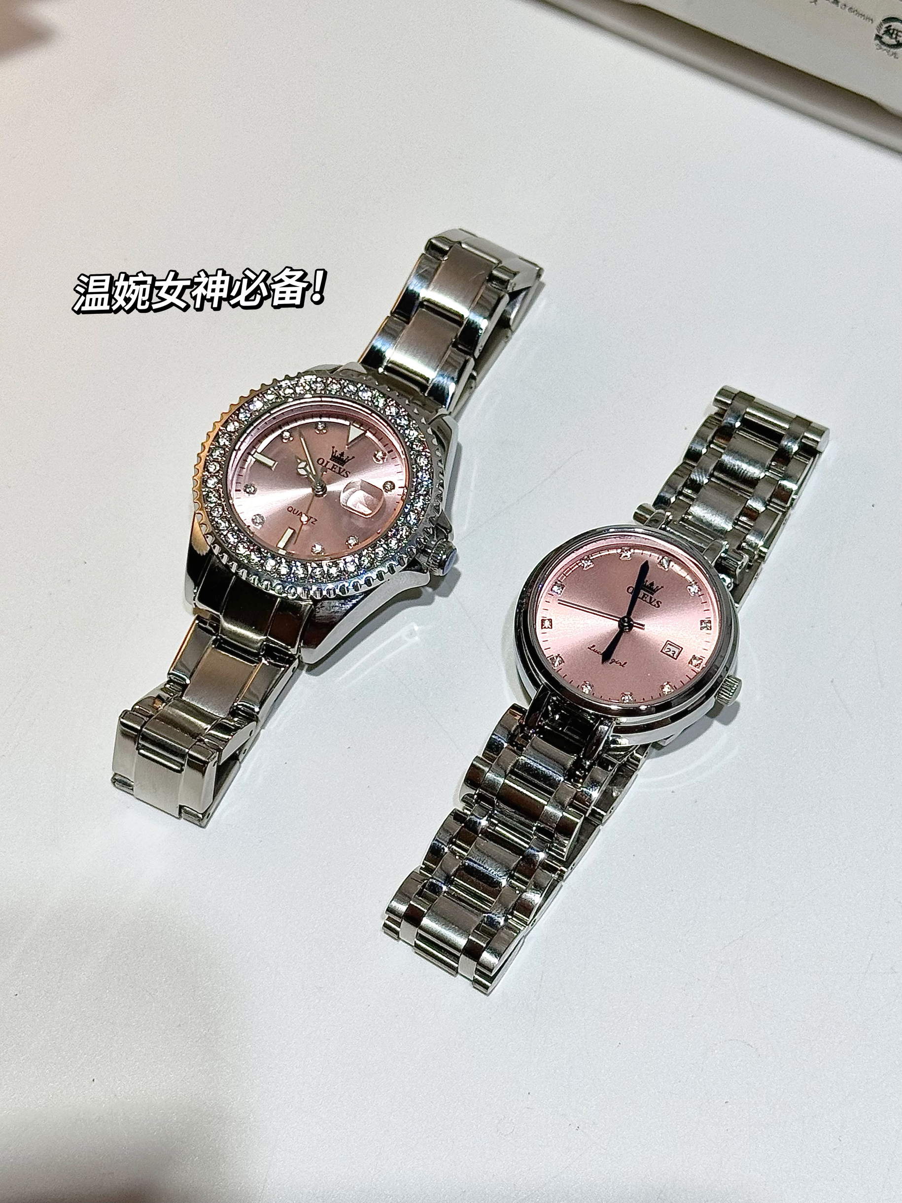 本篇笔记关联了OLEVS/欧利时 小圆表 日历休闲ins风镶钻防水石英女士手表 钢带本色粉面等商品,为用户提供真实的使用体验和购买参考。