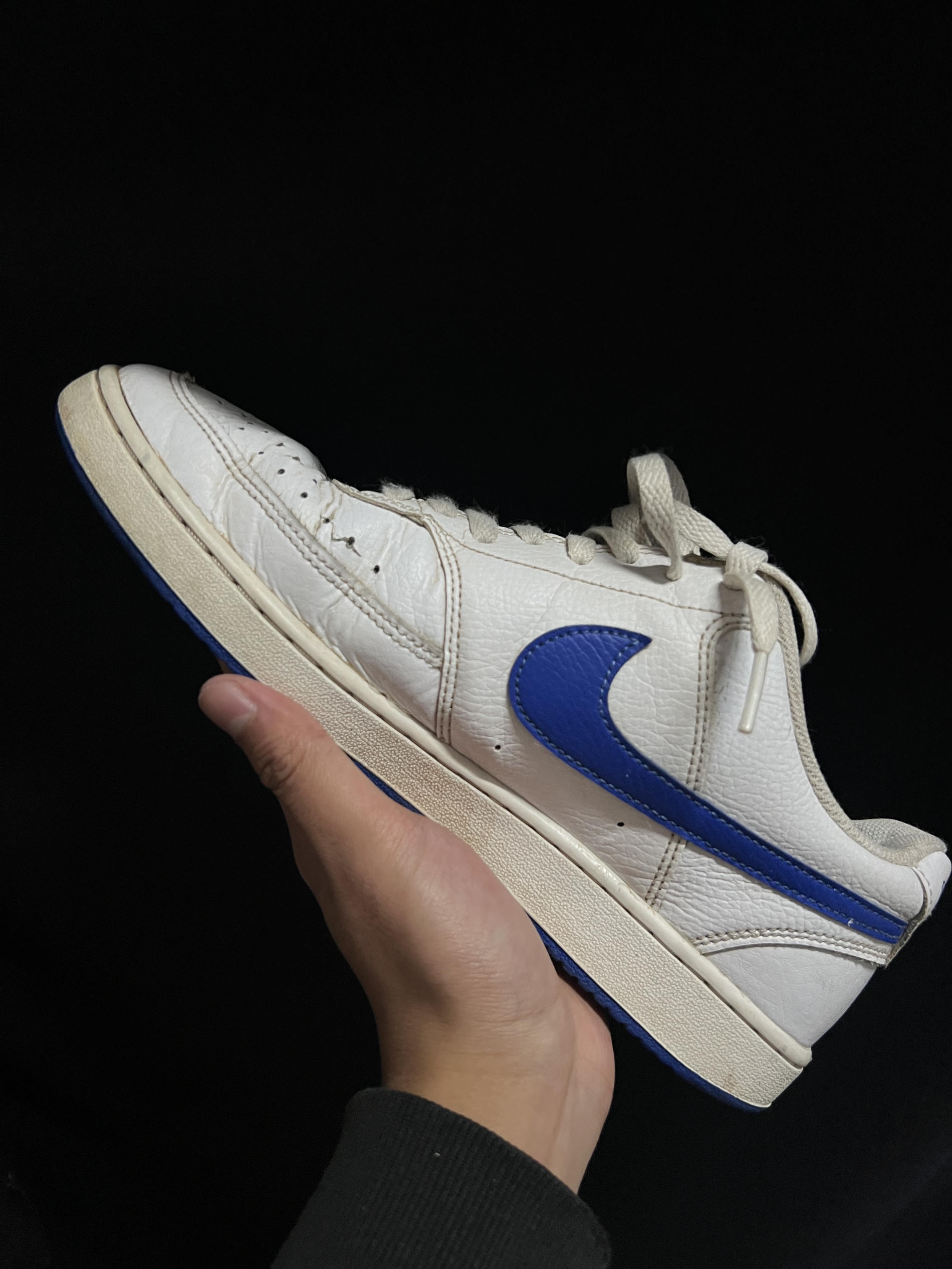 👟经典的Nike小板鞋,蓝白的设计男女均可接受。鞋面材质柔软,用手按压荔枝纹明显。 🚶上脚感受不硬,鞋内衬有一定的加厚,鞋舌明显要多一点填充物。低帮的设计,不仅轻而且上脚方便,基本属于一脚蹬系列。鞋面做了透气孔设计,透气舒适。 🎨简约的设计风格,如果喜欢极简风这双鞋真可以入手试试!!#宝藏休闲板鞋