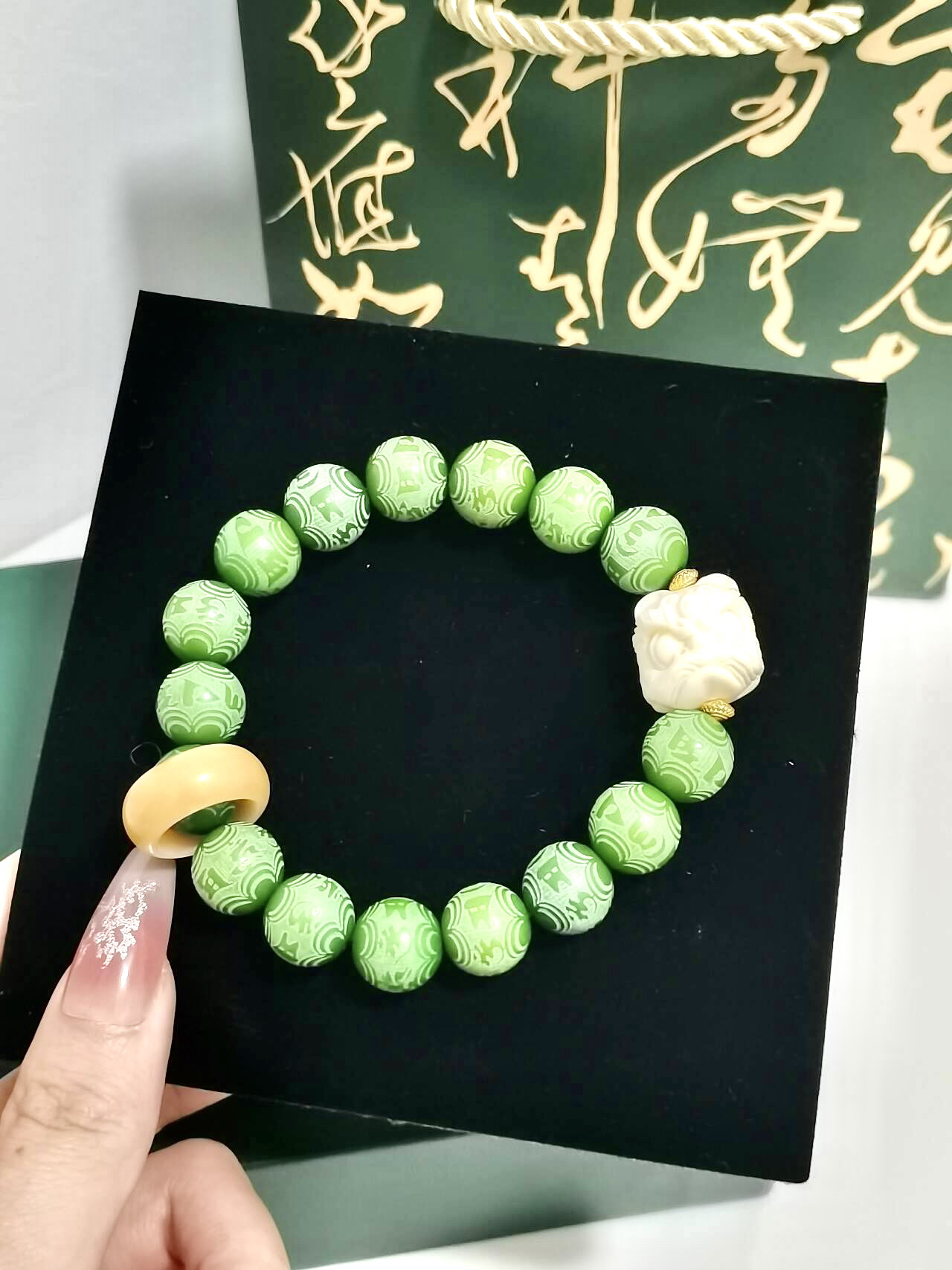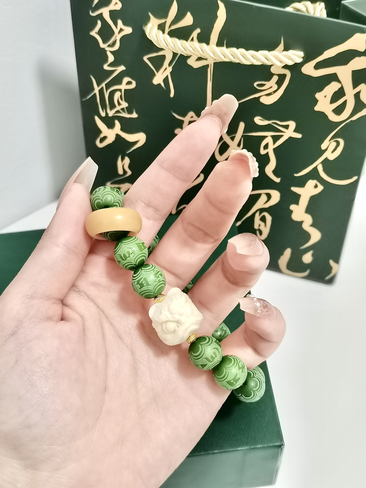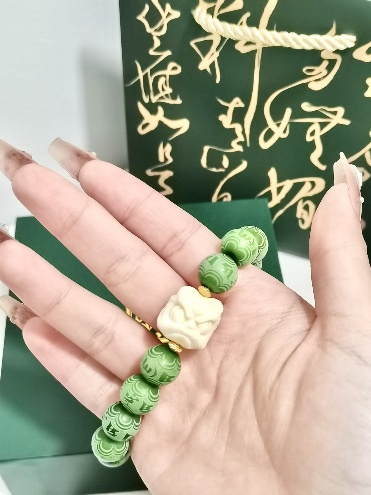 打开就不想送人的新中式来哩。 最近喜欢盘串,这个菩提手串的手链颜色太特别啦。