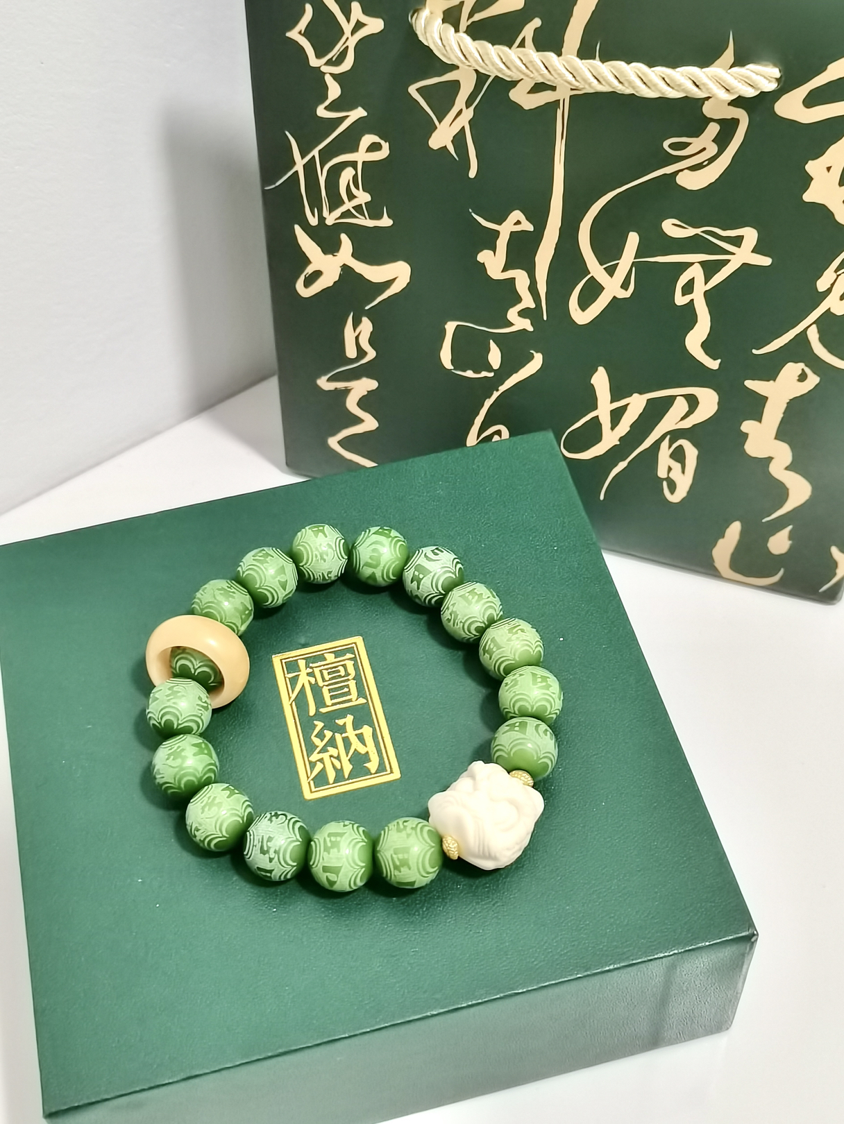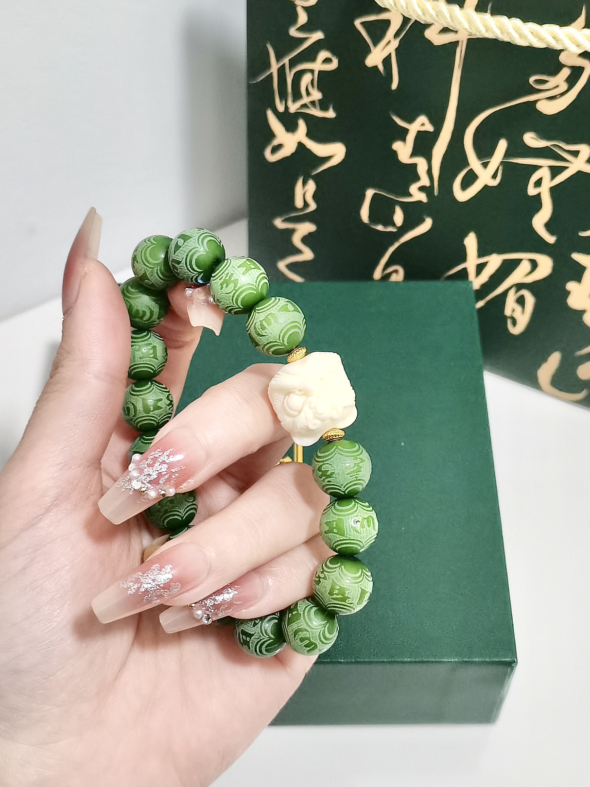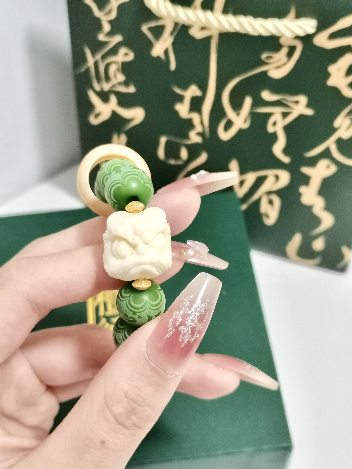 打开就不想送人的新中式来哩。 最近喜欢盘串,这个菩提手串的手链颜色太特别啦。