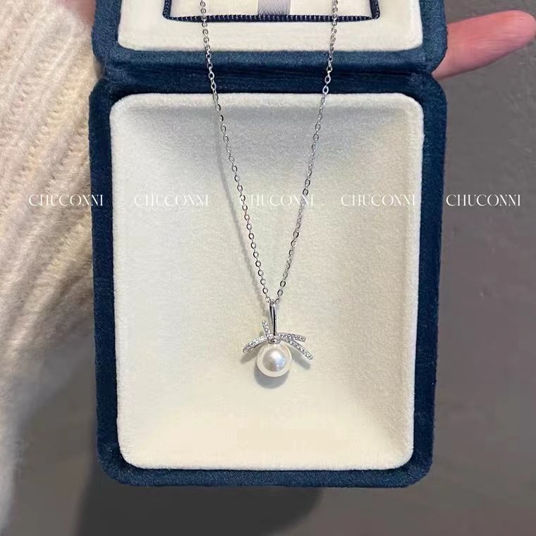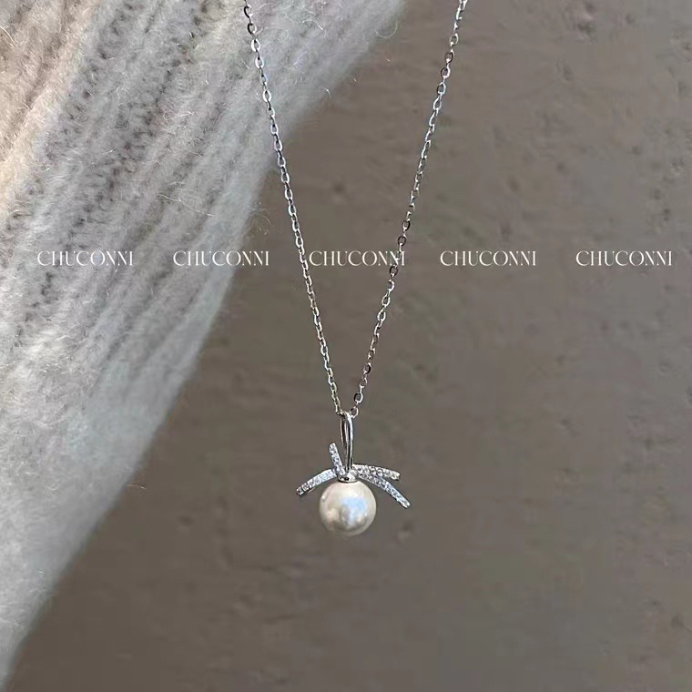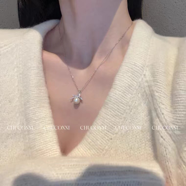 很闪亮! 韩国|925纯银 推荐款 蝴蝶结珍珠项链!妥妥的少女款