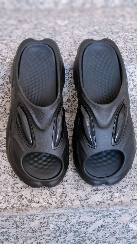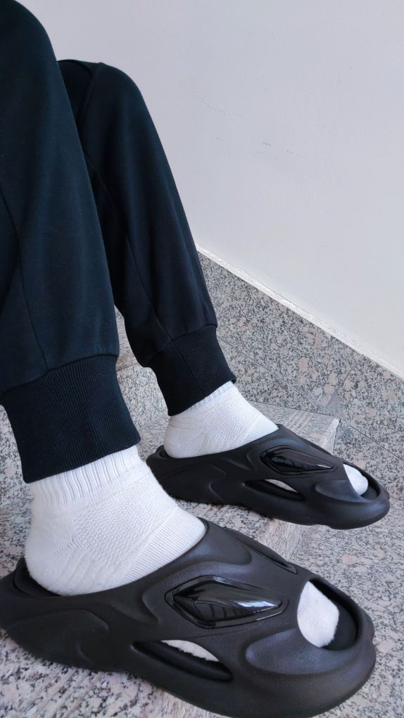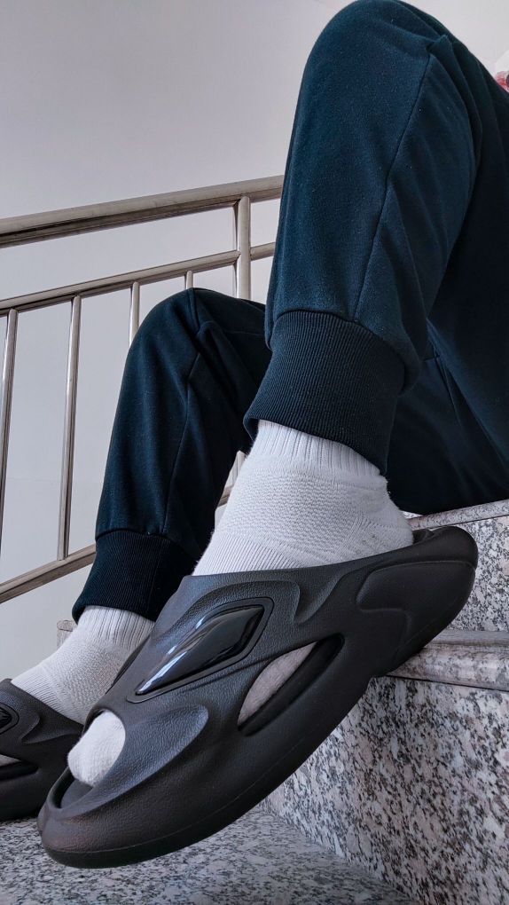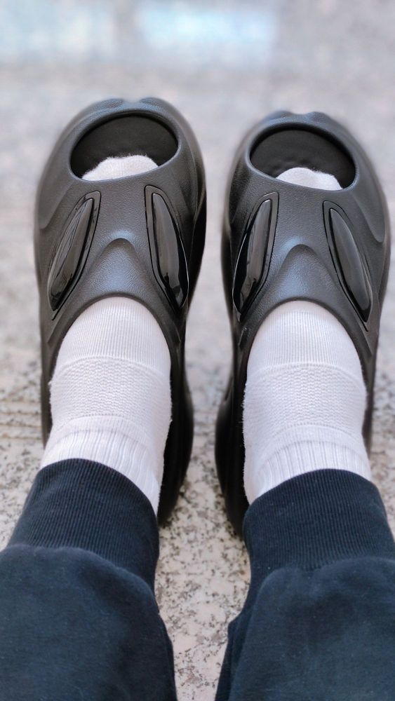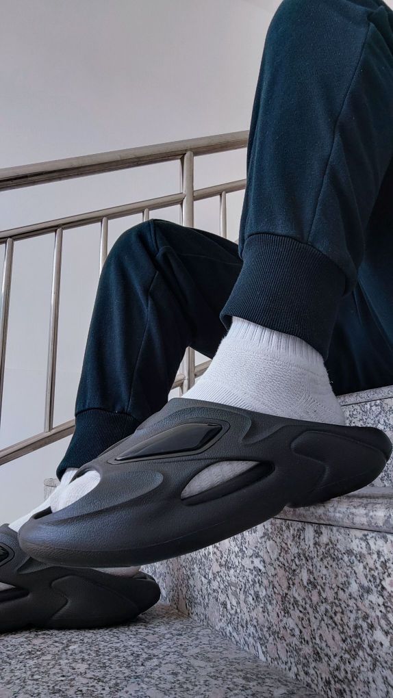 今天分享的是外星人👽拖鞋👟 ………………🈵🈵……………… 本人身高180cm,体重68Kg 👟:#BIGWASP 配色:黑武士 鞋码:43码(建议拍大一码) ——————👍🏻👍🏻———— 这款踩屎感拖鞋质量没问题的 而且摸起来质感🈵🈵 鞋头处眼睛👀设计精美一点 整体穿搭还是不错滴