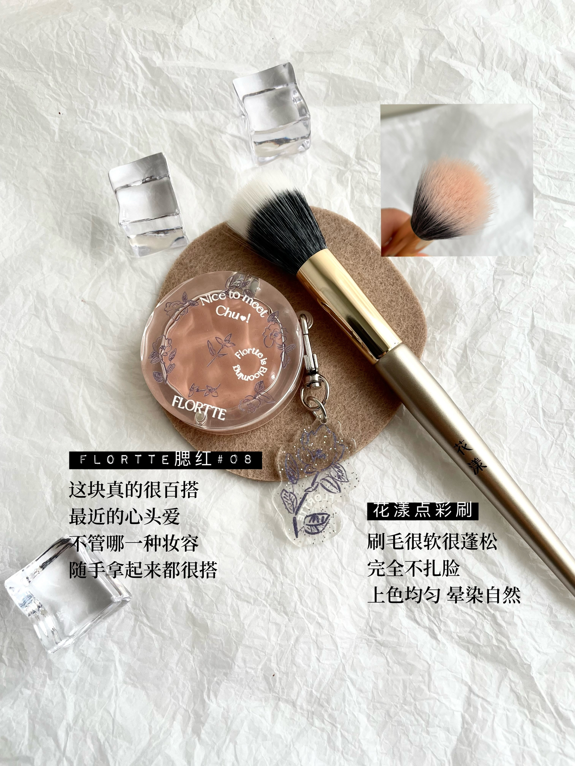 本篇笔记关联了FLORTTE/花洛莉亚 初吻惹系列单色腮红 自然膨胀色4.5g 08 A【玫瑰豆沙】、Kaleidos/万花镜 烟熏蕾丝四色眼影盘 碎钻哑光氛围感 4.8g 002冷萃棕、UODO 靓颜遮瑕液 持妆提亮 眼脸部遮雀斑化妆师 5ml 02自然色等商品,为用户提供真实的使用体验和购买参考。