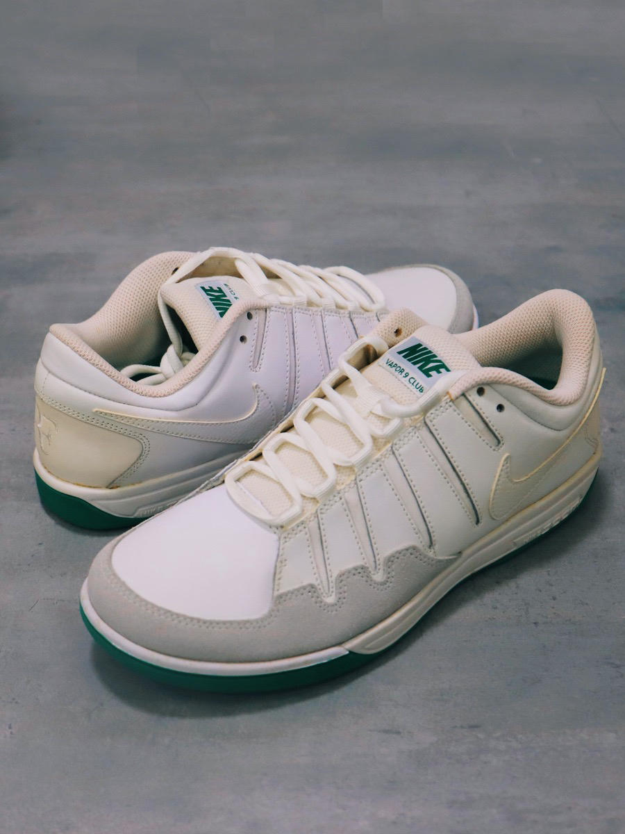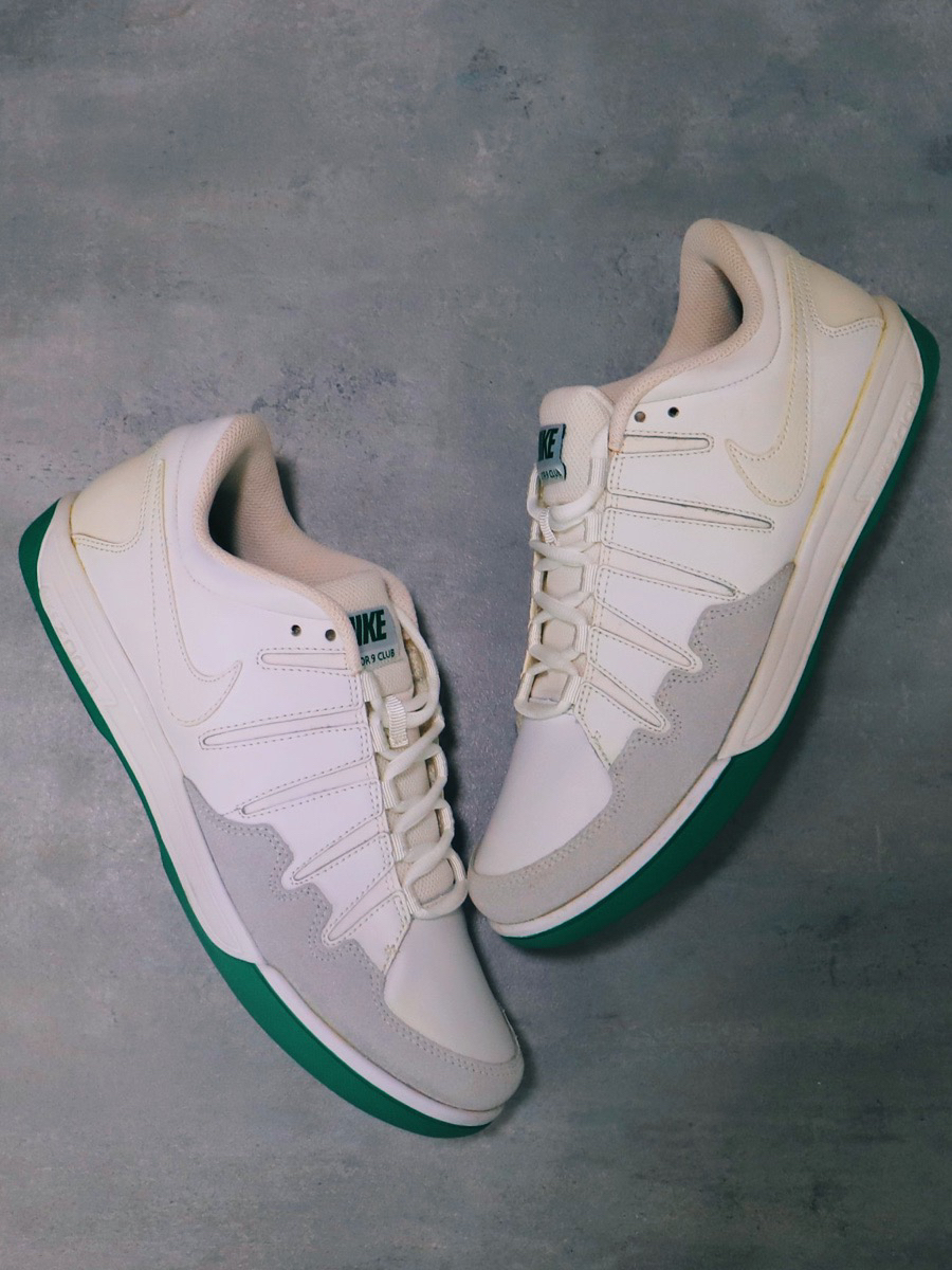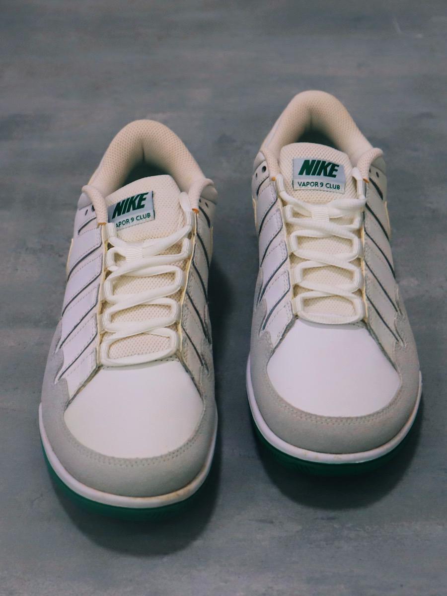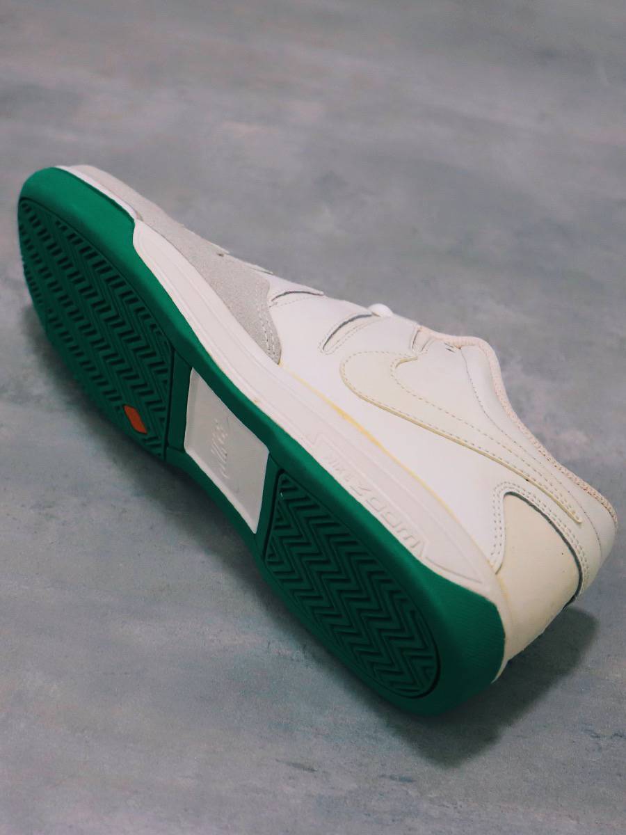 这双老鞋不知道还有人记得吗👀费德勒——耐克签名系列的网球鞋🤍 白灰配色我个人认为是这中最好看的色调啦‼ 鞋身很有做旧的风格感,鞋底更是做的墨绿色底,跟鞋身形成了很好的撞色!不得不说这个绿色真的是加的恰到好处啊! 同时也更有复古的感觉🍃 鞋身的脚感特别的轻盈~打球的时候感觉很舒适!! 而且整体包裹性很不错~咱就是说真的太会挖宝了我👀 鞋带的设计也是简简单单很耐看~ 尺码我是正码上脚的!很合适