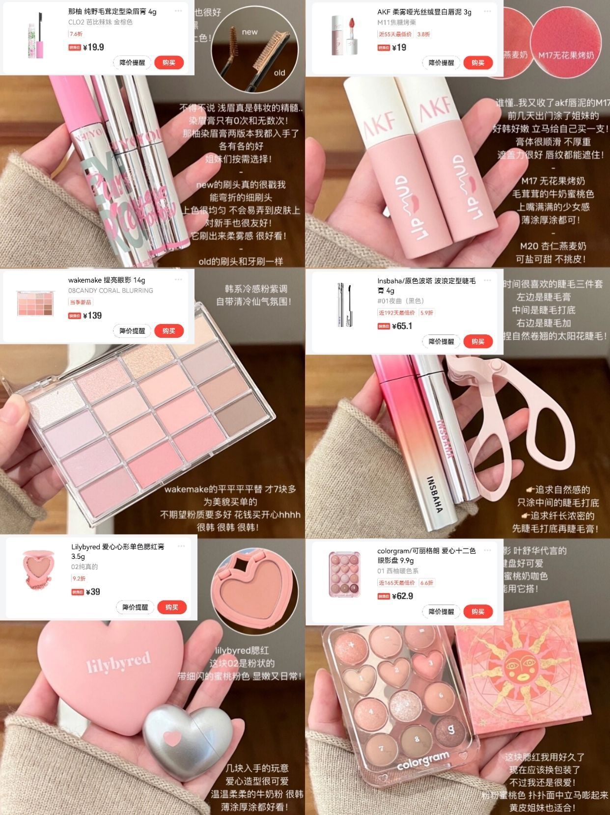 女高近期爱用的漂亮彩妆˚♡🩰高频使用版…… 彩妆这玩意怎么买都不嫌多呀 拎几个近期很爱并且回购的来写写! 🧾 ◽️那柚染眉膏 ◽️akf唇泥 ◽️colorgram眼影/girlcult腮红 ◽️lilybyred腮红 ◽️wakemake平替眼影 ◽️原色波塔睫毛打底/睫毛膏