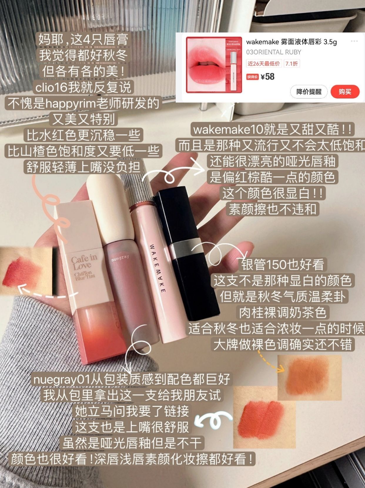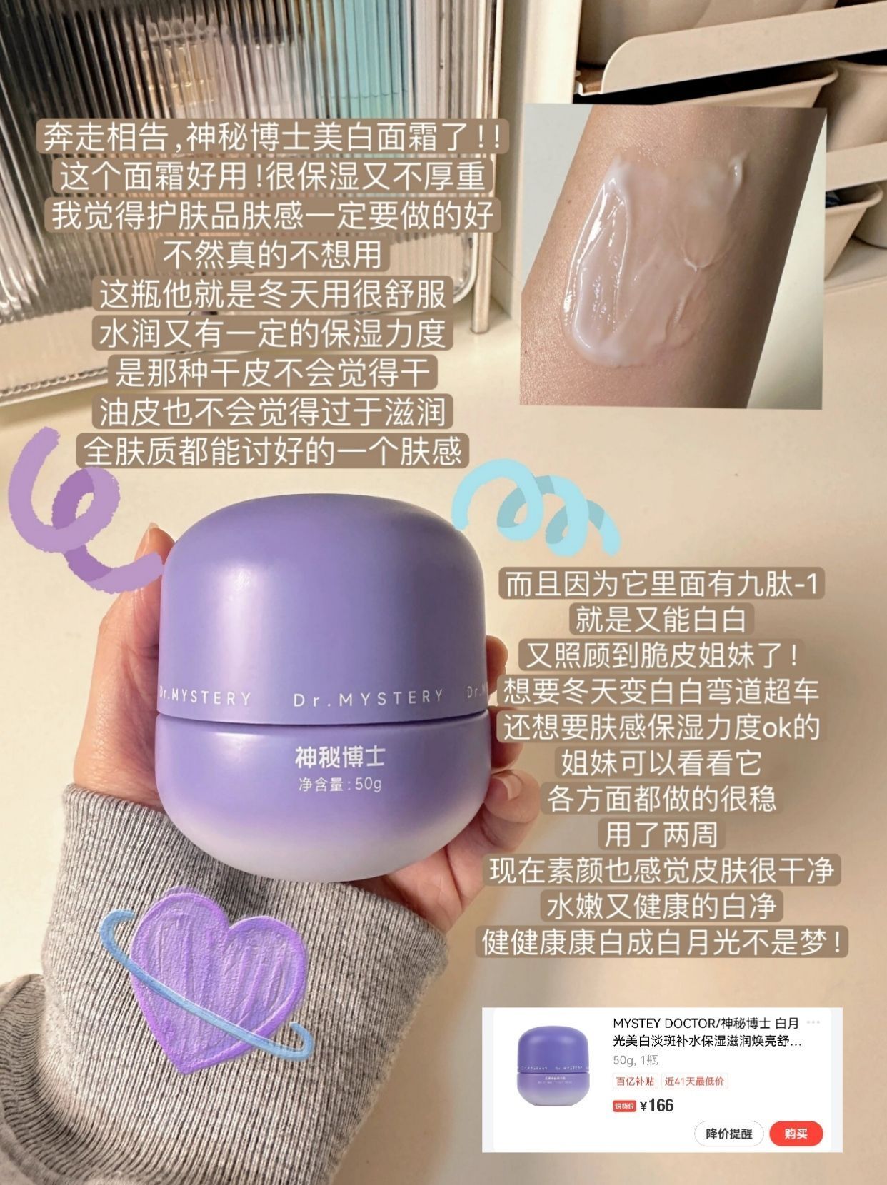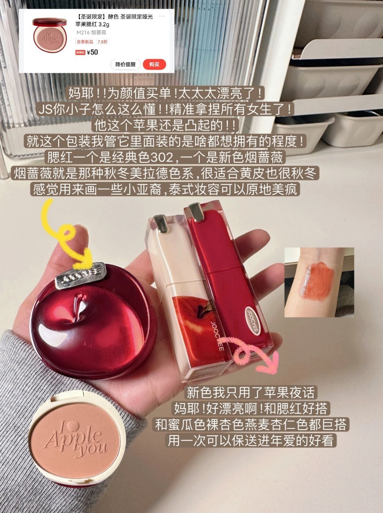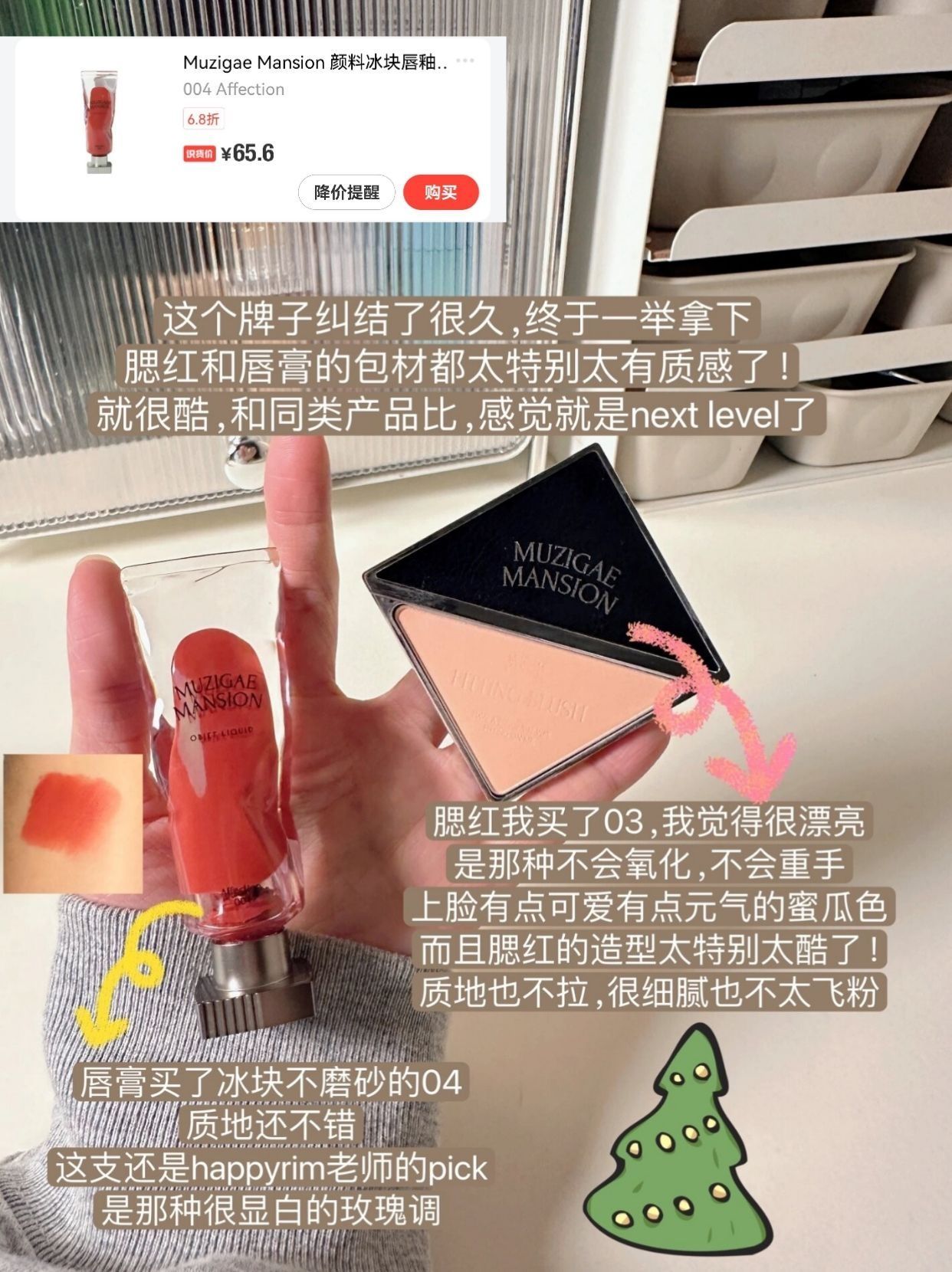 本篇笔记关联了MYSTEY DOCTOR/神秘博士 白月光美白淡斑补水保湿滋润焕亮舒护面霜 50g、【圣诞限定】酵色 圣诞限定哑光苹果腮红 持色 3.2g M216 烟蔷薇、wakemake 雾面液体唇彩 3.5g 03ORIENTAL RUBY等商品,为用户提供真实的使用体验和购买参考。