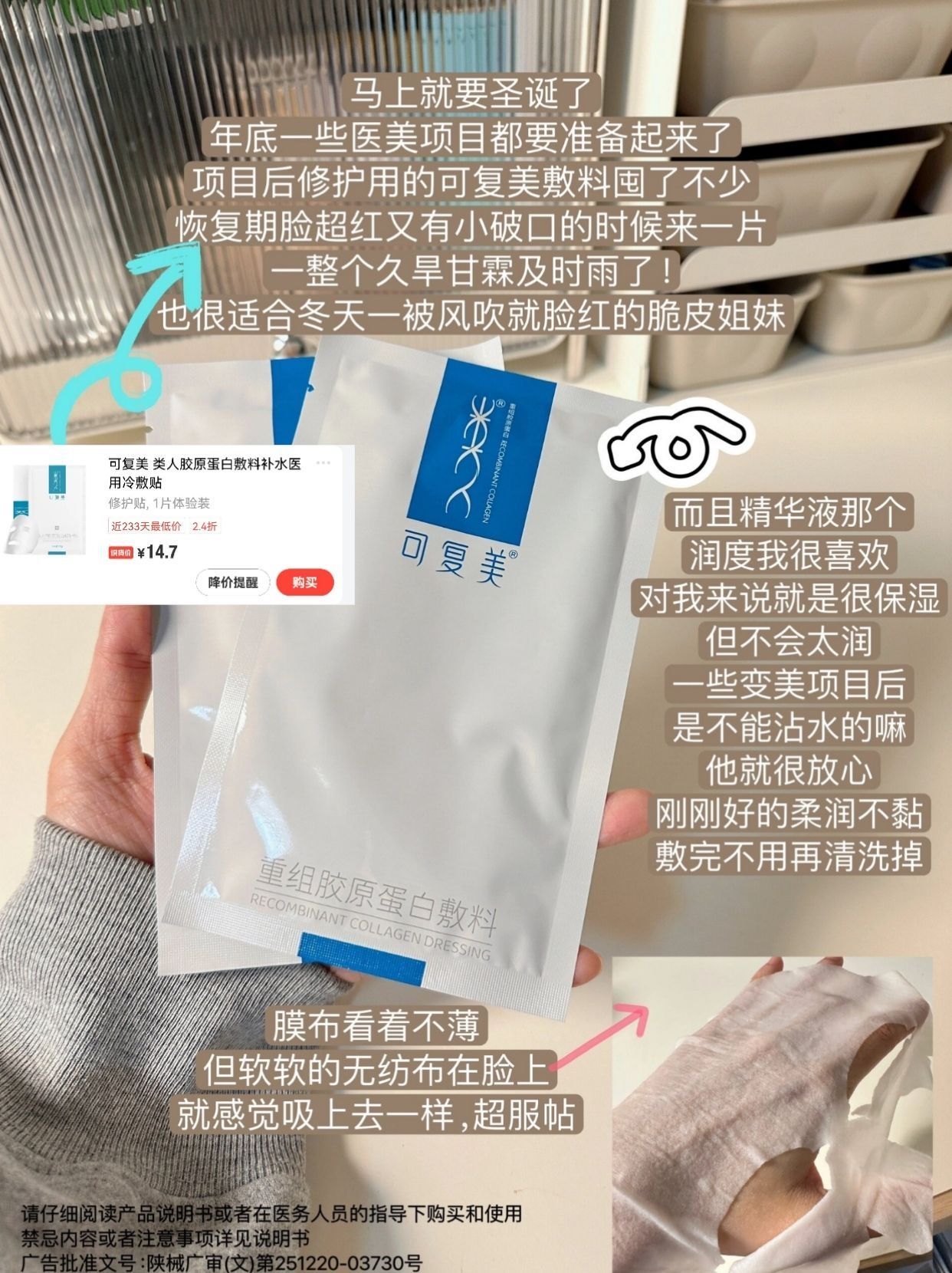 一期最近的满意购物分享~ 12月年底了,天气又开始变冷了 现在就是密集地想要收集一些圣诞周边,年终大作战啥的!! ◽️可复美敷料 ◽️神秘博士白月光面霜 ◽️酵色圣诞腮红 ◽️WAKEMAKE唇釉 ◽️Dasique四色腮红盘 ◽️MUzigae 颜料口红 请仔细阅读产品说明书或者在医务人员的指导下购买和使用 禁忌内容或者注意事项详见说明书 广告批准文号:陕械广审(文)第251220-03730...