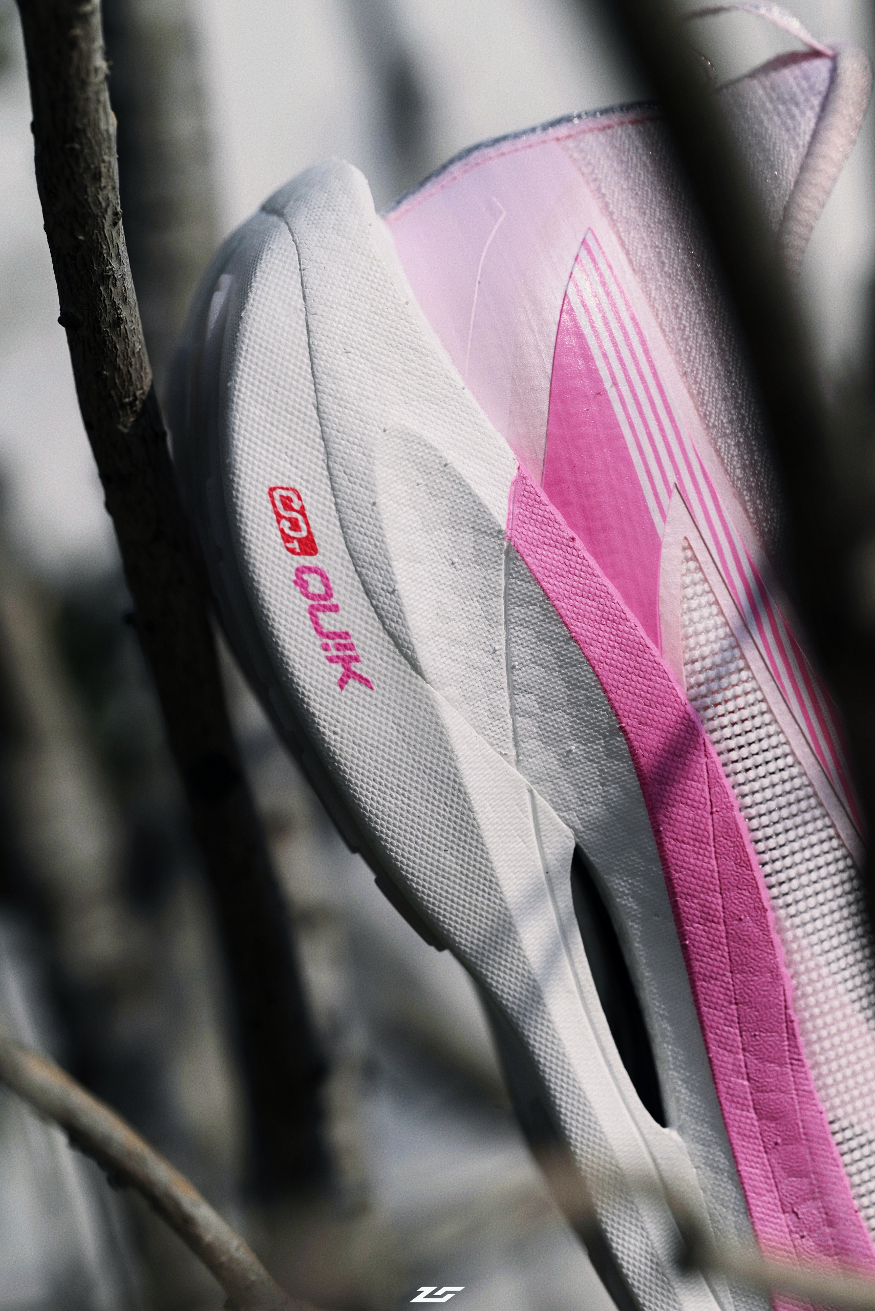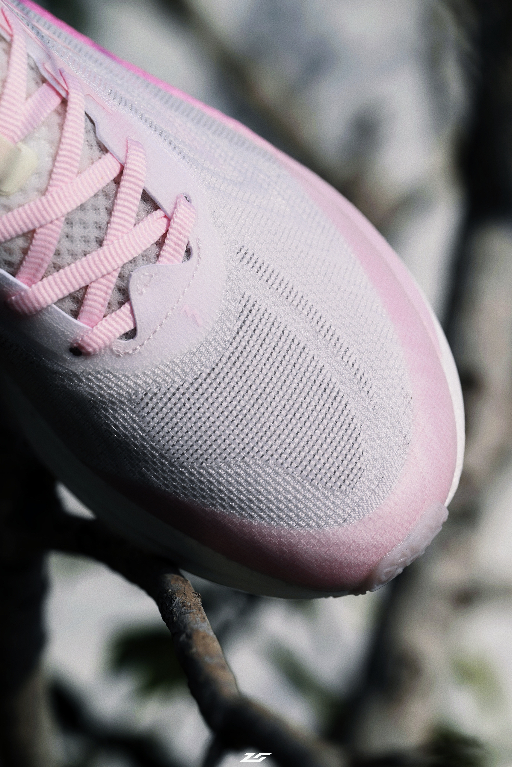 本来就一双飞燃2ET就够了,粉色还是能给个面子的,再多入一双吧。 鞋面的粉色色调非常浅,很接近白色了,还有干净清爽的感觉,鞋舌樱花小细节,对于一双发售399的竞训鞋,属于超常发挥了。 不过又是量不多,又又又溢价。