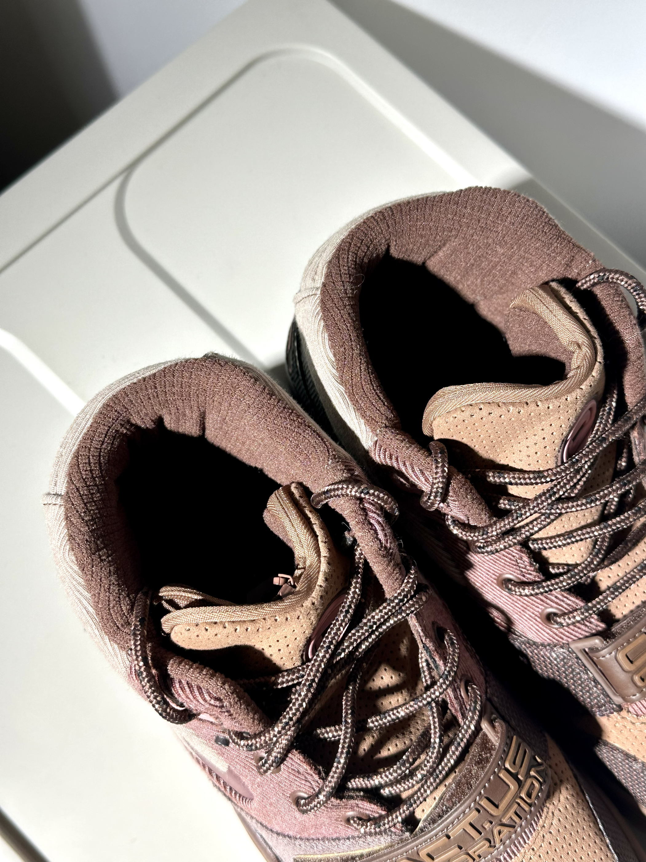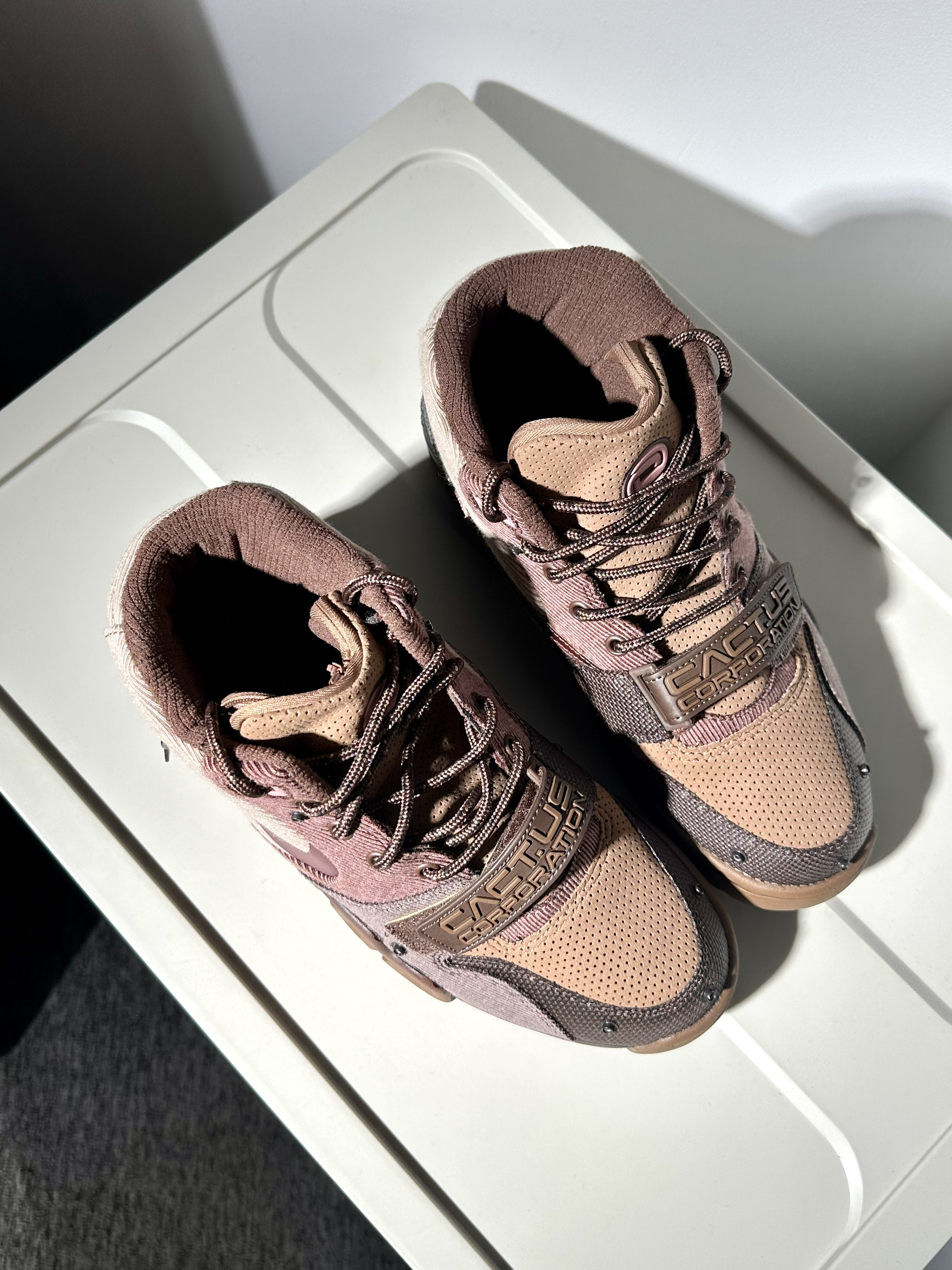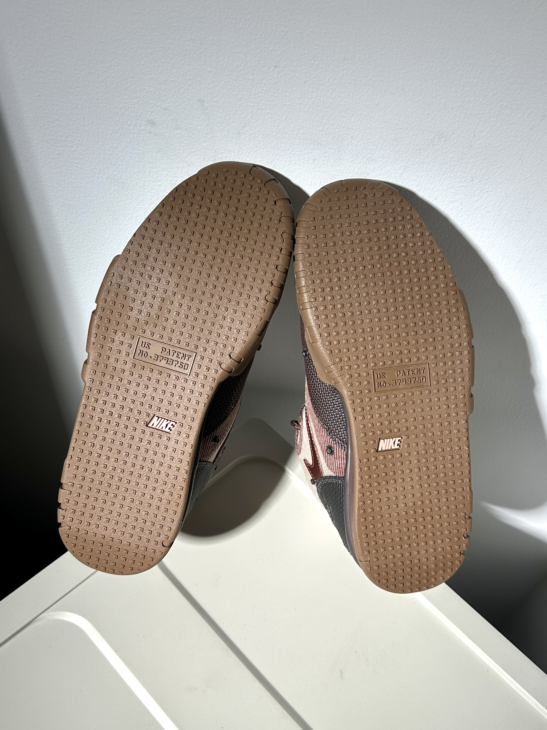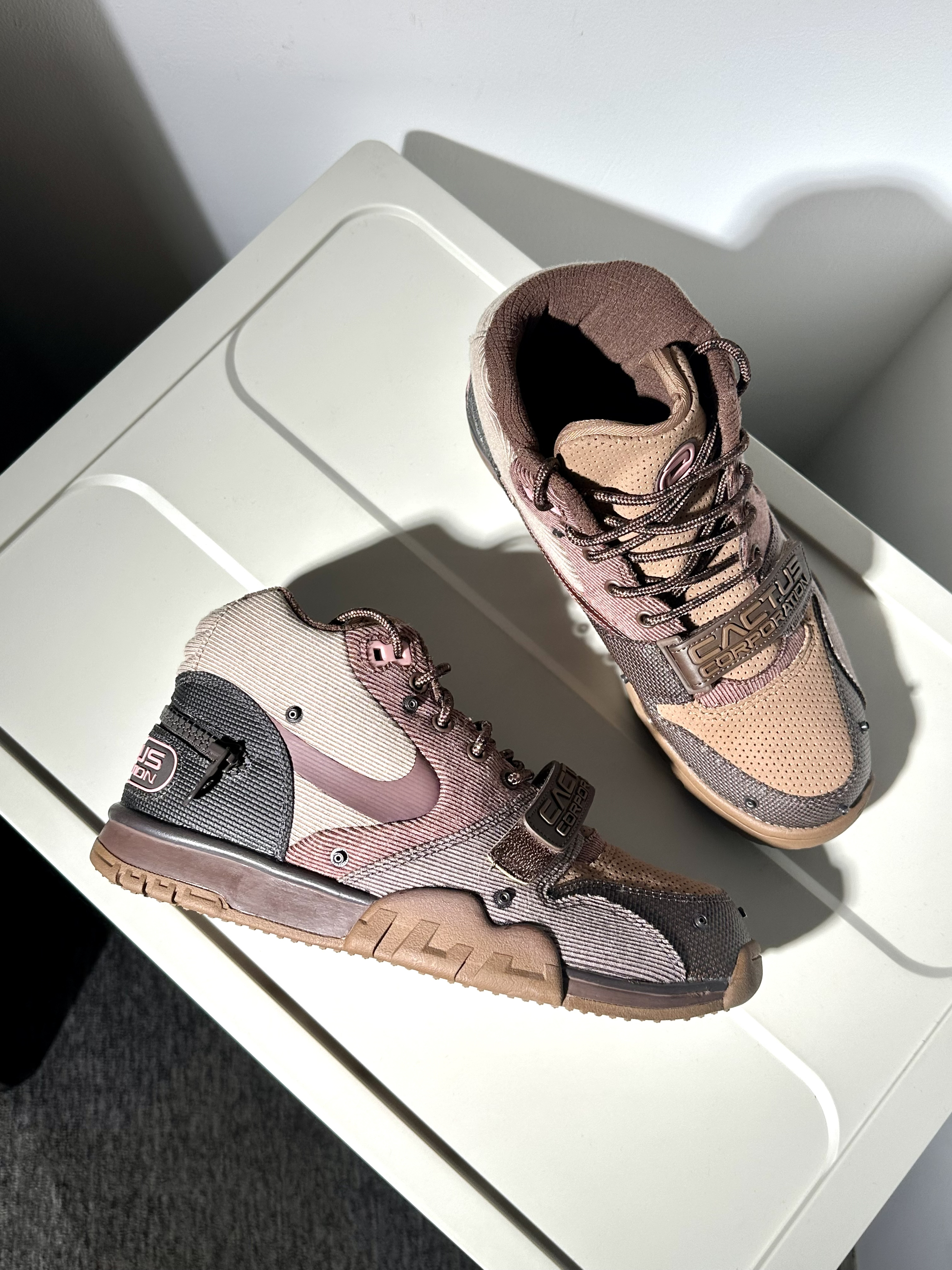 美拉德风格ts联名air trainer 1 颜值真的蛮高织物鞋面质感也很棒 实物更好看~配色上脚很百搭! 细节设计方面还是挺有诚意的 不过那块布真的很离谱🤣🤣 缺点也的确有… 脚感偏硬一点穿脱麻烦一点 综合价格来讲还是真的挺香~