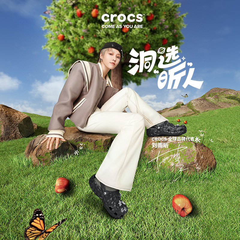 Crocs 正式宣布歌手、专业舞者、音乐制作人刘雨昕成为 Crocs 全球品牌代言人! 主视觉海报中,刘雨昕演绎了黑色经典「榴莲克骆格」、冻土色「暴风波波鞋」和黑色「雪屋凉拖」,并挑选并搭配多款智必星点缀于经典榴莲克骆格与雪屋凉拖上,将舒适感与潮流风格完美融合,为整体造型增添了新巧思。 其中经典「榴莲克骆格」在经典克骆格的基础上,大胆采用凹凸不规则的设计,形成独特的几何感鞋面,既保留了 Cro...