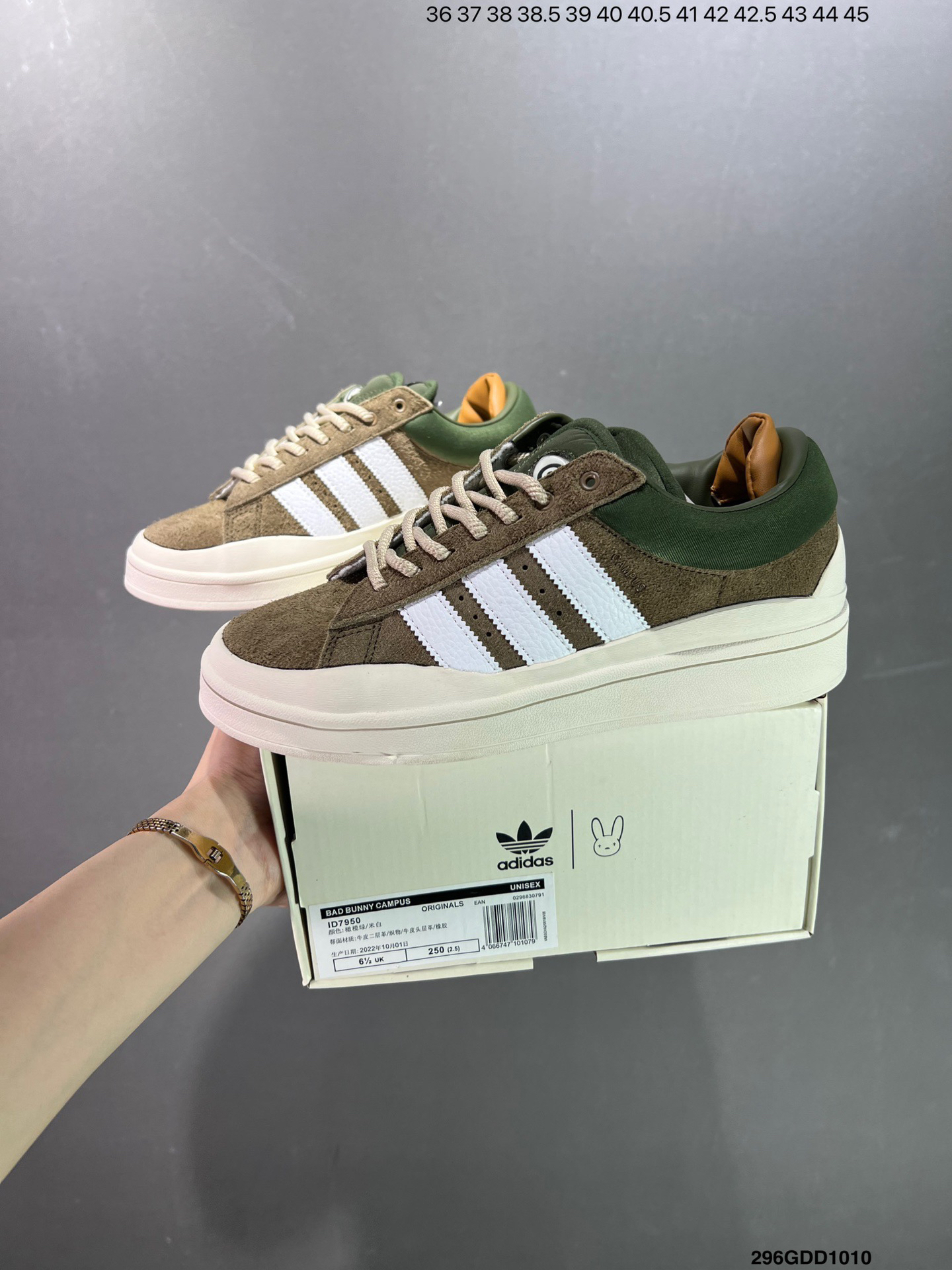 男女鞋半码制(配置正确抽屉礼盒,防尘袋,鞋带!!)#升级原楦原纸版开发#采用翻毛皮组合软质牛剖革鞋面材质#全新开发加高防水围条组合RB耐磨橡胶外底❗阿迪最帅联名之一,双鞋舌 + 鞋带面罩!联乘波多黎各的鬼才西语音乐人-坏痞兔Bad Bunny x 【Adidas】 Campus Light”Cloud White“学院莱特系列低帮复古系带休闲运动板鞋