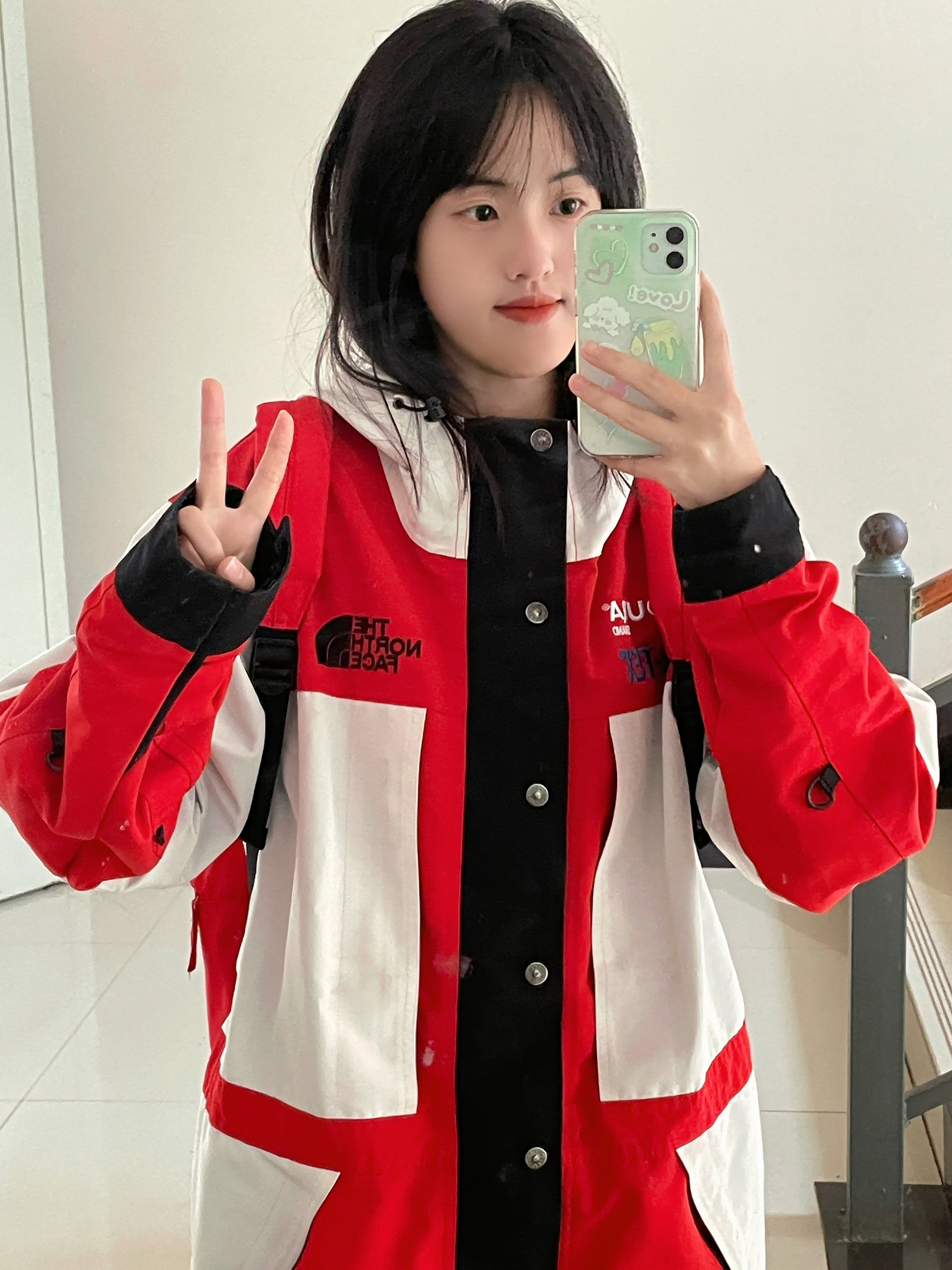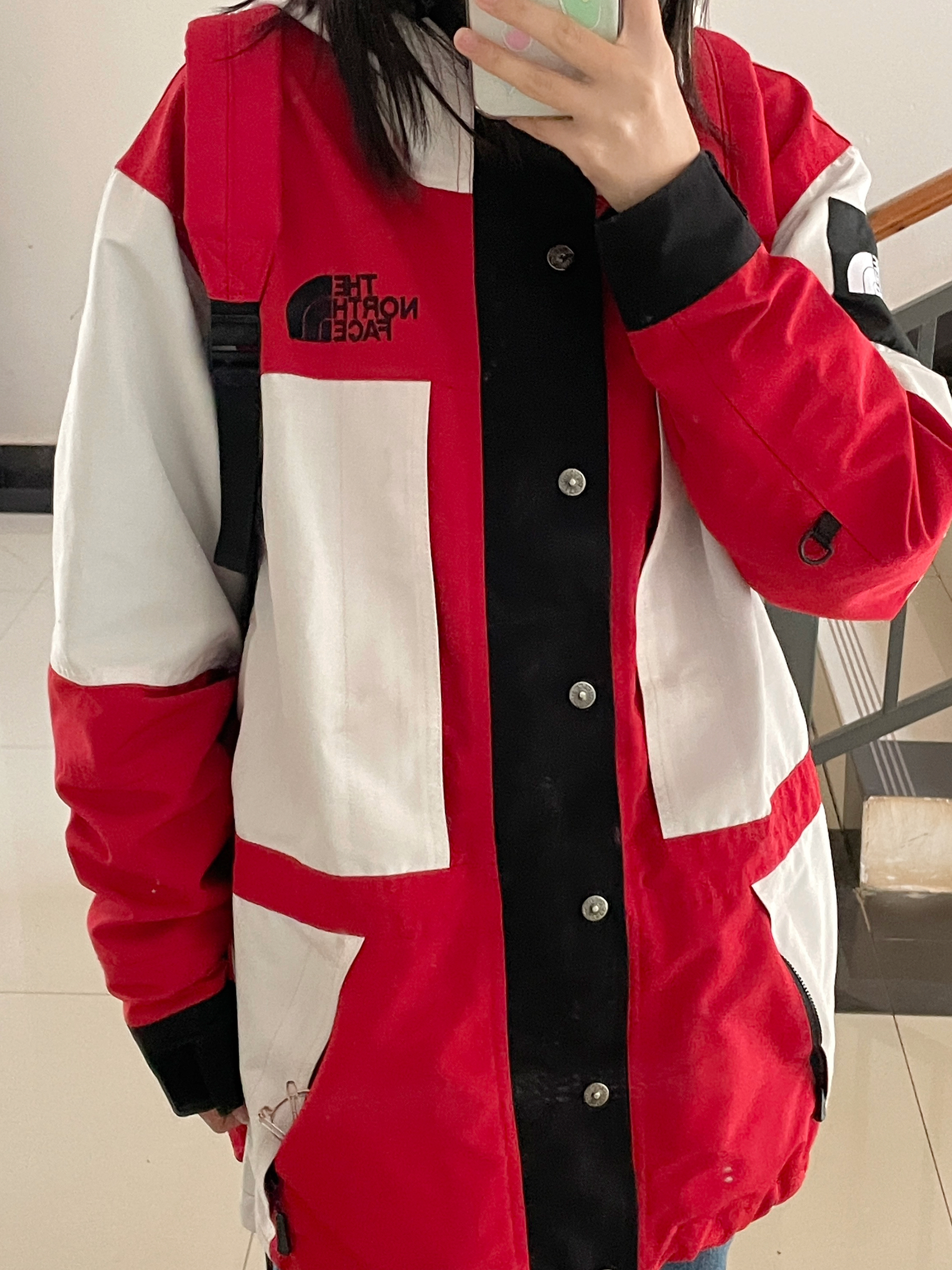 👔 :The North Face x Supreme 红白冲锋衣 面料很硬 质量超好! 红白配色真的很好看 男女穿 都适合! 🎒 :Kappa 假期刚入手的红色书包 不是大众款式 很 好看