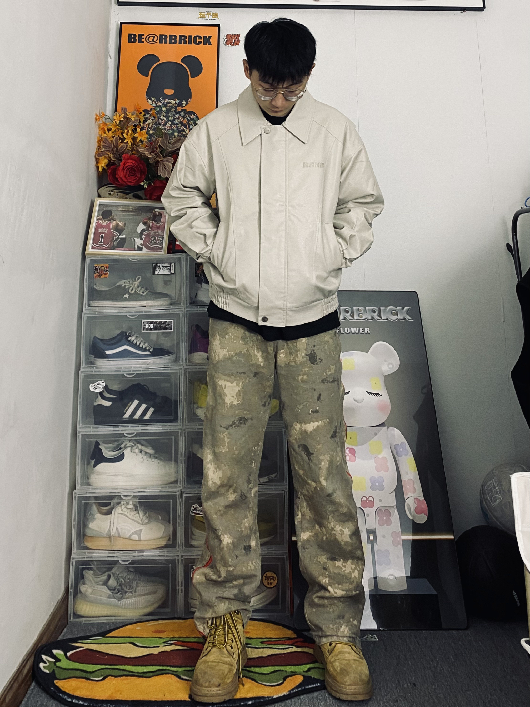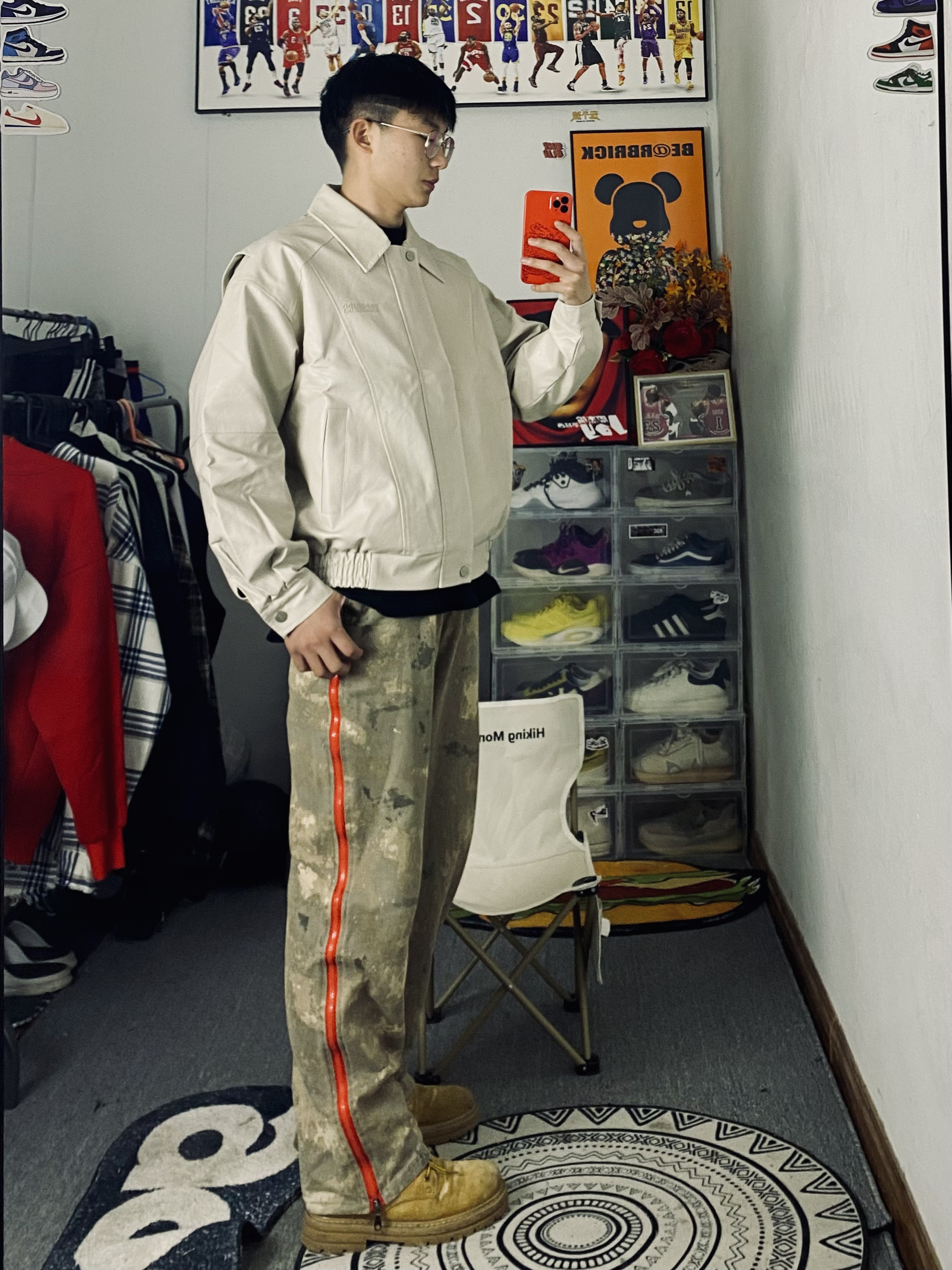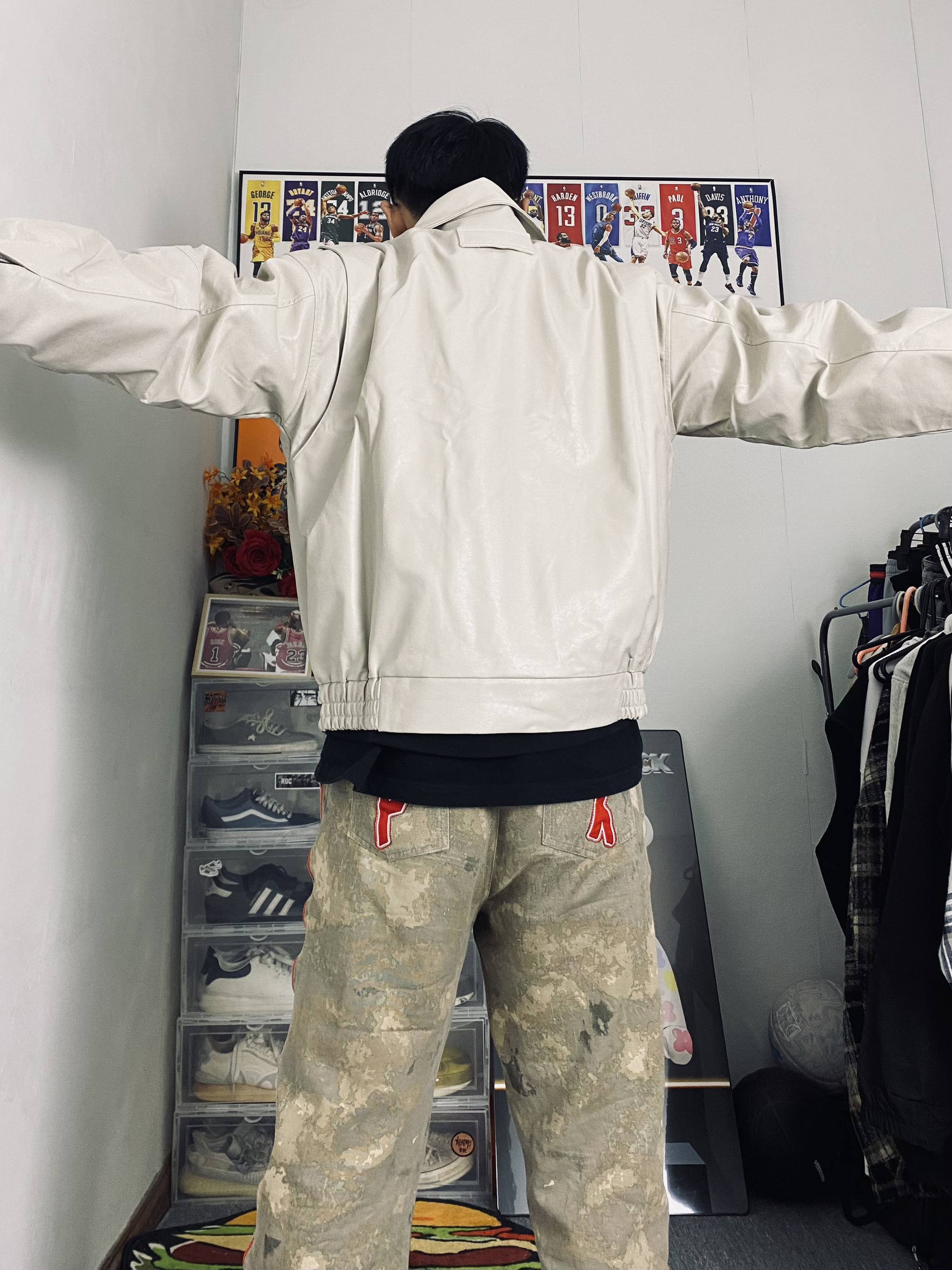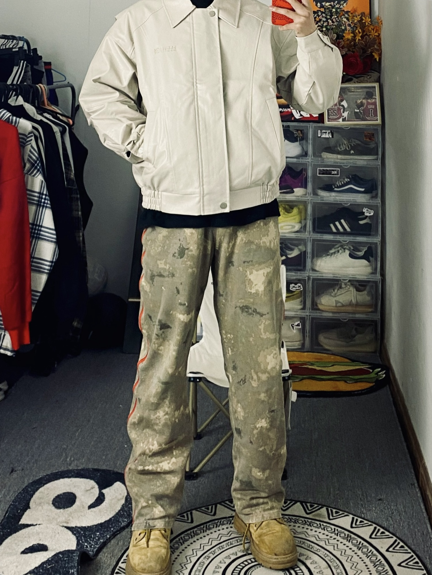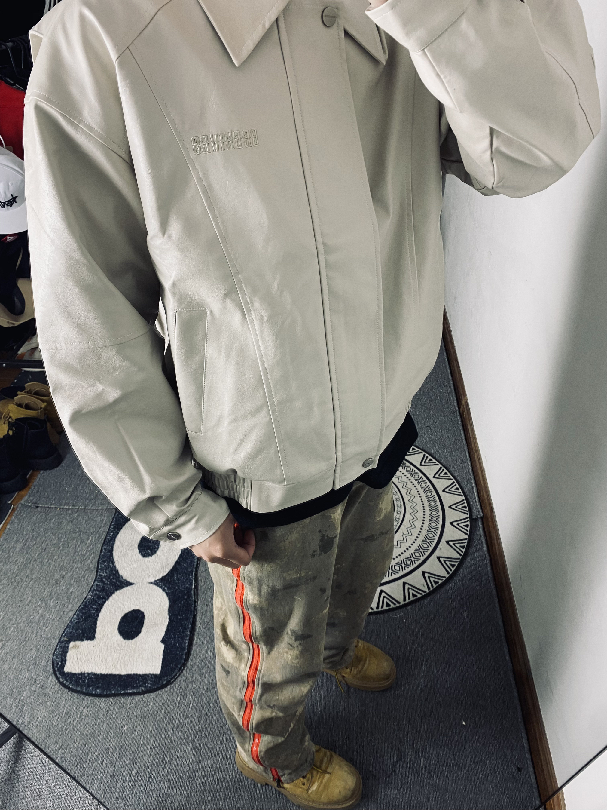 冰美式返校早春穿搭 👔衣服今天上身穿了一件乳白色皮衣夹克 看惯了黑色和棕色 尝试尝试一下新的配色 厚度和颜值都很在线 衣服版型立体百搭 — 👖裤子是一条沙漠拉链牛仔裤 直筒版型 拉链设计新颖独特🙈 — 👟鞋子是一双迪克斯马丁靴 大黄靴百搭又耐看☺️ — 尺码推荐:本人身高178体重130斤 衣服裤子选择的都是xl 这是我的上身效果 大家可以参考一下