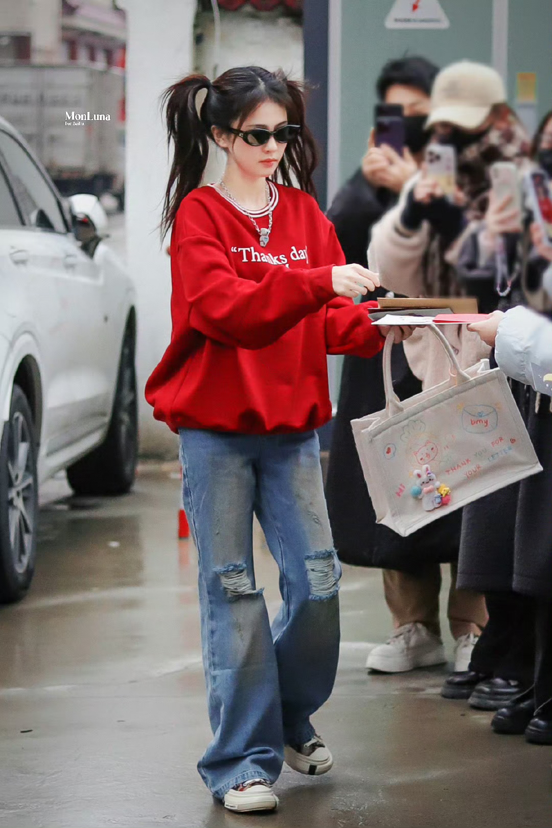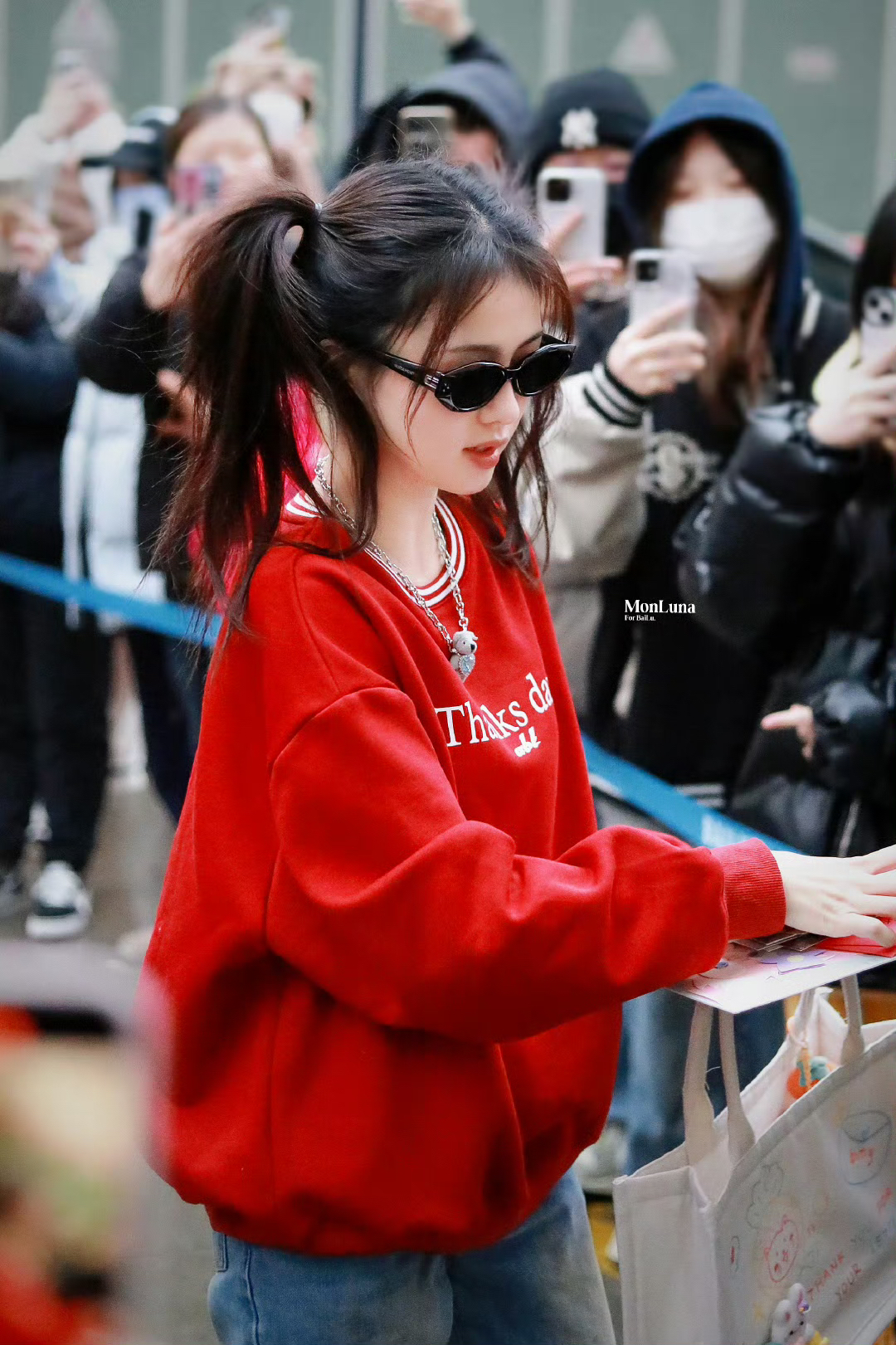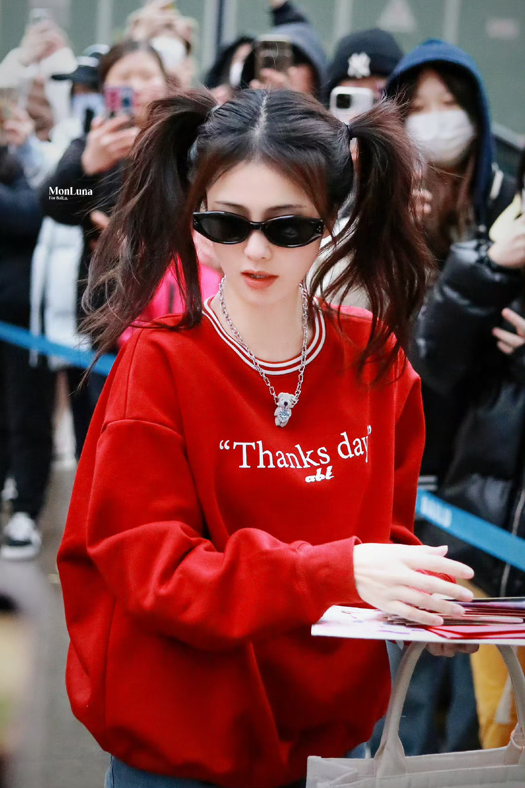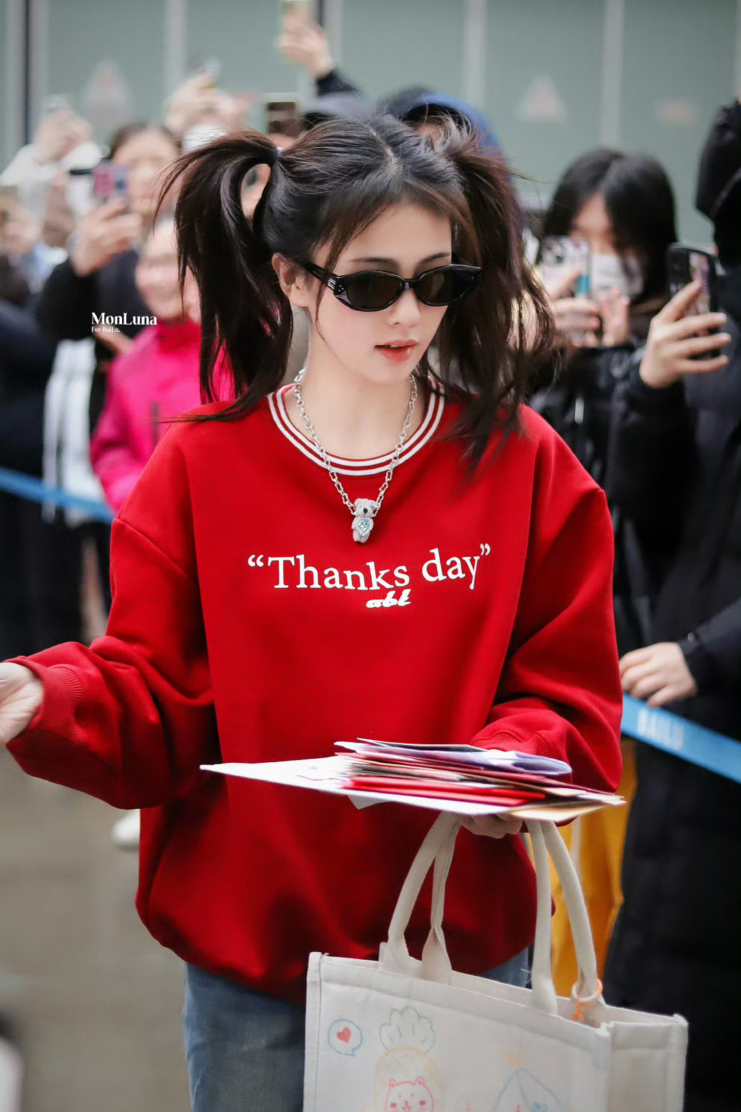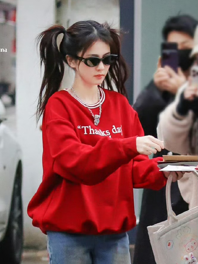 白鹿更新了2月26日上班穿搭,大红色休闲圆领卫衣下搭牛仔裤,青春又活力,搭配可爱的双马尾,复古高校女大啊!春日少女感穿搭典范! 图片来源:@MonLuna·白鹿 卫衣: ABT 裤子:AlexiaSandra 眼镜: GENTLE MONSTER 项链: YVMIN尤目 鞋履: SMILEREPUBLIC