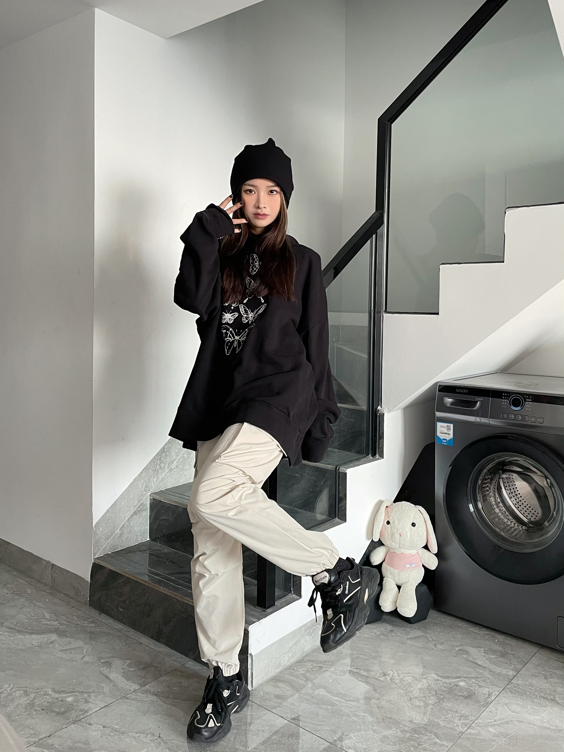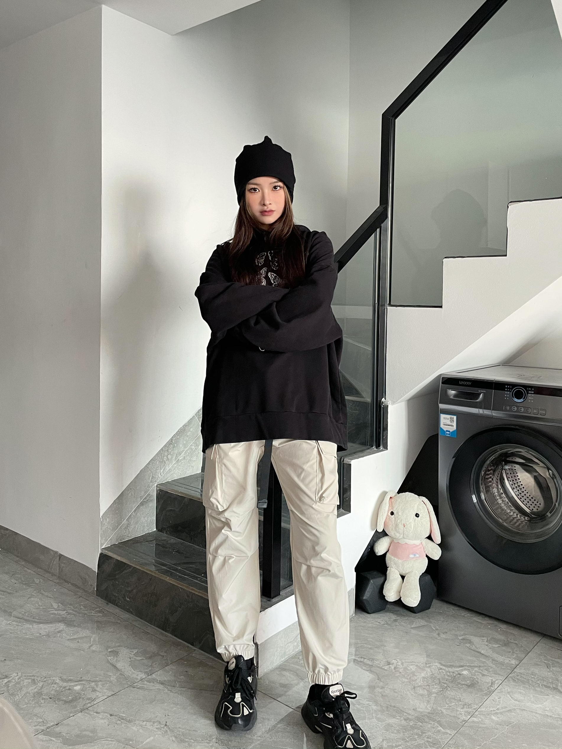 Hello这里是身高162cm体重48kg的七秒🥰 👖HAVR 👟Reebok 🎩NOTTOMAD 穿搭灵感∶ 一套不费力中性风🖖🏻,斗篷型的卫衣版型很特别,我选择一条合身的米色直筒工装裤🥰和解构老爹鞋,设计感在线!再戴上我滴小冷帽秒变潮酷girl! 帽子简直是头大星人的救星!!很显脸小!😊上头有那种堆叠感,设计感在线~ 裤子是很正的直筒版型,可以很好地修饰腿型🥰上身微宽松自然形成的褶...