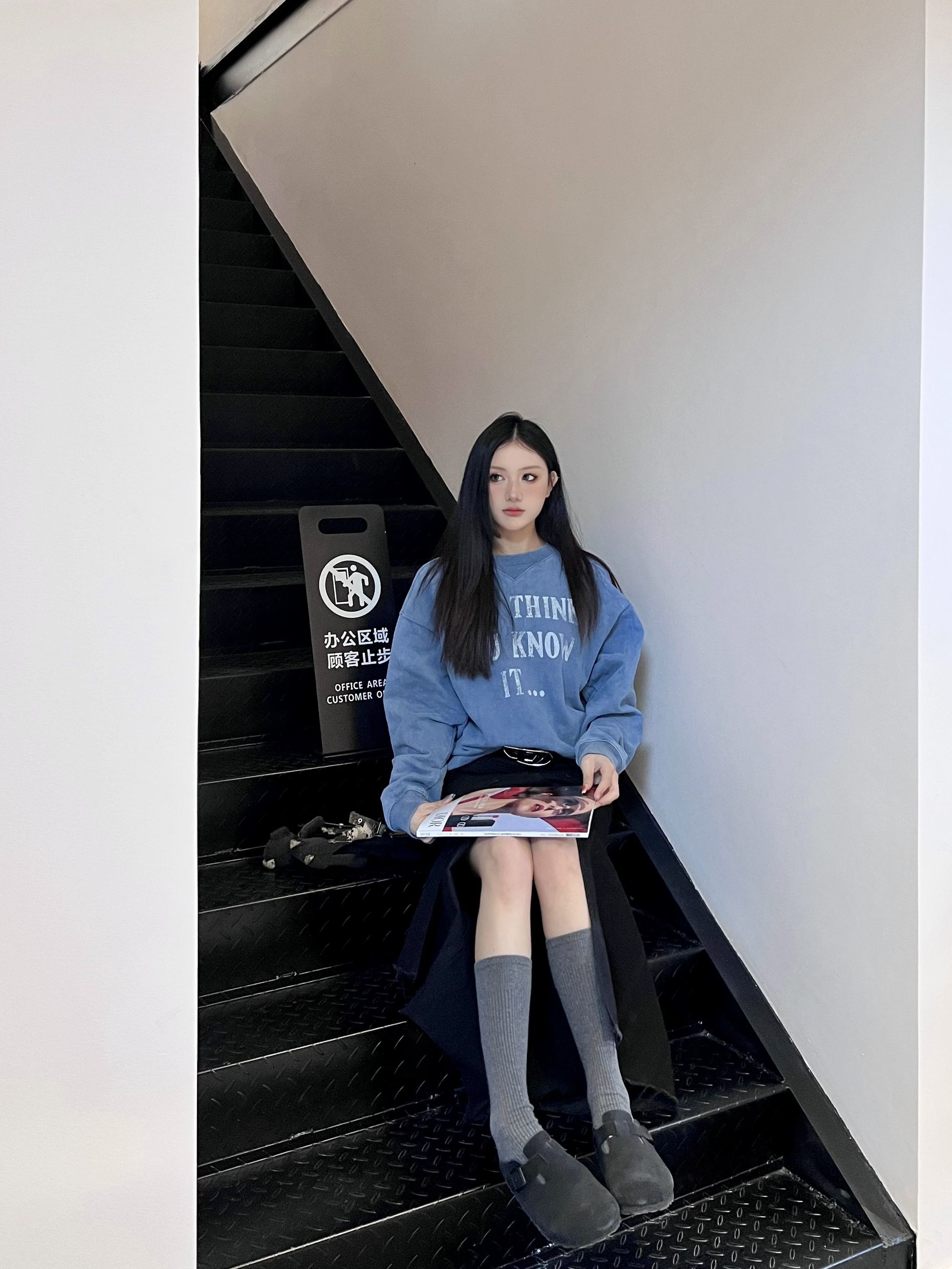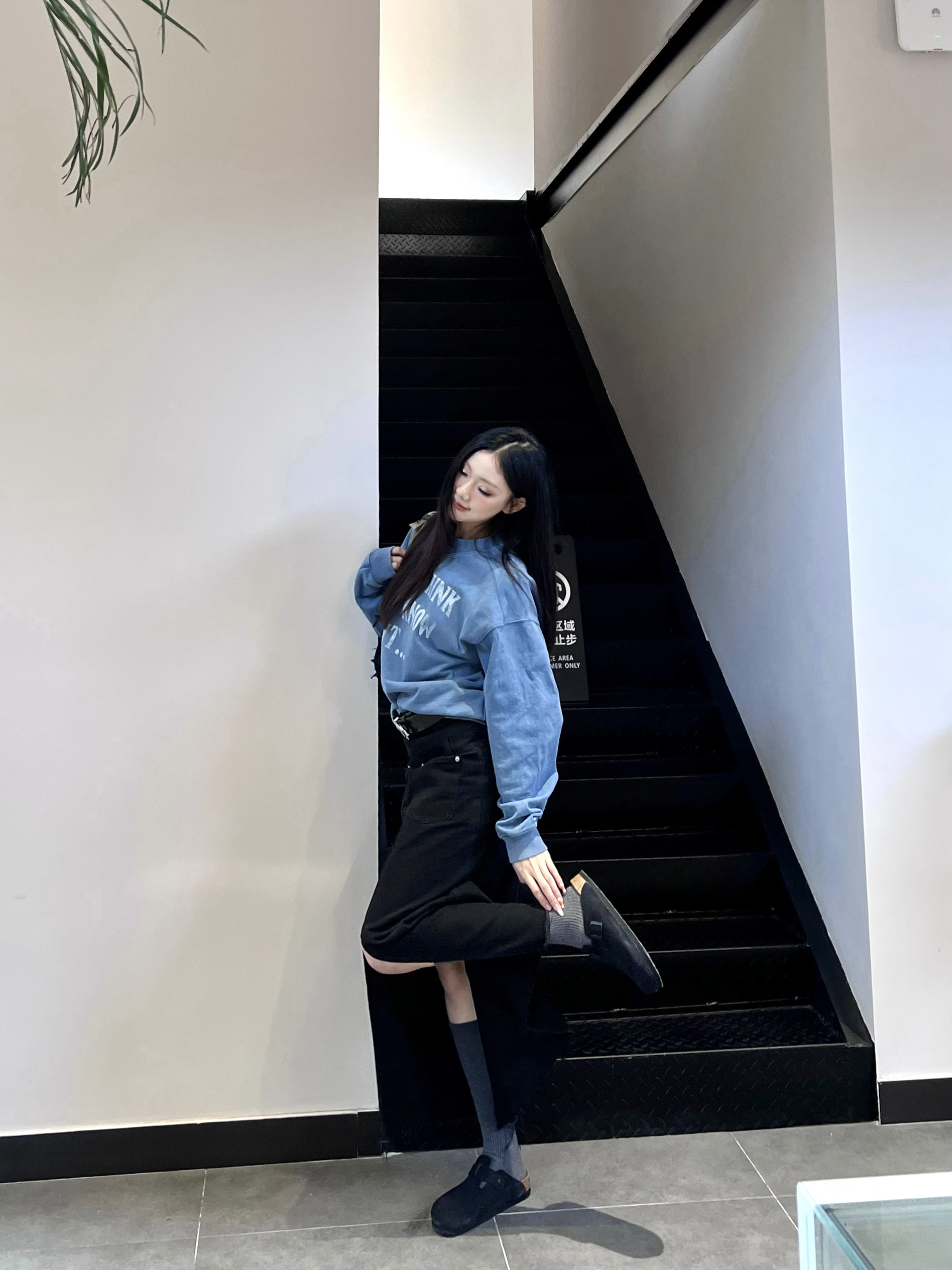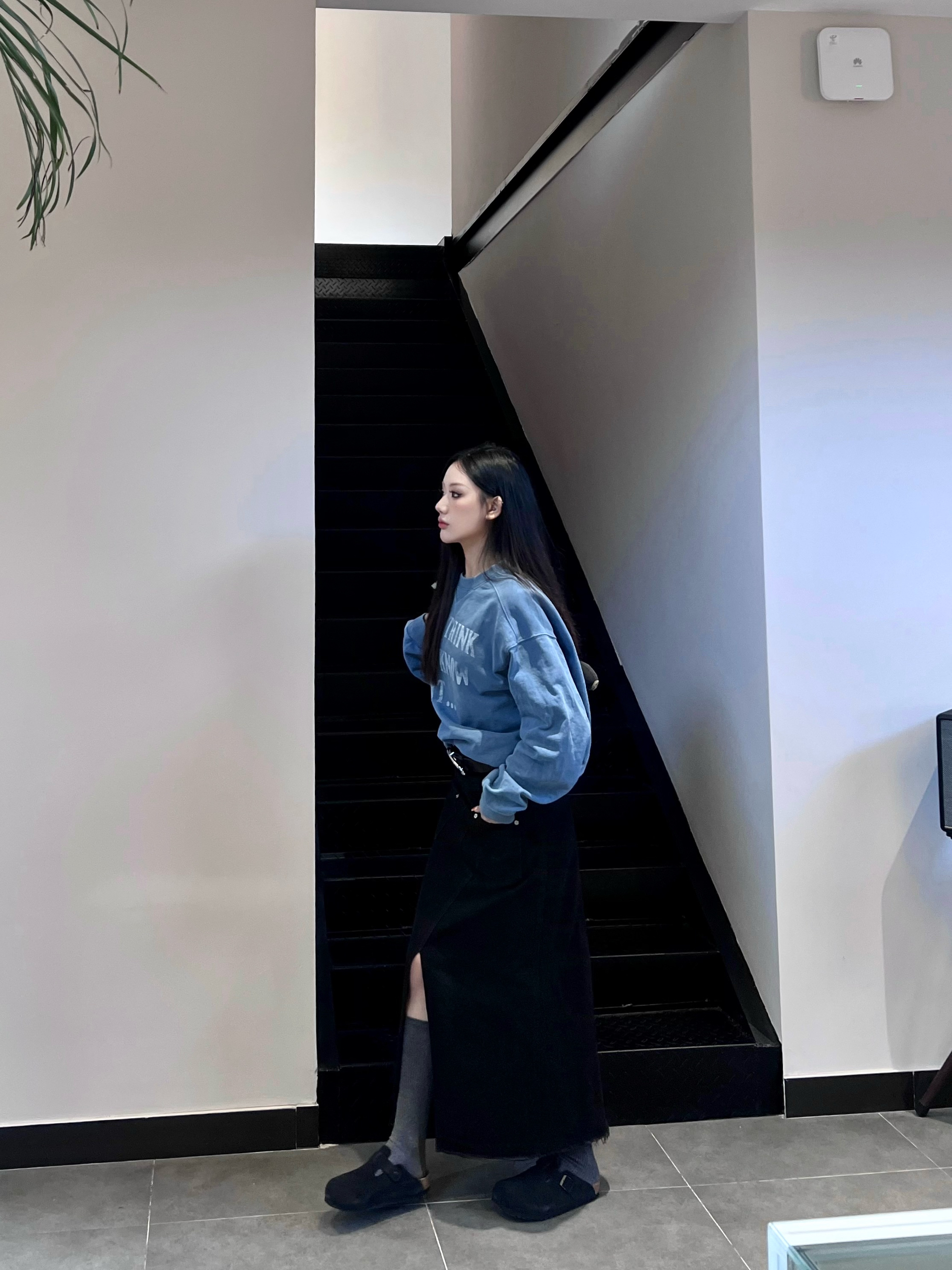 最近真的蛮冷的咯 出门在外必须必裹的严严实实 室内就轻松自在些🙌 _ 蓝色卫衣配上设计感长裙 这休闲自在feel信手拈来 上脚一双勃肯鞋 今儿的灵魂 半拖款式出门直接踩上就走 黑色系也是意料之中的好搭 配双不同颜色长袜🧦 搭配在线同时保暖也别落下 随性慵懒调调 轻松拿捏到位咯😘