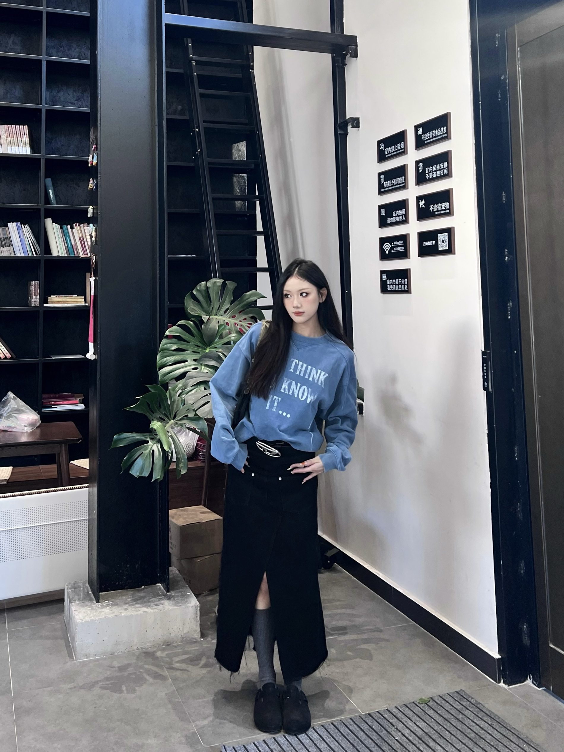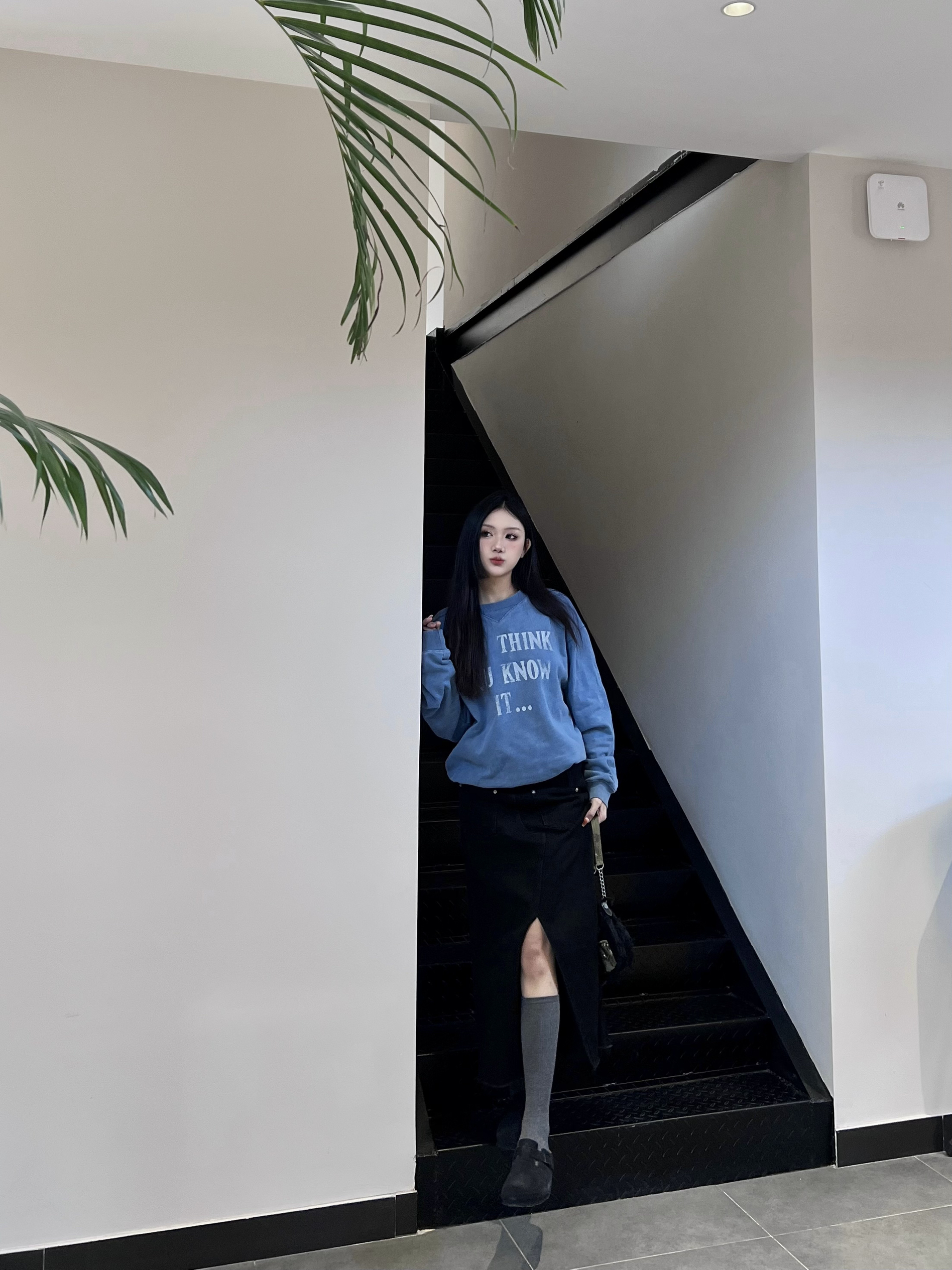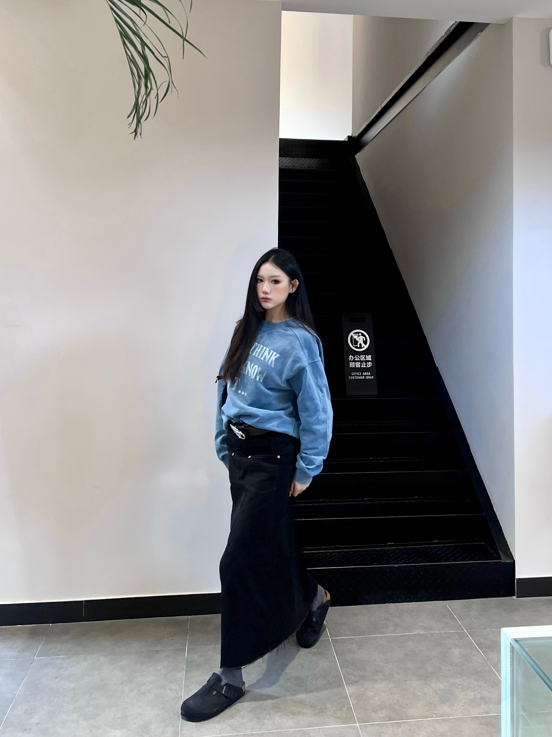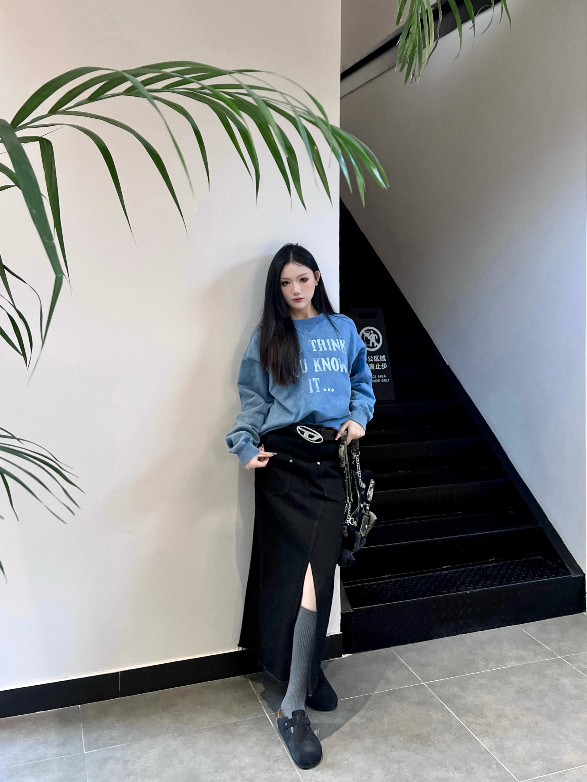 最近真的蛮冷的咯 出门在外必须必裹的严严实实 室内就轻松自在些🙌 _ 蓝色卫衣配上设计感长裙 这休闲自在feel信手拈来 上脚一双勃肯鞋 今儿的灵魂 半拖款式出门直接踩上就走 黑色系也是意料之中的好搭 配双不同颜色长袜🧦 搭配在线同时保暖也别落下 随性慵懒调调 轻松拿捏到位咯😘