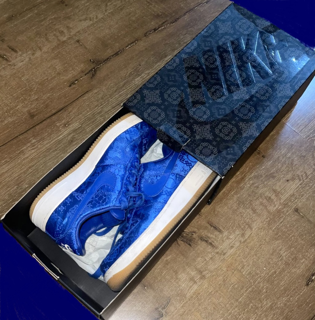 这双CLOT x Nike AF1 Low 蓝丝绸也太好看了🥰 克莱因蓝配色真的高级感满满 丝绸材质真的巨有质感 怎么搭都好看 配上一条美式简约牛仔裤 上身真的超显瘦长✌️