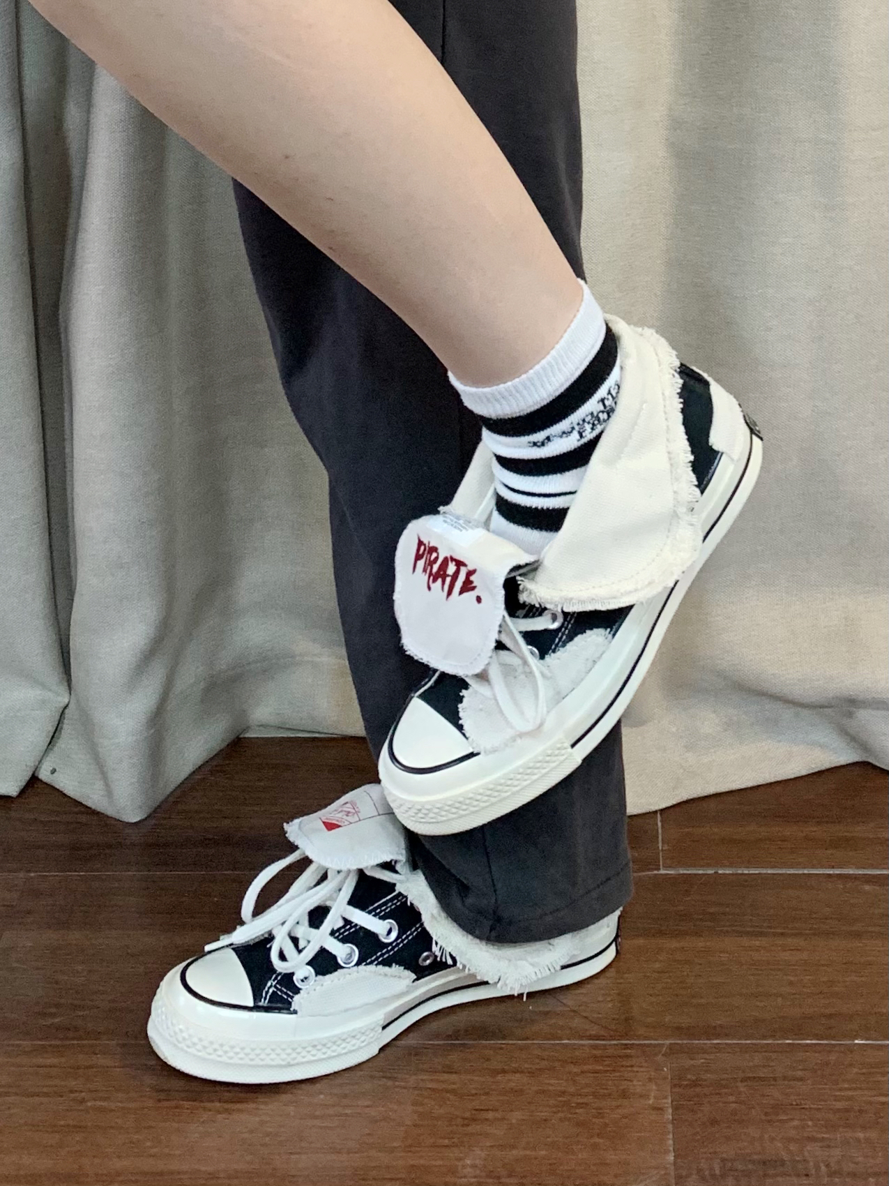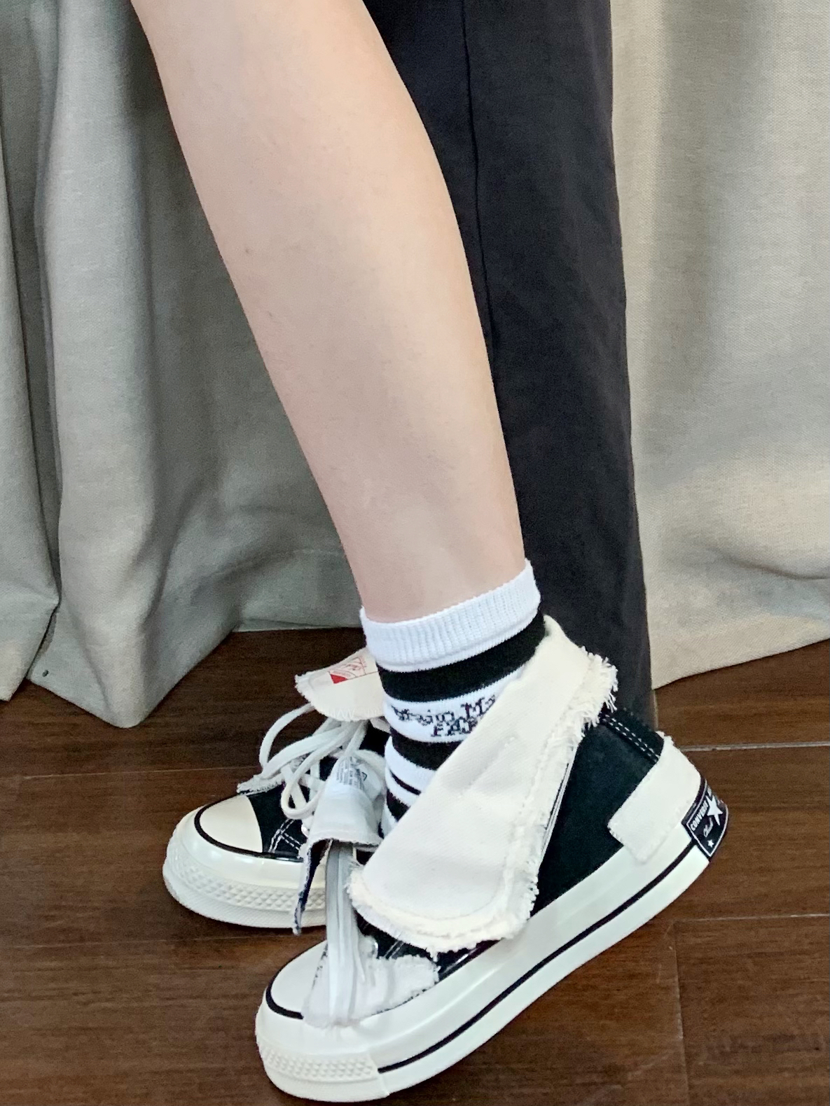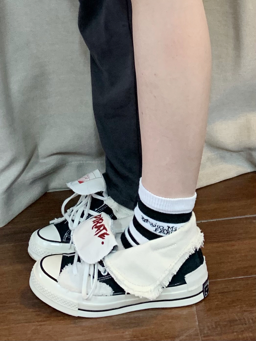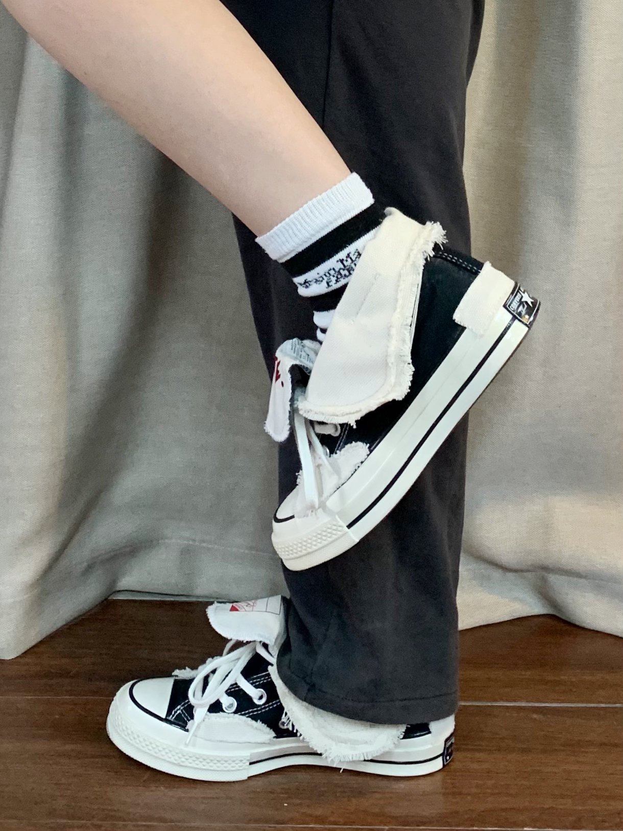 救命!我太会挖掘宝藏了~ 这双鞋上脚怎么能这么这么帅啊🖤 而且整体的配色是黑白解构拼接诶!上脚别太帅啦! 鞋身1970的鞋垫本身就很软! 鞋舌红色涂鸦也很特别!