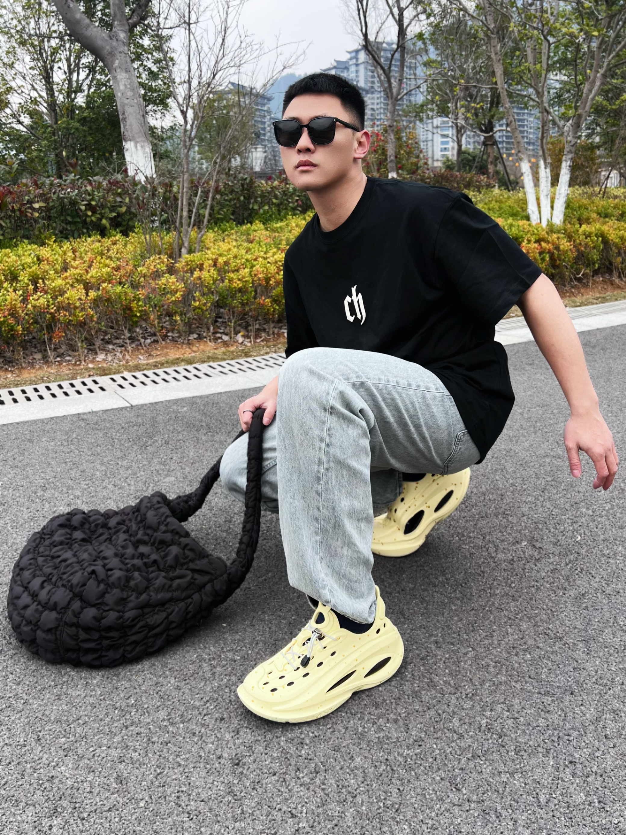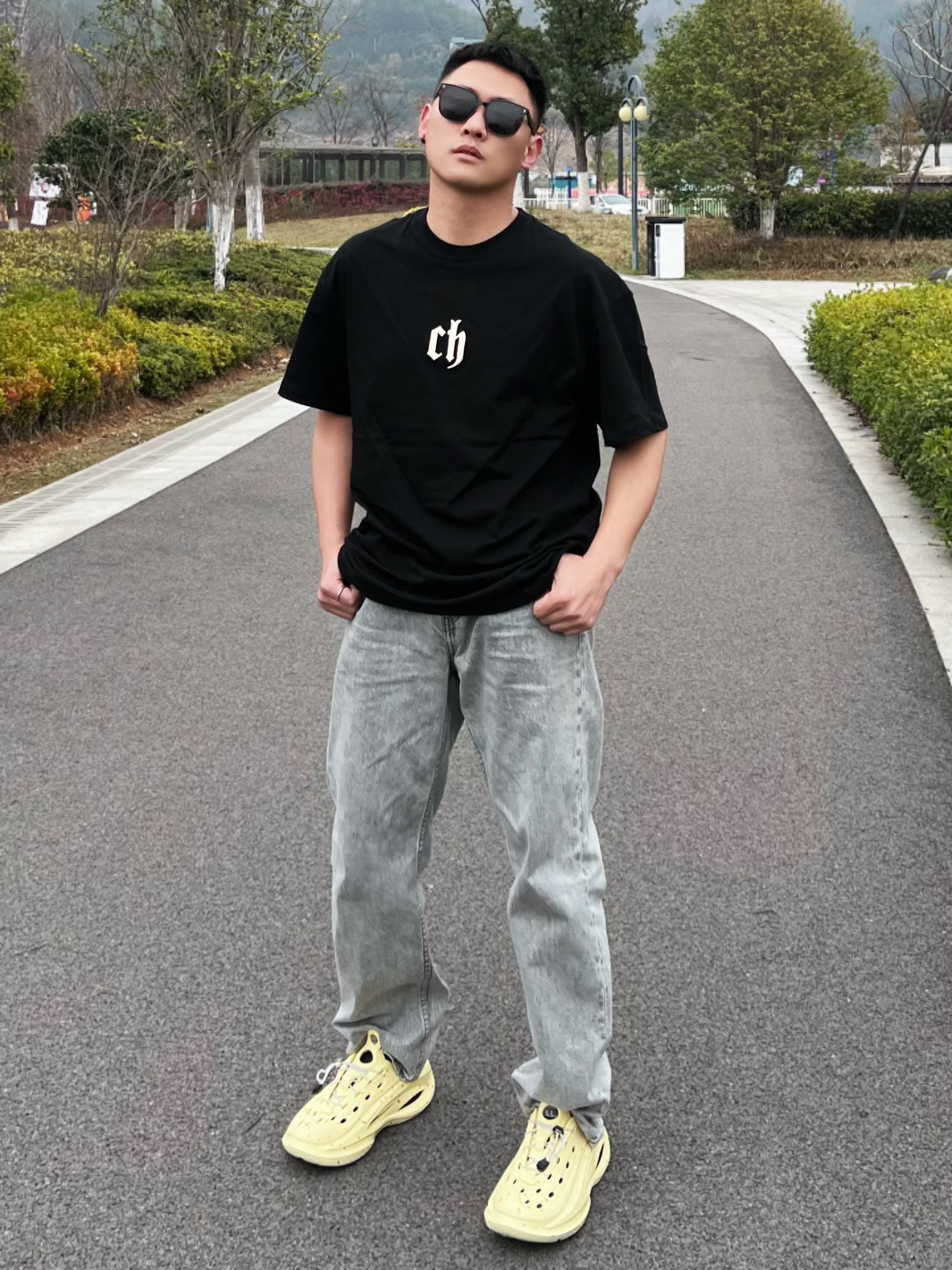 兄弟们谁懂啊~ 纯色T恤也太好搭配咯! 已经开始期待阳光☀️的夏天了~ 听说广东的靓仔靓女们已经开始穿洞洞鞋了! 不就是20几度嘛!我这也有~ 增高又适合运动的款! 想怎么穿就怎么穿😎咯~ 👔: CHINISM 👟: LOXKI 洞洞鞋
