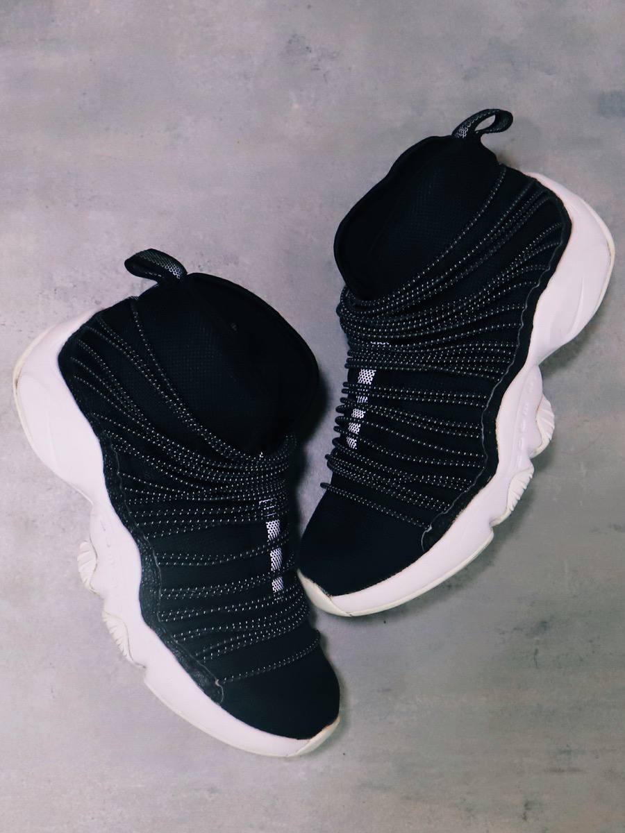一眼就被这个吸引了👀鞋身整体是线条搭配一起,一脚蹬的方式,我还是挺喜欢这样的袜套形式,穿脱比较方便‼️ 适合平时上课通勤的人群,早上不用系鞋带这么麻烦🌟 鞋身白底搭配黑色鞋身整体很有简约的风格感😎 👟脚感测评:上脚一开始会比较硬,后面穿了几天踩开后会比较软💫而且鞋身脚肥的需要拍大一码,两边比较窄~ 🌟实战测评:实战的话我感觉包裹性挺不错!但是因为有弹性~所以容易偏脚,更适合日常穿着! 开学新鞋你们...