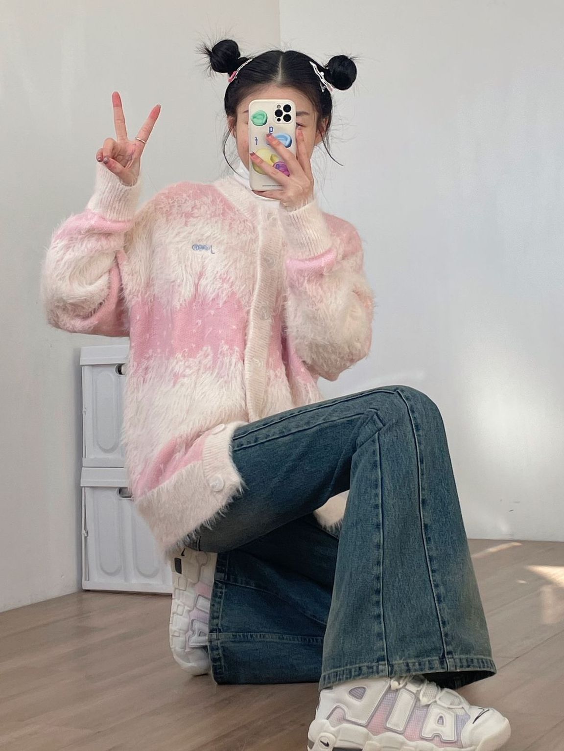 可可爱爱的少女系穿搭 粉嫩的毛衣搭配牛仔裤 青春感扑面而来~ 马卡龙色系的皮蓬也是少女心满满 真的很粉嫩,好像水蜜桃的颜色,很显白. 朋友都说很好看,手感也不错,软乎乎的摸起来很舒服,推荐推荐 图源网络侵删