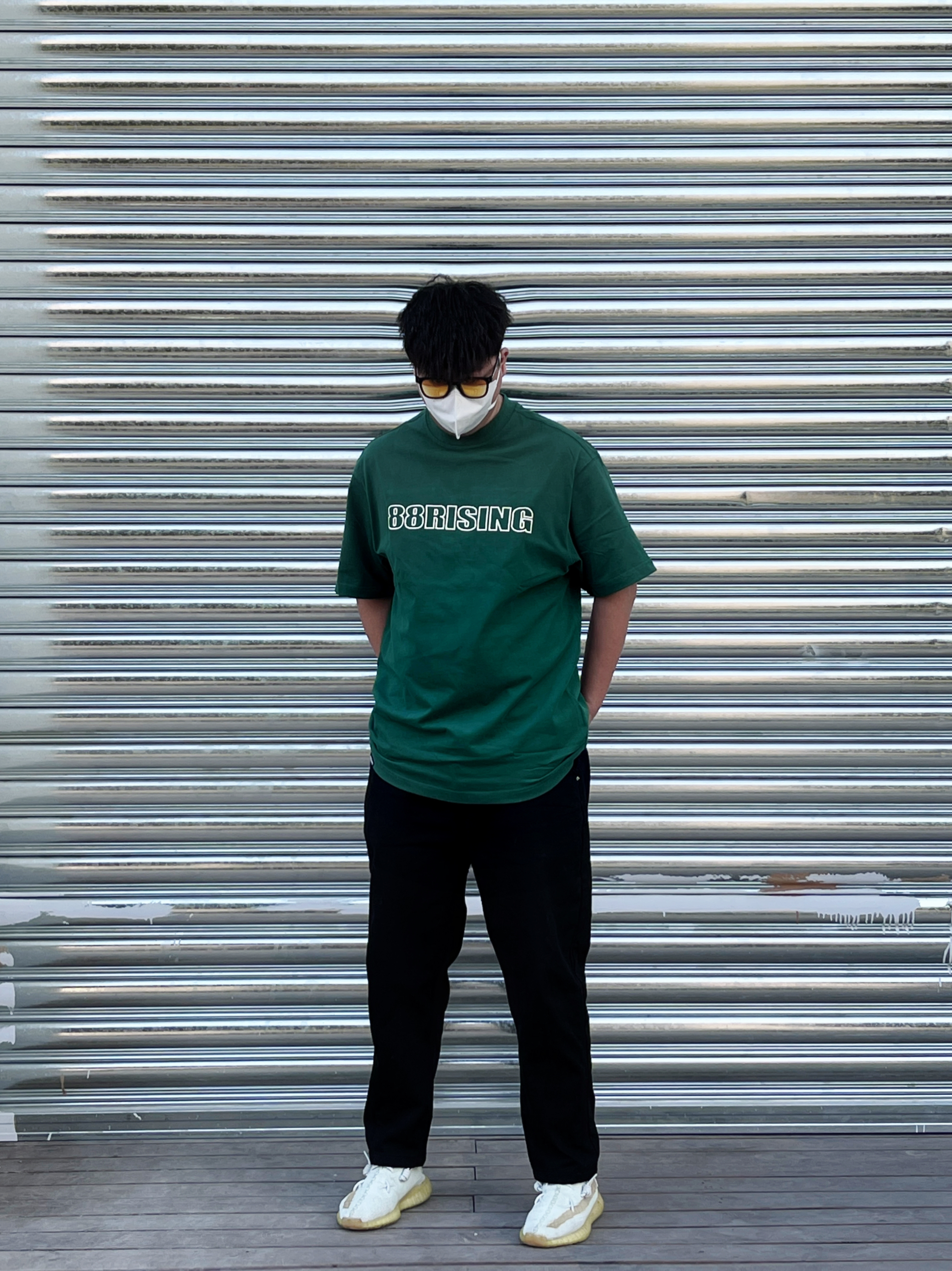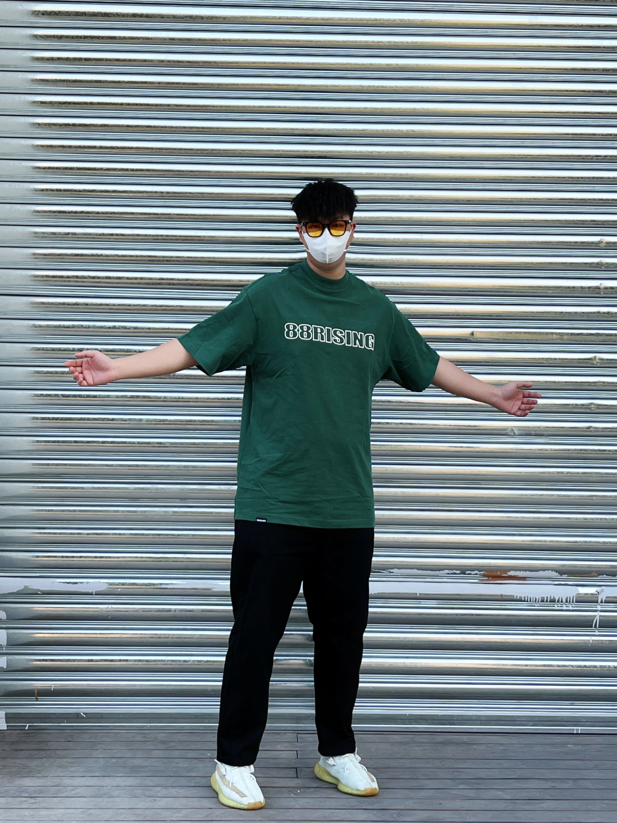 今日📸LOOK : 绿色短袖➕黑色休闲裤 上搭一件绿色T恤 胸前的logo增添了几分活力 带有沉稳气息的绿色 耐看有质感 这样一件显瘦又显白的墨绿色T恤夏天穿很合适 身高丨体重丨尺码 : 178丨90kg丨XXL 👔 : 88rising