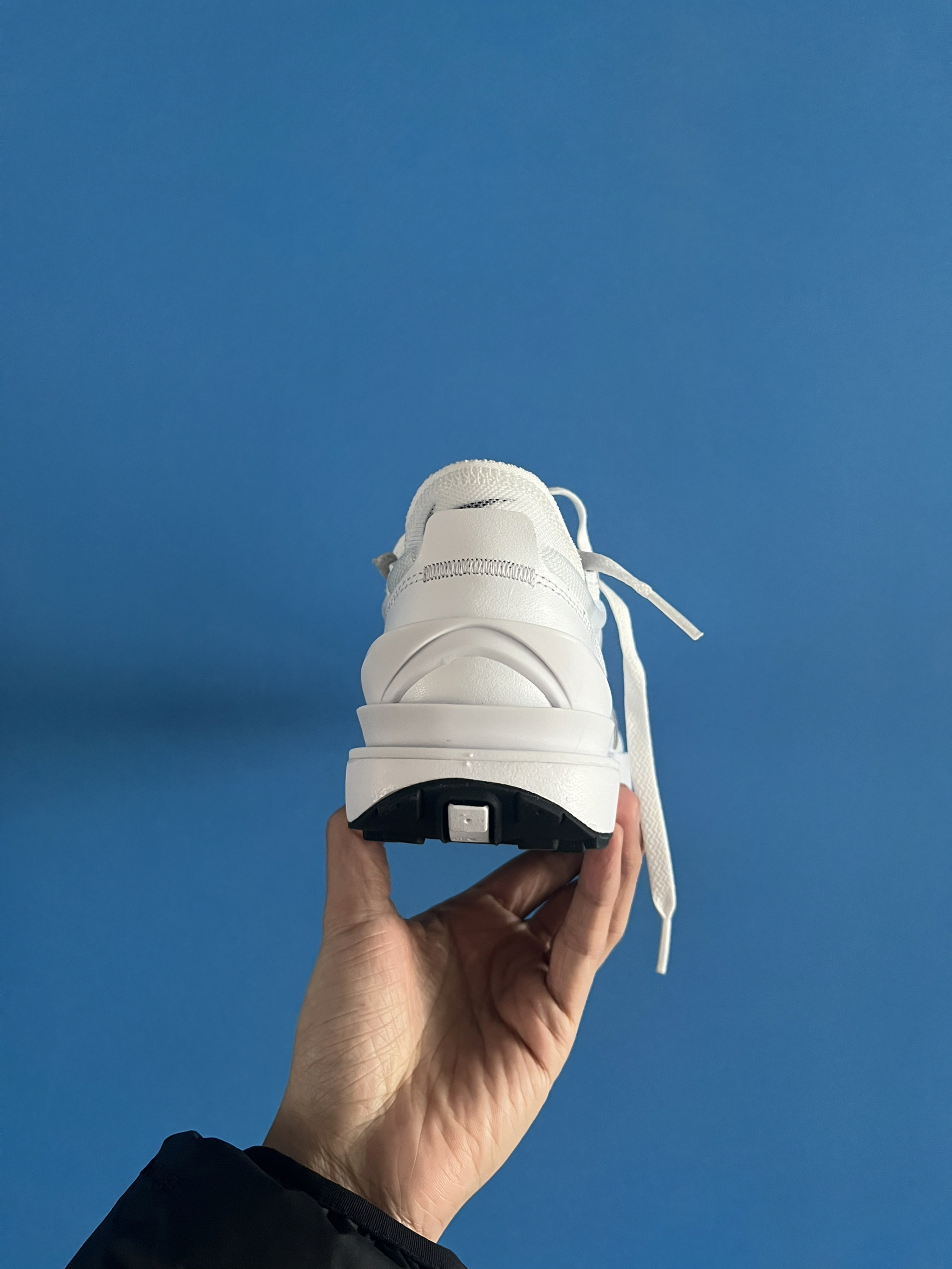 材质:鞋头以及钩子部分都是气质,侧鞋面采用编织网,鞋子后跟周围采用布艺。 配色:整体纯白配色,格外亮眼清新 设计:鞋子整体造型比较美观,网状设计透气性很强,夏天也游刃有余,底部防滑设计效果明显 缺点:比较明显的是纯白很容易脏,加上部分布艺和网状设计并不好打理 综合来看这双鞋子在300这个价位可以说很能打了,颜值很nice