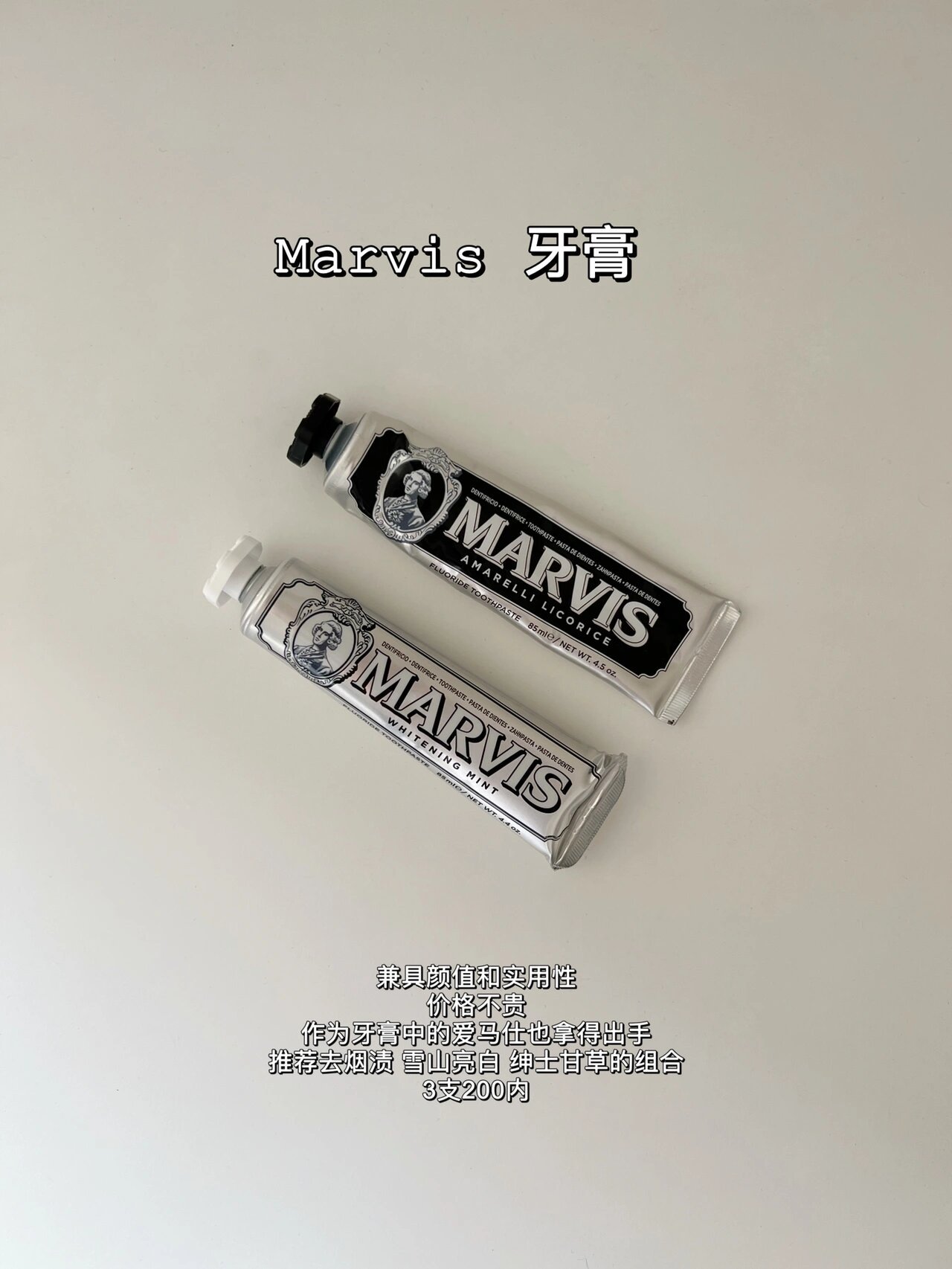 本篇笔记关联了Marvis/玛尔仕 经典系列薄荷牙膏 清新口气护龈亮白去烟渍去黄 冷感亮白、HAWKINS/霍金斯 小银罐水基发油 100ml 光泽头发自然蓬松清香 水基发油、tamburins 手部身体香氛二合一沐浴露 000等商品,为用户提供真实的使用体验和购买参考。