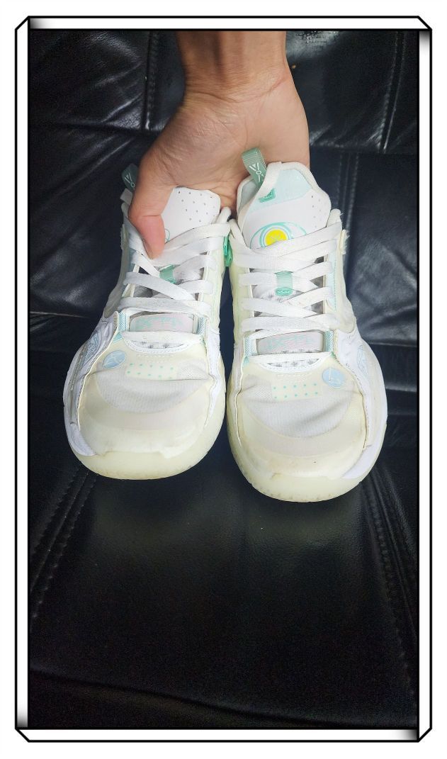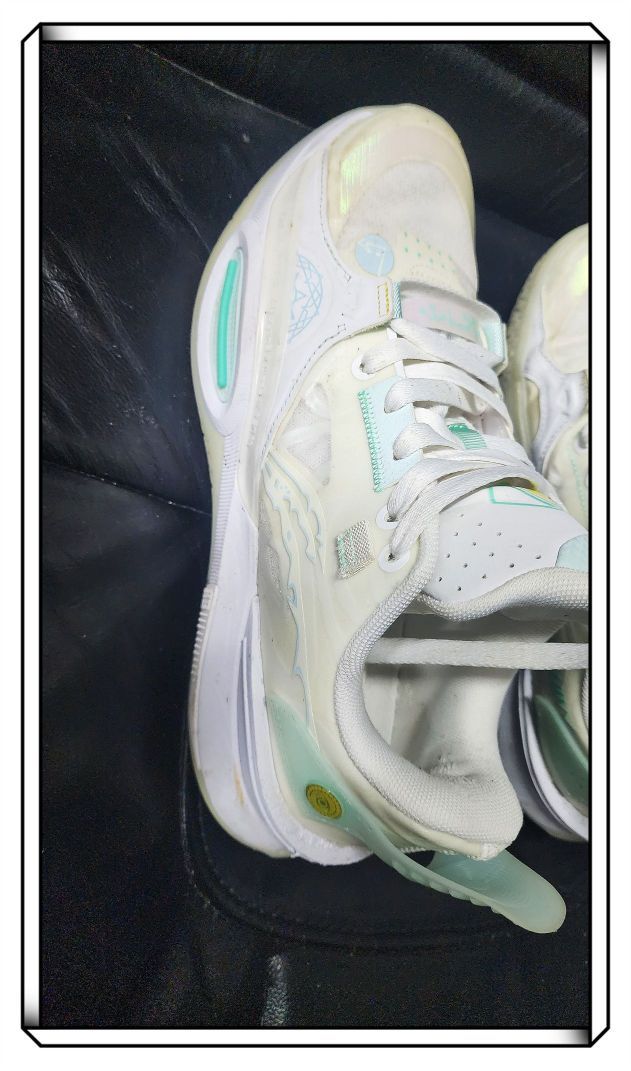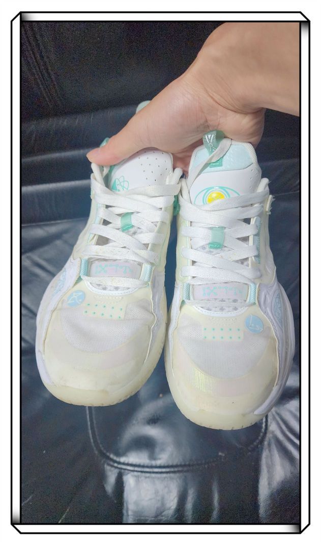 总的说在前面,码数还是稍微大半码! 首先颜值非常高,鞋底和鞋面都有荧光效果,晚上看着很亮的! 其次,这个鞋的配置是不变的,依旧全掌䨻科技!后跟掉跟这次体验到了!价格也不便宜!但毕竟纯白嘛!#新鞋就按这个标准卷