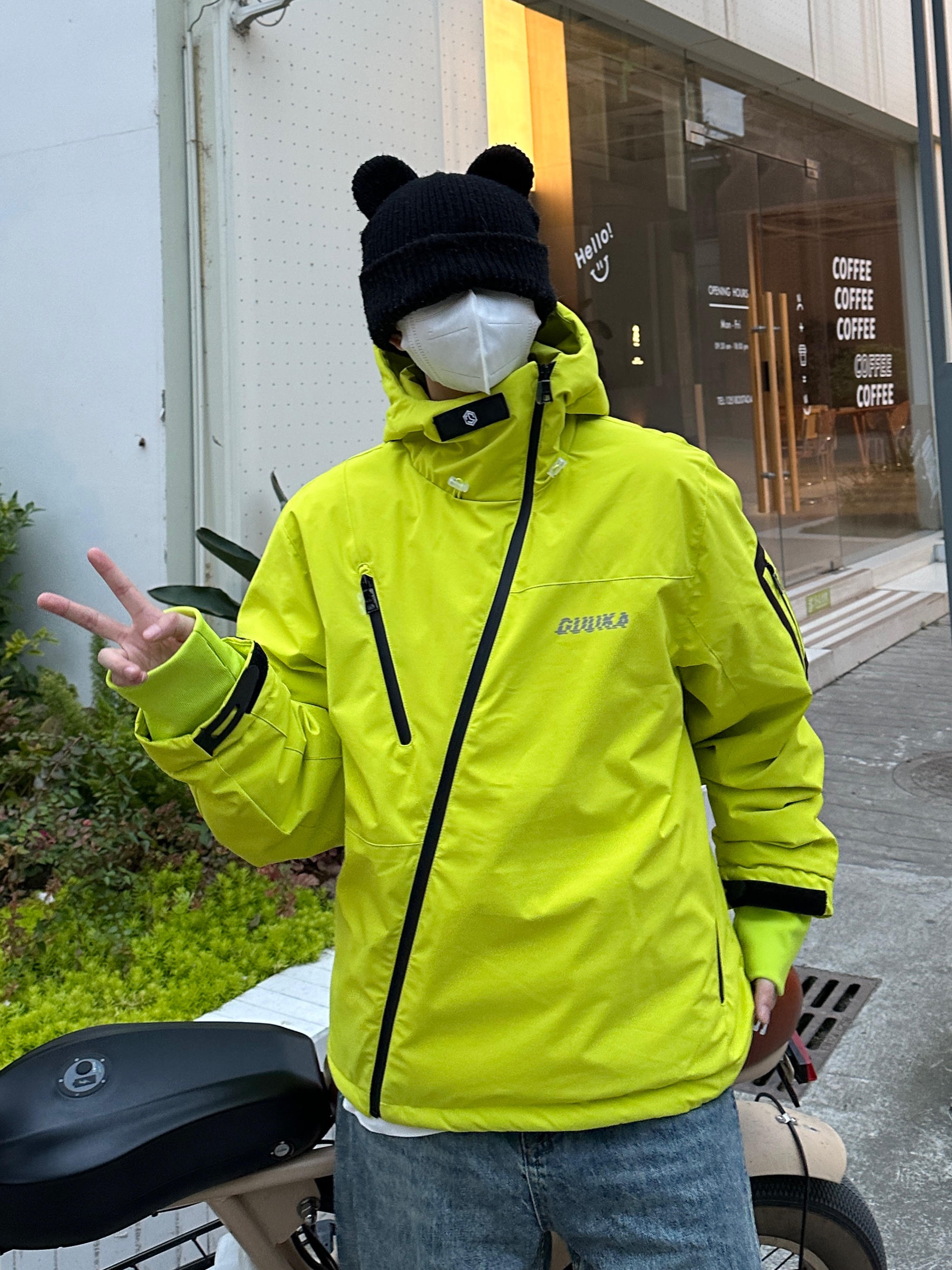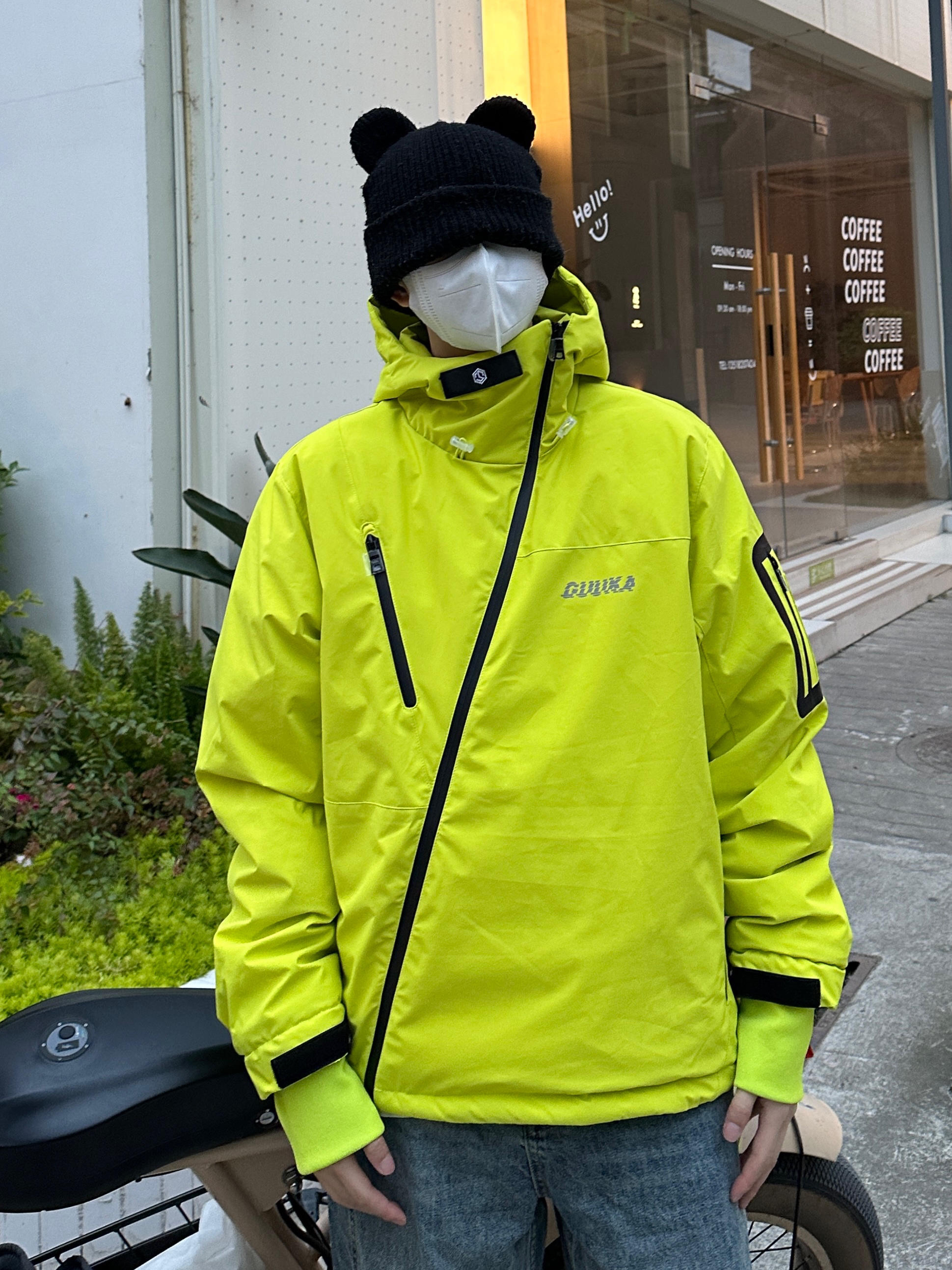 h哈喽宝子们 今天拐子测评冲锋衣 来自guuka的羽绒服冲锋衣 这件冲锋衣从设计上面打破了常规 采用了一个不规则斜防水拉链的设计 时尚颜值在线 除了有冲锋衣三合一的功能之外 手臂上还有多功能的贴袋 可以说机能风也拉满了 袖口和衣服下摆都带有收紧 防风效果max 后背还带有透气孔 真正实现透气不闷 帽子不可拆卸但是带帽檐 实用性杠杠的 羽绒内胆也不用担心冷 北方现在穿也很合适