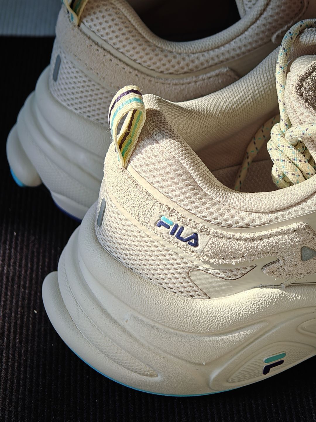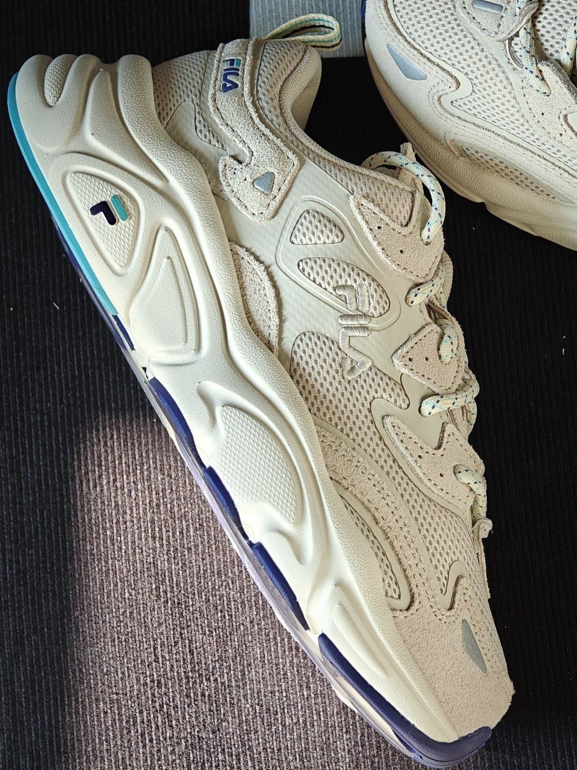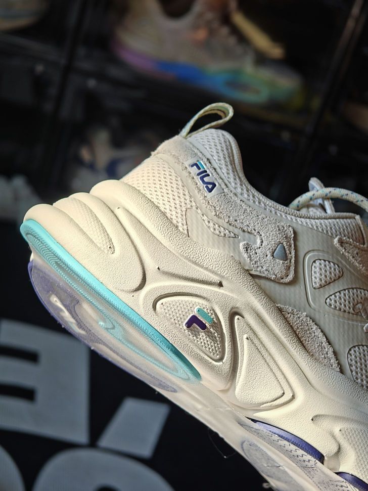 FILA木薯火星鞋 很少女的甜妹配色 奶白奶白的加上蓝色的点缀 女友自留款,整体也很轻 上脚还自带了3cm左右的增高 好看又好穿,趁降价了赶紧入手吧