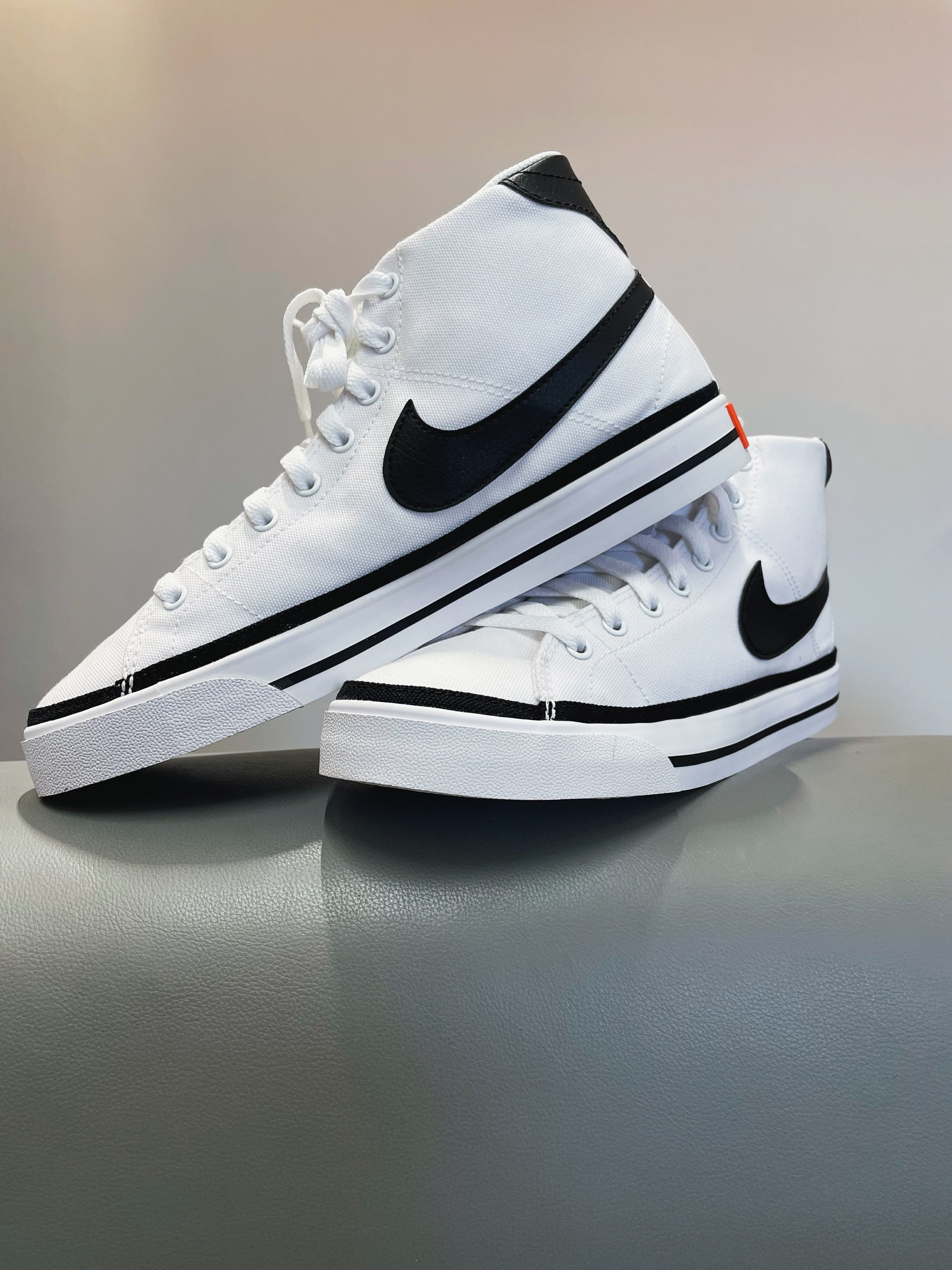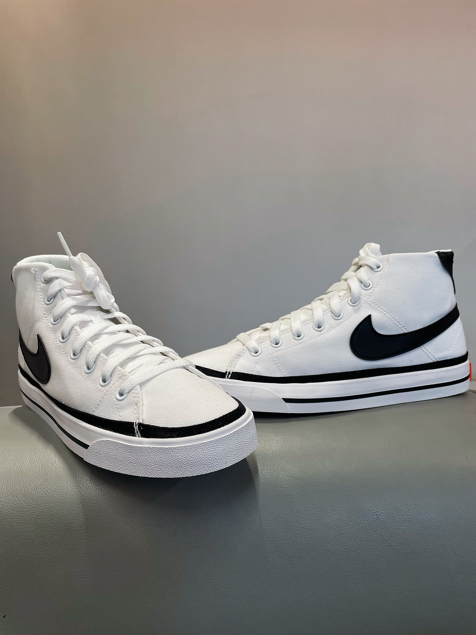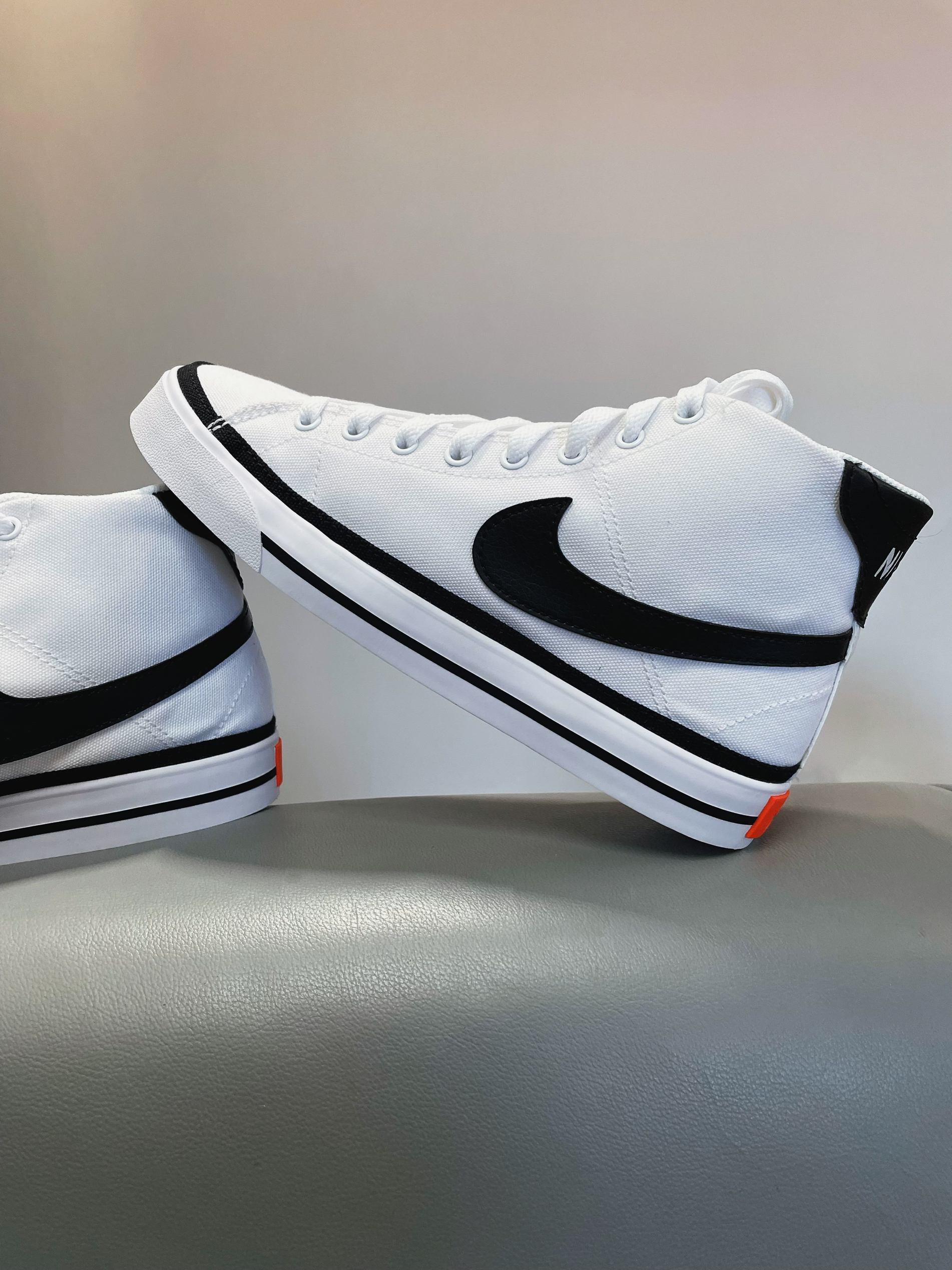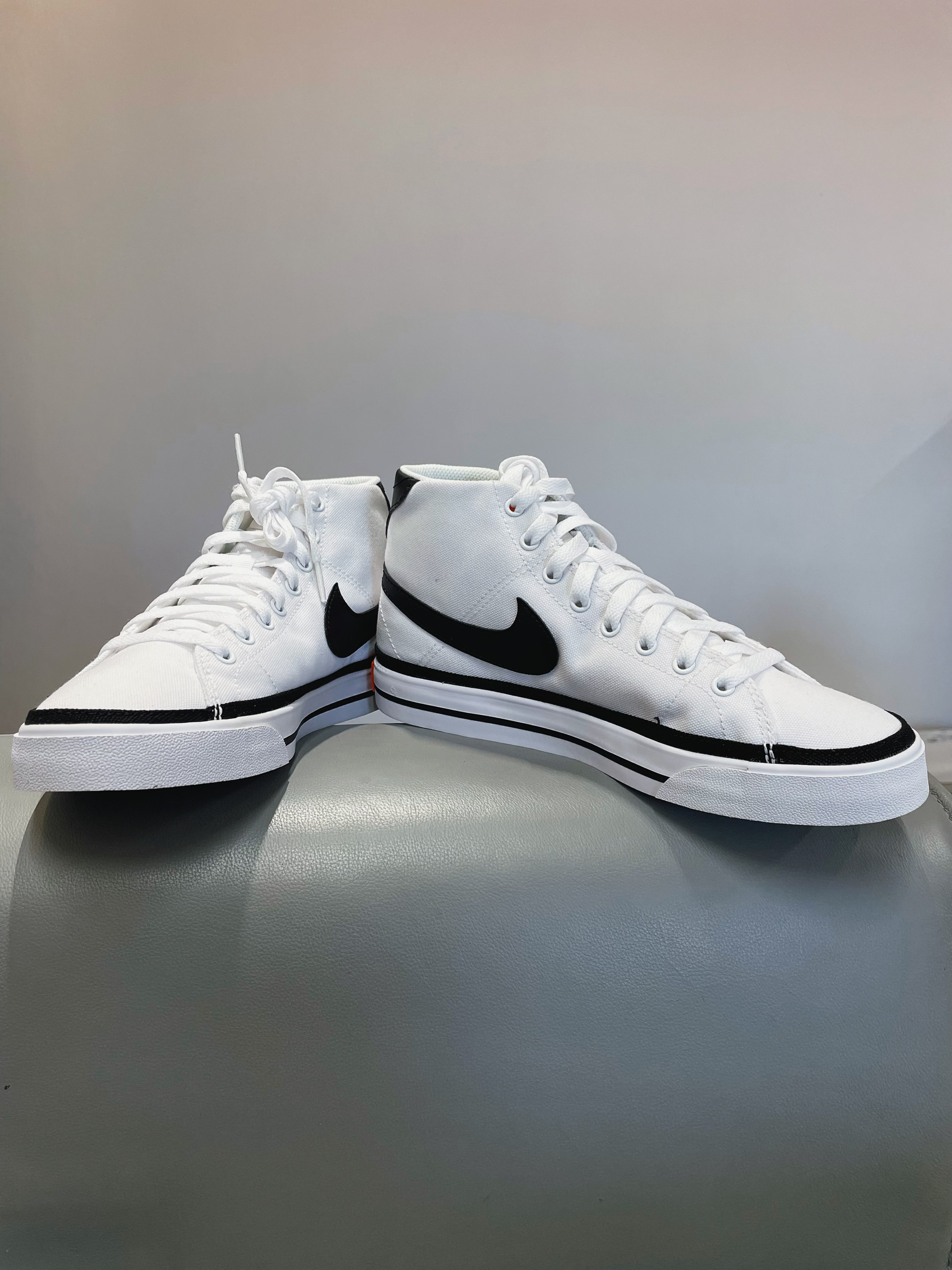 🌈这里是清风,今天和大家分享一款耐克高帮板鞋 帆布鞋,帆布鞋面,橡胶底 白色底色,黑色线条配色,颜值高 脚感也就那样,但是搭配起来真的好看 价格也比较亲民,很不错