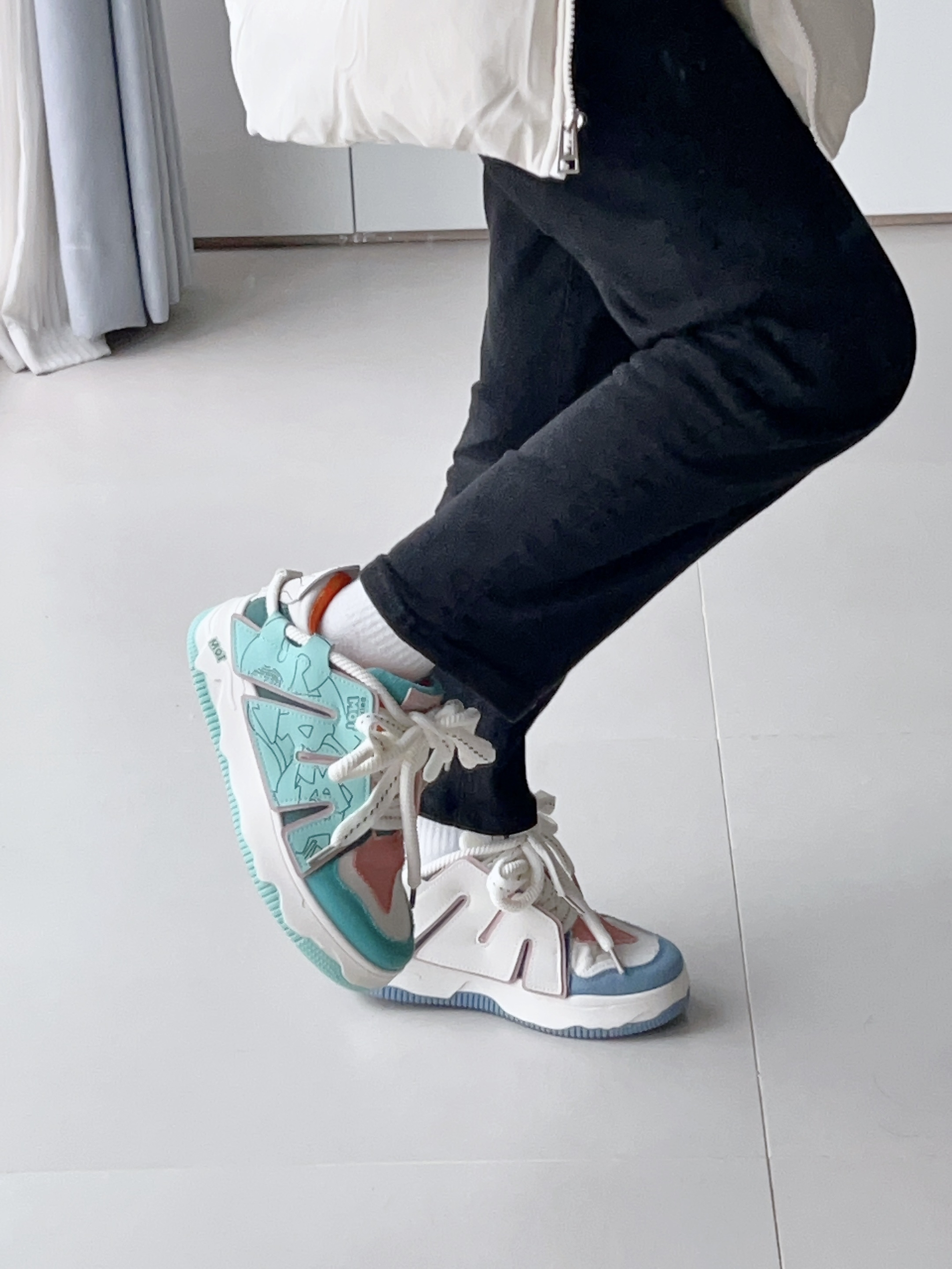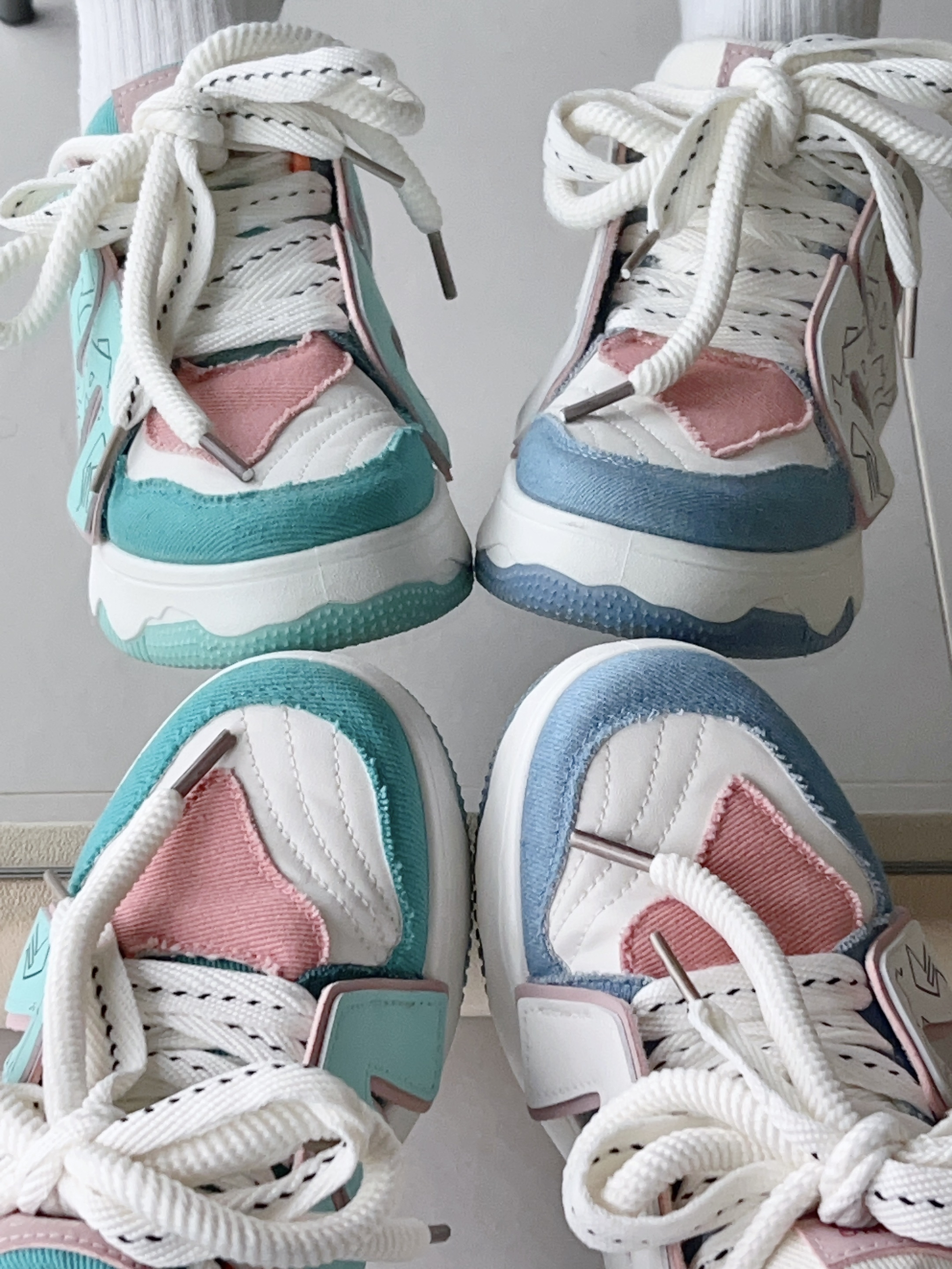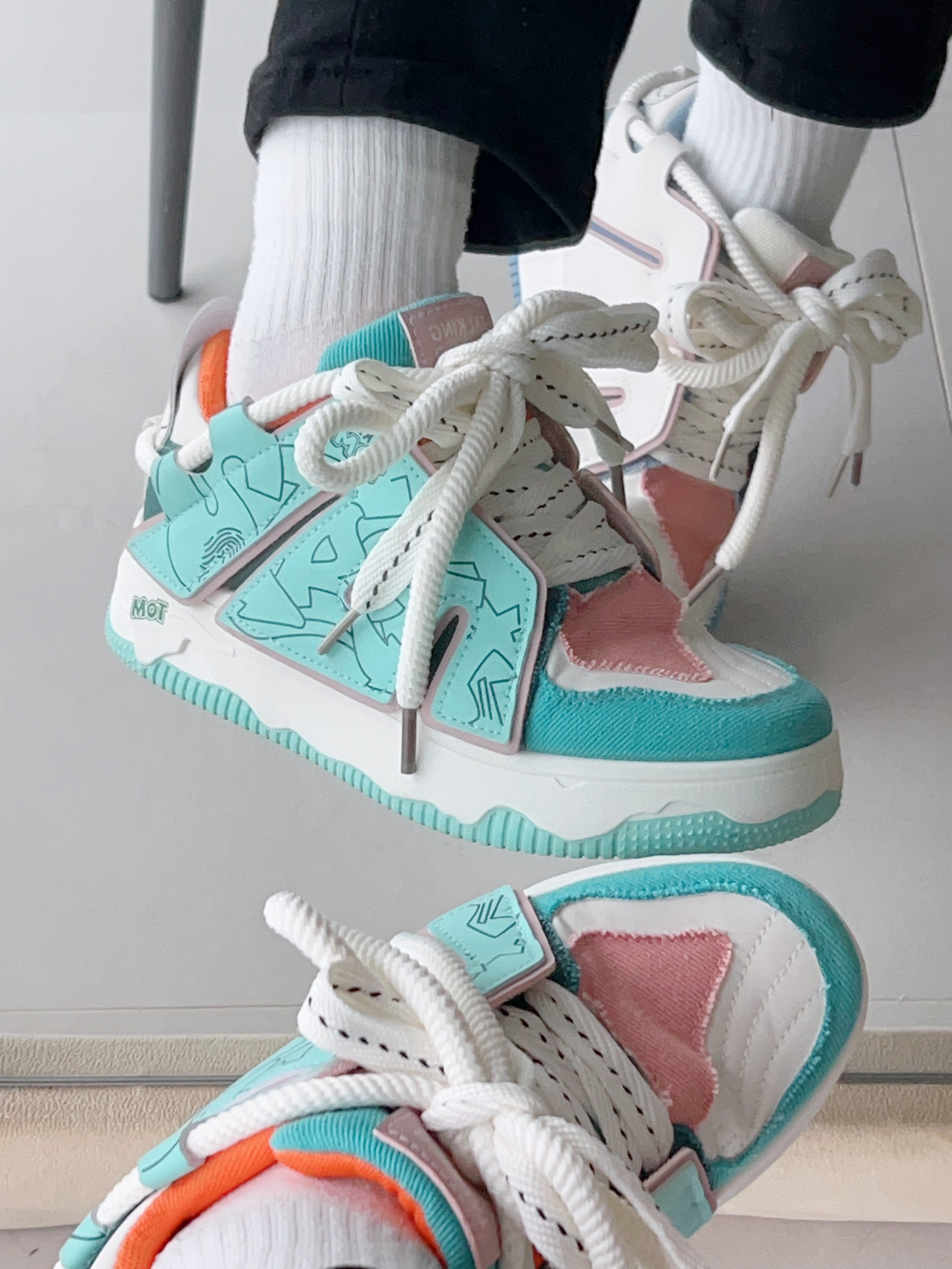 头一次尝试鸳鸯板鞋 我以前就觉得一只脚一个颜色挺奇怪的 但尝试之后…真香 出乎意料的好搭配 jiao感舒服,走路不会打脚 我喜欢鞋两边的字母设计 既有个性又好看