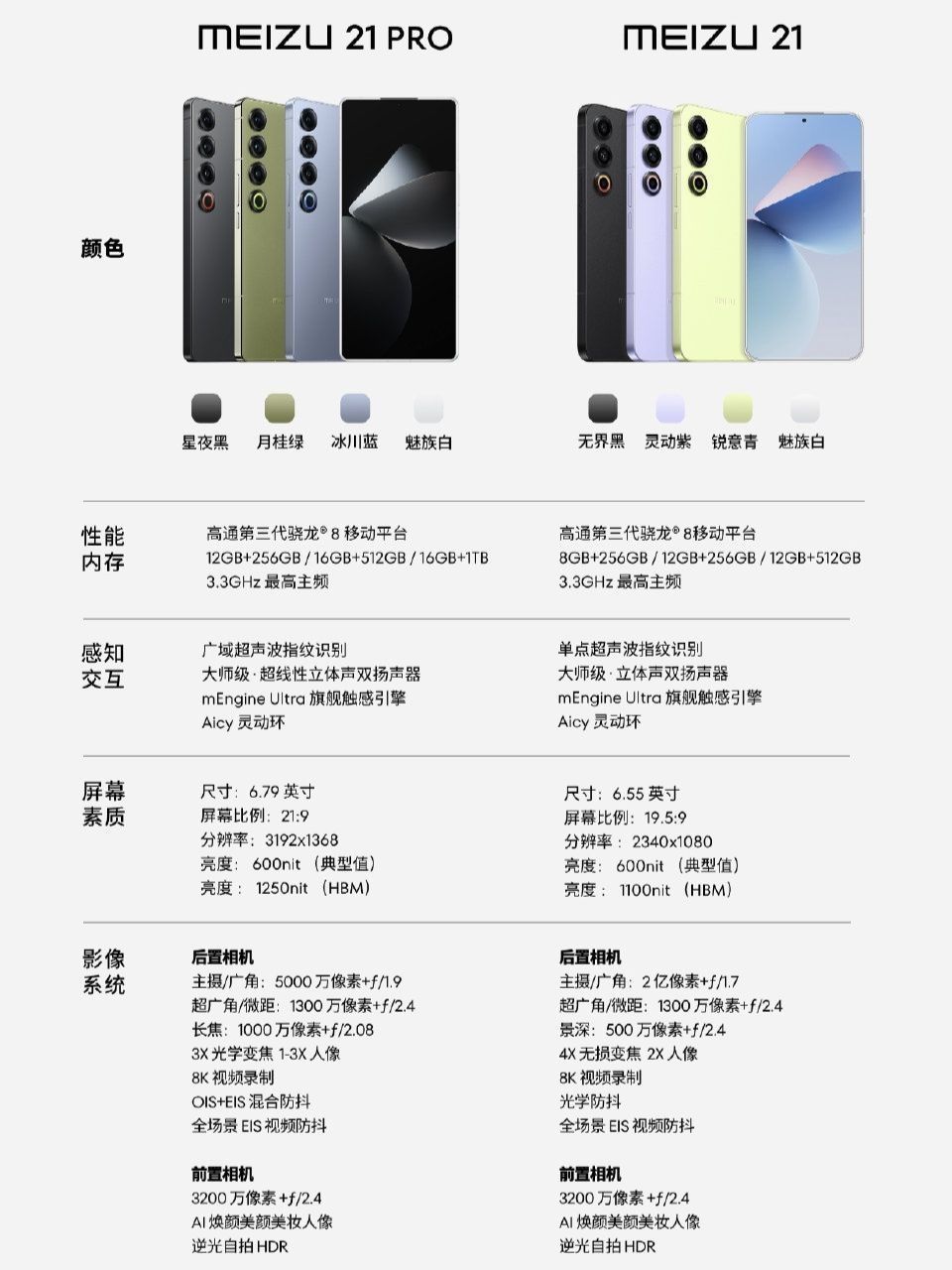 昨天魅族在珠海发布了传统手机的“收棺之作”——魅族21Pro,发布会由魅族前CMO李楠和flyme系统之父杨颜主讲。 来看产品: 性能方面,魅族21Pro依旧是旗舰机三件套:骁龙8Gen3、LPDDR5X、UFS4.0,安兔兔跑分超过两百万。前期测试该机调教较为激进,性能释放充足但功耗较大,机身温度也高于其它同等配置产品(预计后期会有系统更新调整)。 这次的魅族21Pro采用21:9的...