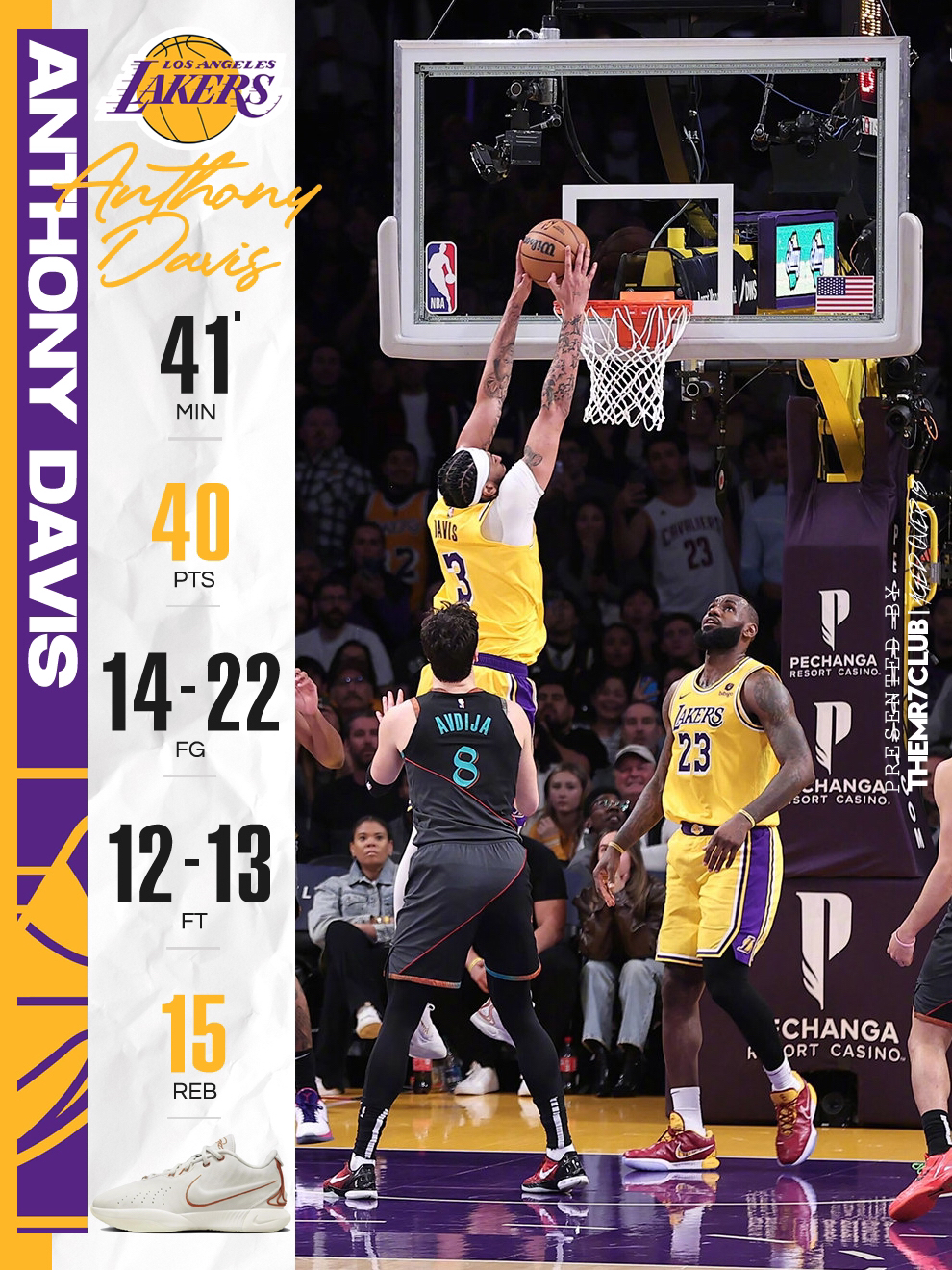湖人主场134比131通过加时有惊无险拿下奇才,后者遭遇13连败本赛季首次成为联盟倒数第一,2月份12场比赛全部告负🤣但是不得不说这可能是本赛季普尔发挥最好的一场比赛。 浓眉发挥依旧神勇,攻防兼备,出场41分钟,投篮22中14,罚球13中12,拿到全队最高的40分15篮板3封盖外加4助攻1抢断。这也是浓眉第9次打出至少40分15篮板3封盖的数据。 老詹出场39分钟,投篮24中12,三分5中2,拿到...